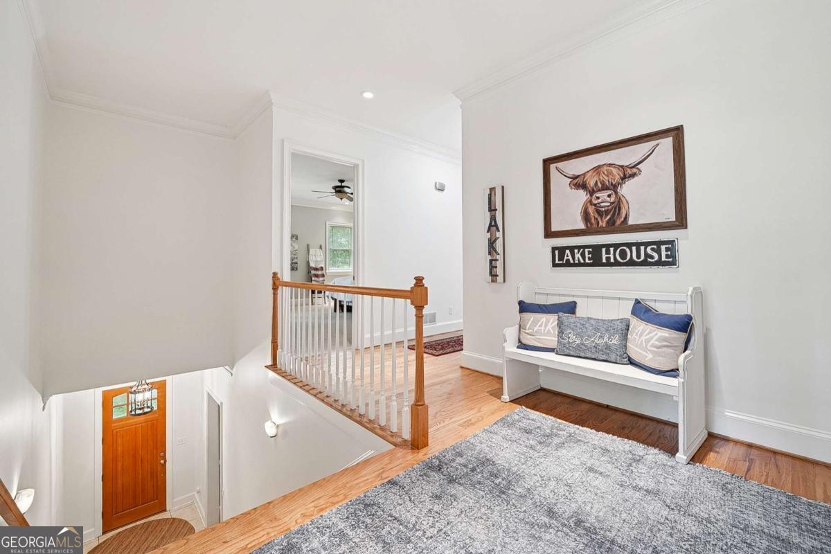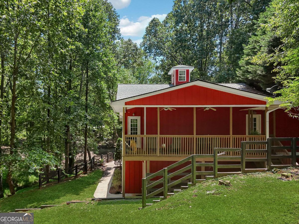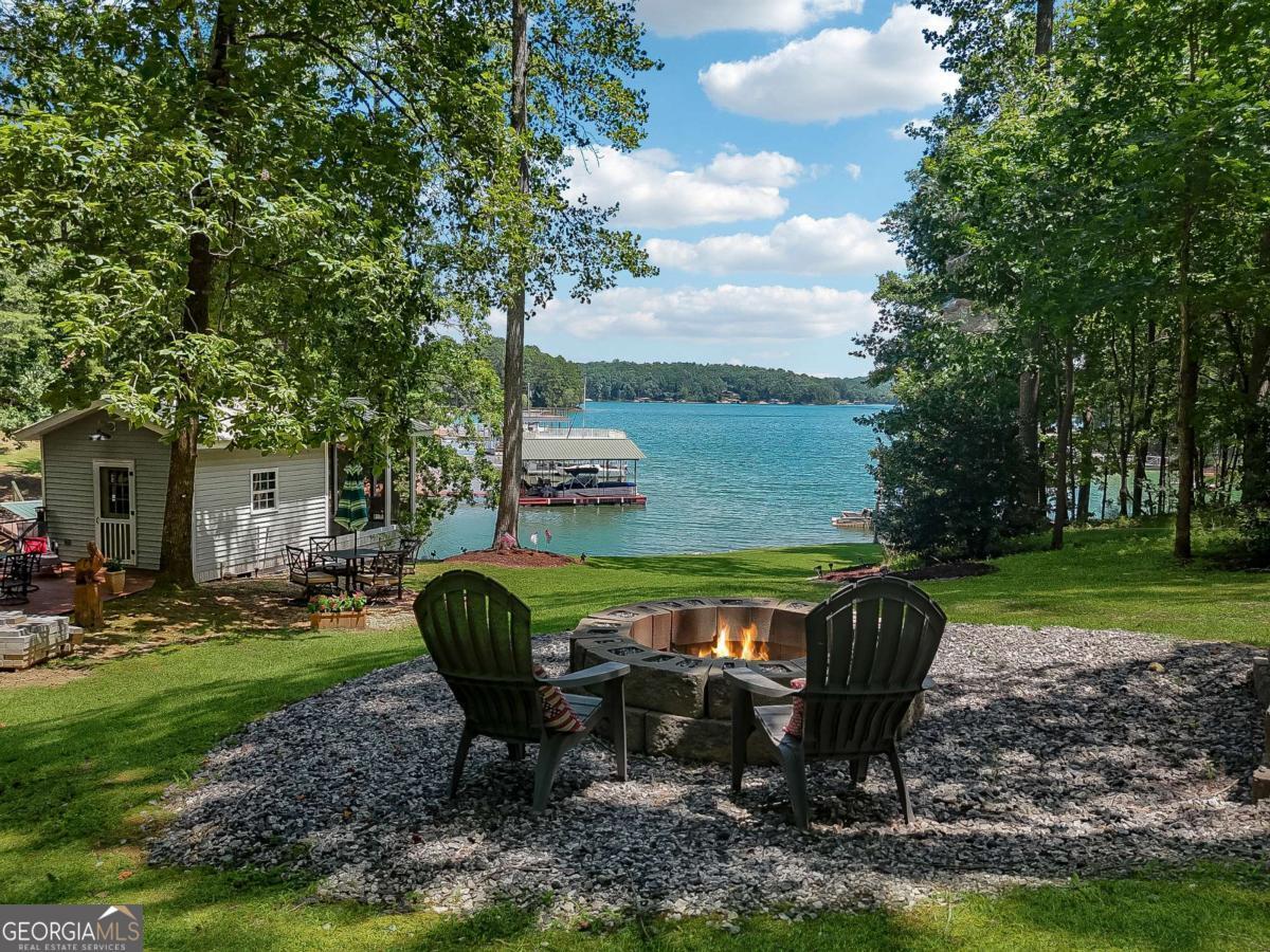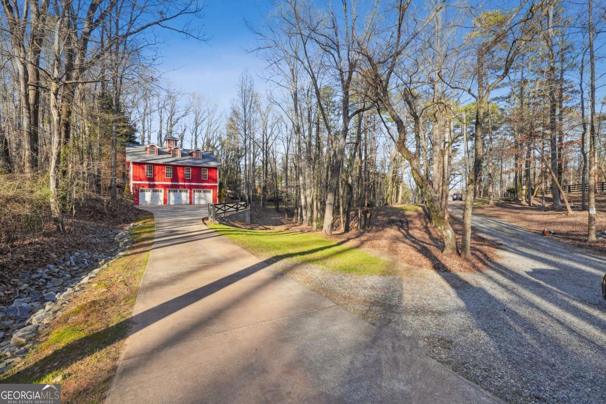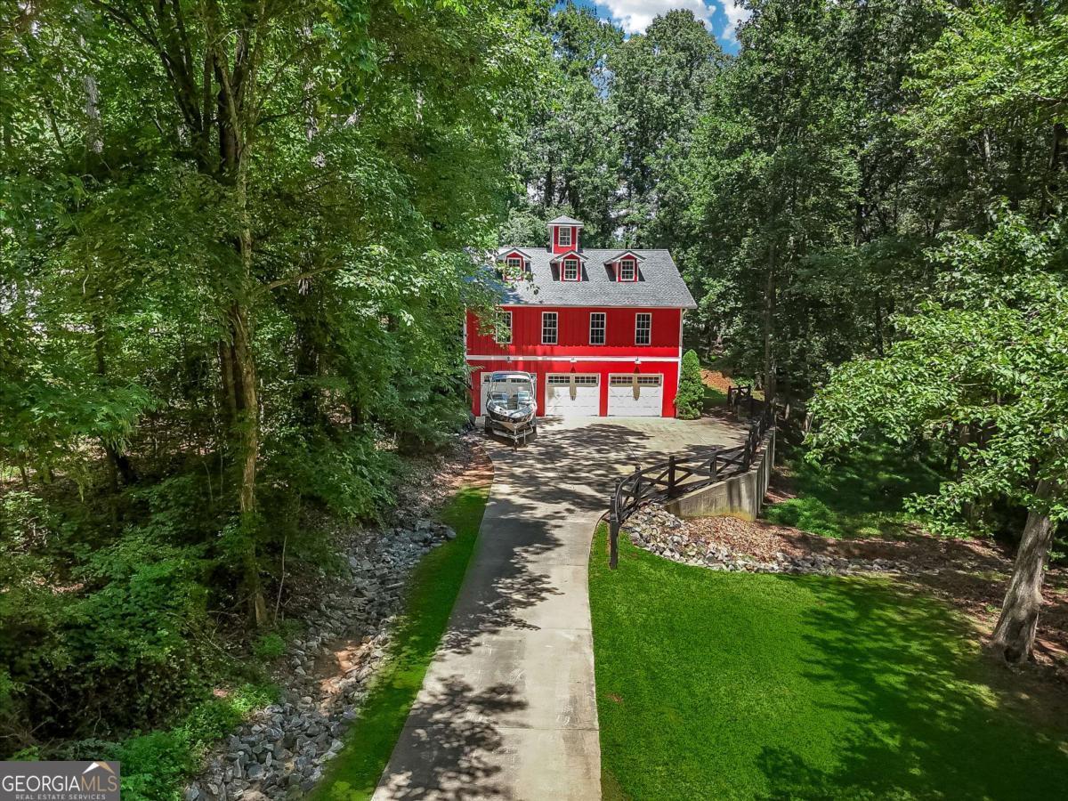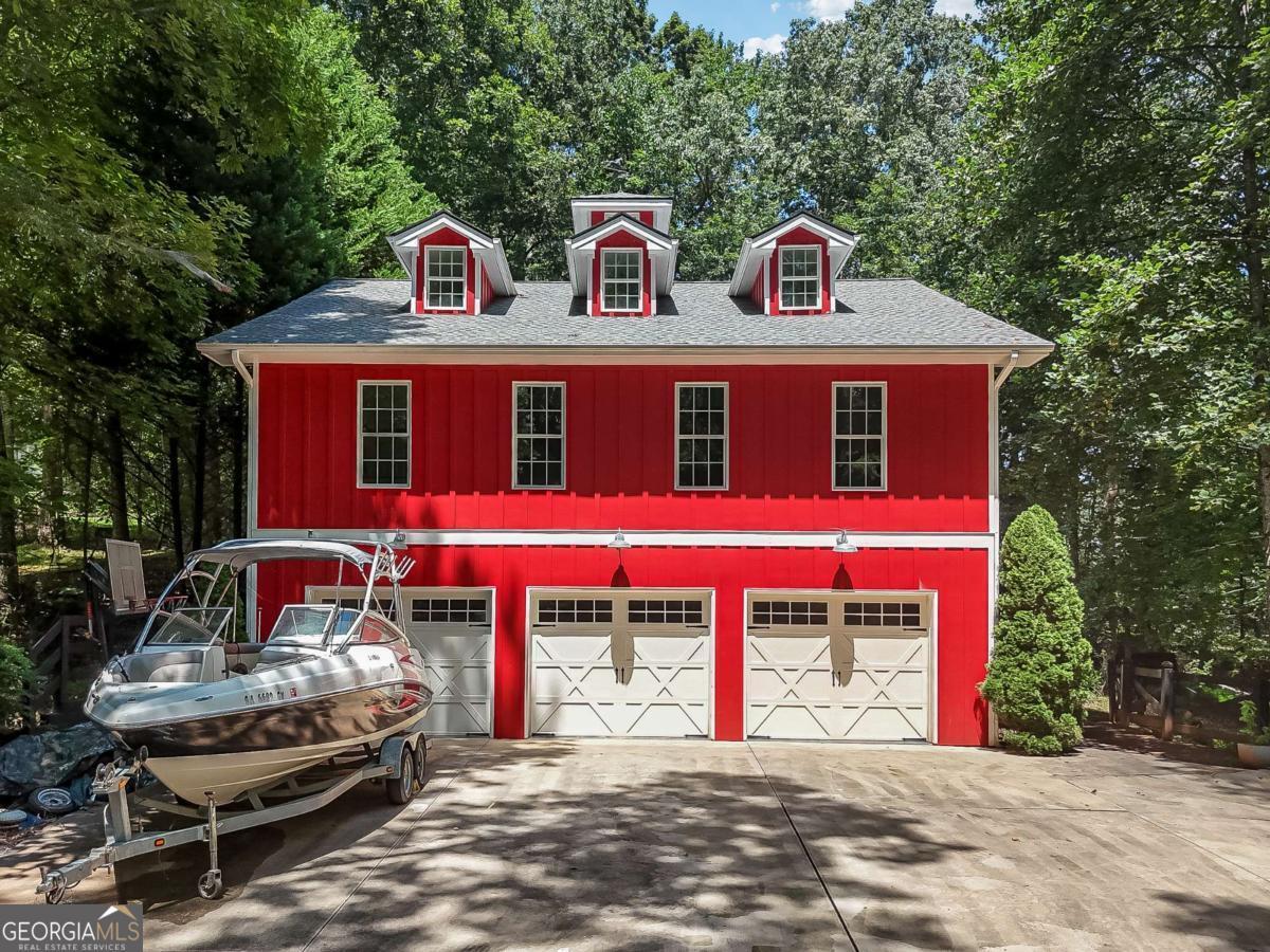 First time on market for this two parcel lake front opportunity! This is a once in a lifetime Lake escape sitting on nearly 2.5 flat and gated acres on the south end of Young deer point, with big water views of Lake Lanier. The property features two docks; a 16x16 Platform and a 32x32 custom double slip, two story party dock, with like new Polly Lift Boat Lift and two ride up Jet Ski lifts, as well as new electric wiring and panel boxes. The purchase includes two separate lots. LOT 1 includes a 3500 sq ft custom designed and built, barn styled farmhouse, Board and Batten siding, new architectural shingle roof, new Andersen windows, a large deck, 1500 sq ft 3 car garage with sprinkler system, epoxy floor and a cleared space outside for an additional barn/workshop. Upon entry you find a large media room with its own full bathroom and garage access, that could double as a guest suite. A grand staircase leads you to the second level that features an abundance of natural light, open floor plan with an L shaped kitchen and stone counters, living room, and a separate dining nook. The second level also boasts the inviting master suite and an additional bedroom and full bathroom. On the third level you discover the two bed loft over looking the cozy family room. Additional interior features all 8 ft doors, full alarm system, hardwood floors, and beautifully detailed crown molding. LOT 2 has been cleared for a custom build opportunity with Power and Water in place for future home or camper/RV hook up. LOT 2 Features also include grandfathered in gravel drive to Lake, mow permit, sprinkler system at grass at shoreline. Also, there is an ADORABLE Picnic House at Waters edge with water, electric, screened in porch and tin roof to enjoy reading a book or listening to the rain as well as a custom fire pit. Property is turn key and ready for you to make whatever your dreams may desire whether it be for personal enjoyment or events and weddings. This property has been loved for over 20 years.. must see to appreciate. This opportunity won't last long . Bring your boats and skis . This is the one.