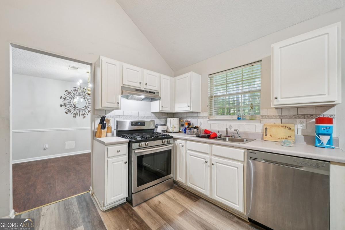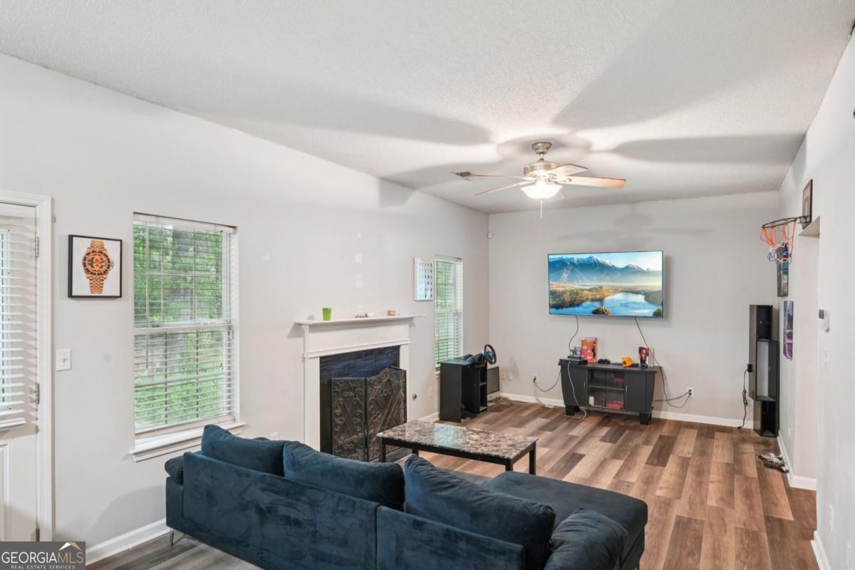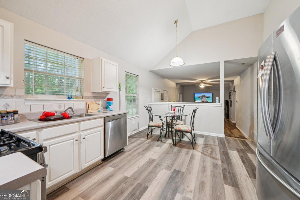 Welcome home to this beautifully updated 3-bedroom, 2.5-bath home nestled in a quiet swim/tennis community in Powder Springs. Step inside to an elegant two-story family room with soaring ceilings, bay windows, and abundant natural light. The main level offers a versatile layout, including a cozy living room with a fireplace, a formal dining room, and a fully renovated eat-in kitchen featuring stainless steel appliances, quartz countertops, a stylish island, and a walk-in pantry. A main-level bedroom provides flexibility for a home office, fitness space, or playroom, and a conveniently located powder room adds everyday ease. Upstairs, the luxurious primary suite boasts trey ceilings, a spacious walk-in closet, and a spa-inspired bath with a soaking tub, separate glass-enclosed shower, and dual vanities. Two large secondary bedrooms feature vaulted ceilings and generous closet space, sharing a well-appointed hall bath. Enjoy outdoor living in the private fenced backyard-perfect for entertaining-with a large patio, and space for gardening or play. Additional features include brand new kitchen flooring, ample storage, and a two-car garage. Situated just minutes from top-rated Cobb County schools, shopping, dining, parks, the Silver Comet Trail, and easy I-20 access, this home combines style, comfort, and convenience in one exceptional package. Don't miss your chance to call this property home!