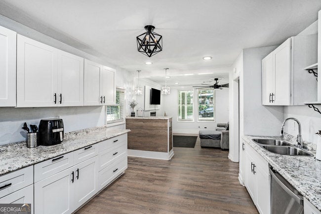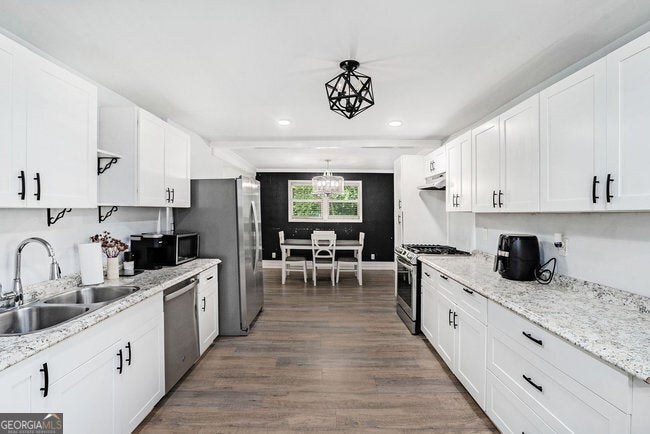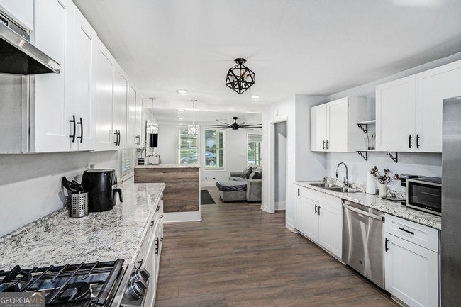 5.5% Rate Assumable FHA with Roam! Investors, Airbnb enthusiasts, or first-time homebuyers - this is for you! Located in an up-and-coming area where home values are on the rise, this 3-bedroom, 2-bath ranch sits on a huge lot with an unfinished basement, ready to be built out into an additional rental unit or apartment with a separate entrance. Live on the main floor and rent out the lower level - no HOA! Inside, you'll find LVP flooring throughout and beautifully crafted white cabinetry paired with stunning stone countertops in the kitchen, equipped with stainless steel appliances and a gas range. The living room boasts a cozy fireplace, perfect for relaxing evenings. Each bedroom is generously sized, and the custom master bathroom features tiled walls and unique flooring for a luxurious retreat. Step outside to the back deck, where you'll find a projector wall for outdoor movie nights and easy access to the expansive backyard. The large lot provides ample space for outdoor activities or future expansion. The unfinished basement, with its exterior entry, offers endless possibilities for customization. Conveniently located near downtown Atlanta, the Mercedes-Benz Stadium, Hartsfield-Jackson Airport, and more. Priced to sell and offered as-is - hurry, this one won't last long!