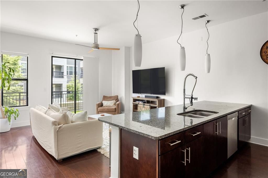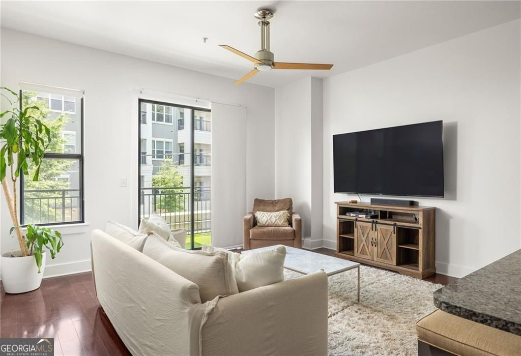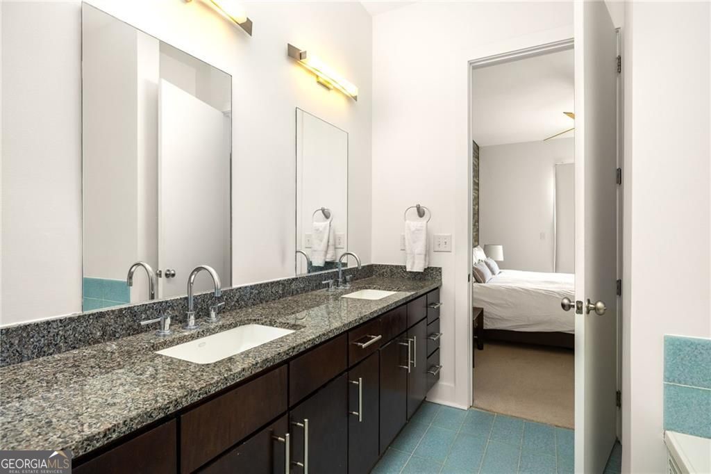Live in the heart of Inman Park at Grinnell Lofts, where you have a front-row seat to the BeltLine and all the dining, shopping, and green space that make this one of Atlanta's most vibrant neighborhoods. Inside, a sleek contemporary kitchen features high-end Bosch stainless steel appliances, gorgeous granite countertops, and an entertainer's island that flows into the open living and dining space. Floor-to-ceiling windows and a spacious walk-out balcony fill the home with natural light and frame incredible city views. Soaring 10-foot ceilings and beautiful hardwood floors run throughout the main living areas, while cozy Berber carpeting adds warmth in the bedrooms. The primary suite offers a spa-like retreat with a double vanity, relaxing garden tub, oversized tile shower, and a professionally designed closet system for exceptional storage. The second bedroom includes its own generous closet and easy access to the guest bath. Additional comforts include in-unit laundry, abundant storage, and a dedicated covered parking spot. Life at Grinnell Lofts comes with secure keypad entry and access to a rooftop lounge with sweeping city views. Residents also enjoy a sparkling pool and a state-of-the-art fitness center through X3 Sports, complete with modern equipment and a full schedule of group classes. Just outside your door, you can walk or bike to neighborhood favorites like Krog Street Market, Ponce City Market, and Piedmont Park. This home blends style, comfort, and convenience with unmatched access to the BeltLine.