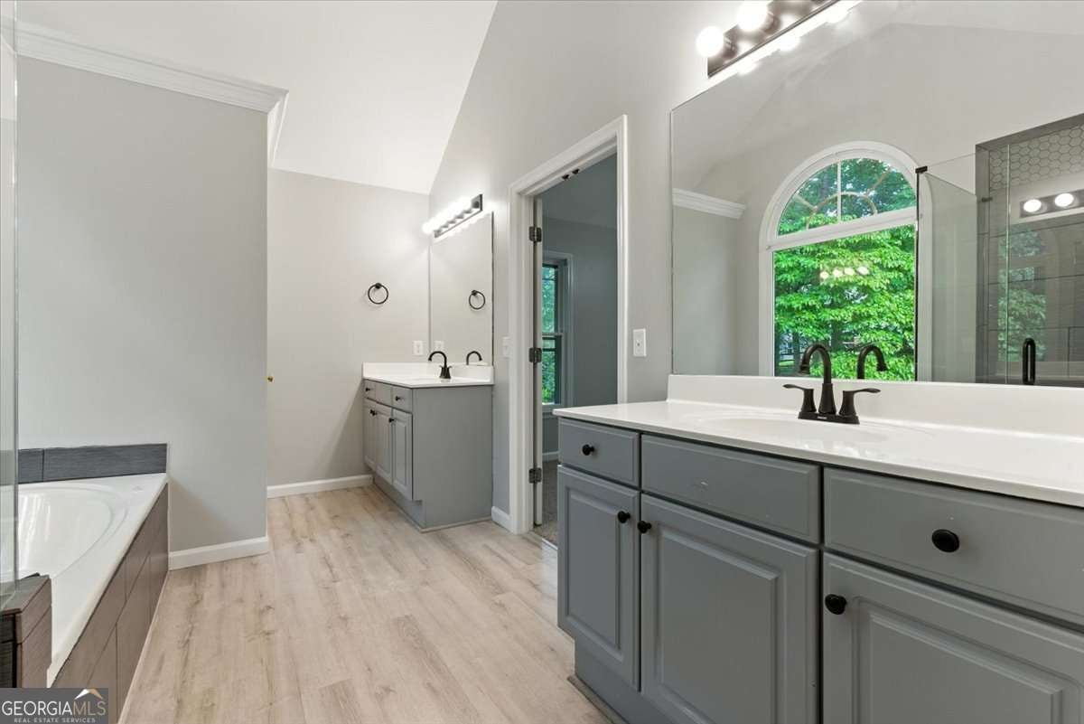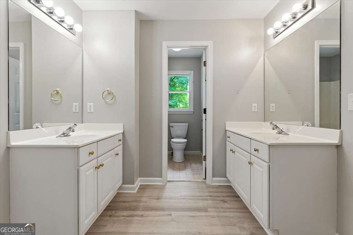 Here is a great home in Eagle Watch golf club community in Woodstock. We have a 5 bedroom, 3.5 bath home with 2 extra large master bedrooms. The master on the main could be used for an inlaw suite, an owners suite and also has handicap accessibility. This home has an open floor plan that the family room, the kitchen and the eat in portion of the kitchen can been seen across the rooms. The main floor has ceramic tile in the kitchen, LVP flooring in the master on the main as well as the foyer, dining, formal living room and the family room. Upstairs, has another master bedroom with updated bathroom, laundry on the upstairs floor level with all the other bedrooms. This great home is located across from the Eagle Watch Golf course which was designed by Arnold Palmer. The neighborhood parks are nearby along with great schools, great shopping and restaurants are nearby. Make an appointment today to see this great home.