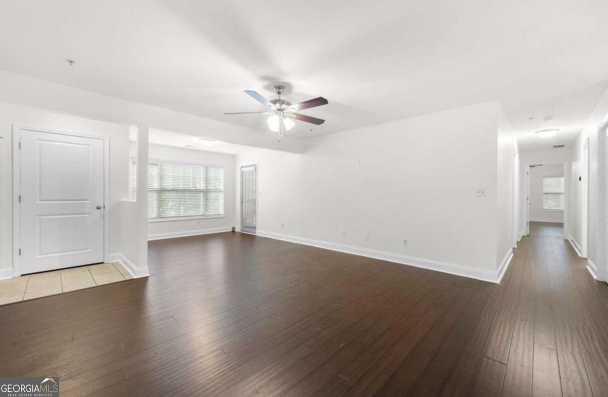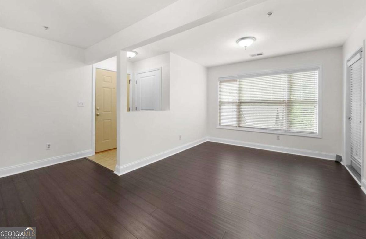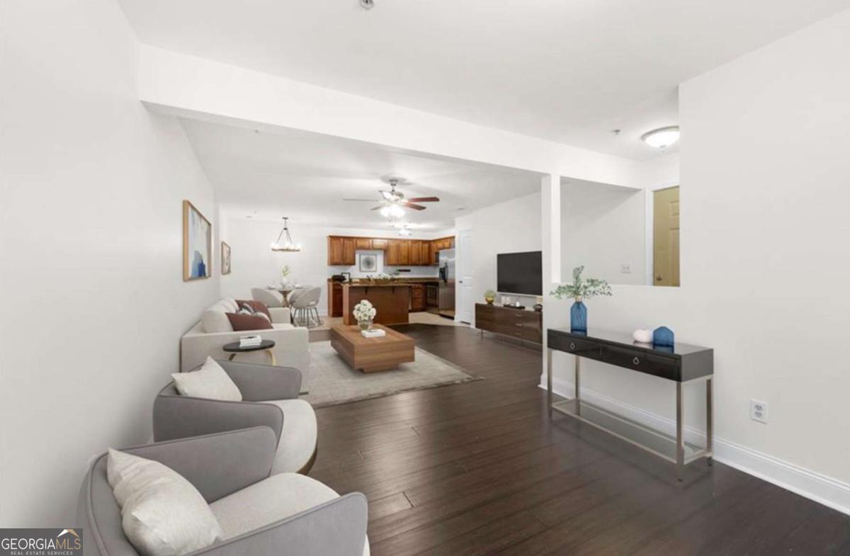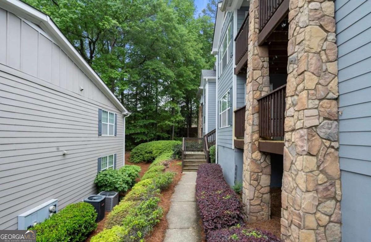 Welcome to this beautifully maintained, top-floor 3-bedroom, 2-bath condo in the highly sought-after Madison at Village Green swim community! Located just minutes from downtown Smyrna, Truist Park, and major interstates, this move-in ready home combines unbeatable location with stylish comfort. Step inside and be greeted by gleaming hardwood floors and an abundance of natural light that highlights the open, airy floor plan. The spacious living room flows effortlessly into a designer eat-in kitchen featuring granite countertops, stained cabinetry, subway tile backsplash, stainless steel appliances, modern lighting, a breakfast bar, and a pantry for extra storage. A bonus nook off the living area makes an ideal office, reading space, or formal dining area with serene views and sun-drenched windows. The oversized primary suite is a true retreat, complete with vaulted ceilings, a generous walk-in closet, and a spa-like ensuite bath with a granite-topped vanity, soaking tub, separate tiled shower, and ample linen storage. Two additional bedrooms offer plenty of space for family or guests and share a beautifully updated hall bath with granite counters and a tiled shower. Step outside to your large, private, covered deck - perfect for morning coffee or evening grilling with a view of the community's lush greenery. Enjoy the community pool or take a short stroll to nearby parks, restaurants, shops, and local attractions like the Smyrna Community Center, Library, and Centennial Park. This rare gem offers low-maintenance living in one of Smyrna's most convenient and charming neighborhoods. Don't miss your chance-schedule your showing today! AGENTS: Please DO NOT turn off the overhead fans in the condominium. Thank you!!!