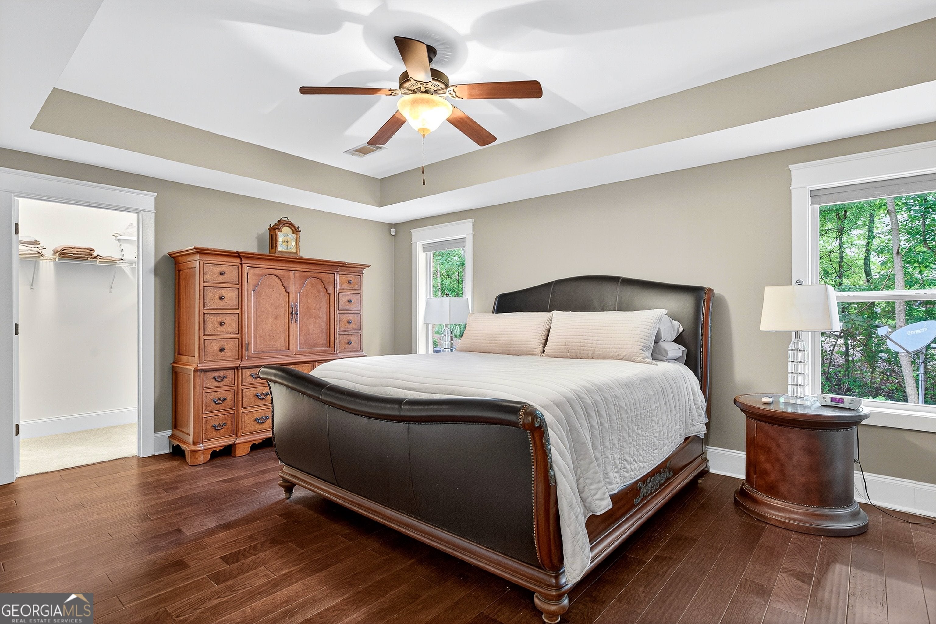 - Interior FeaturesBeamed Ceilings, Bookcases, Double Vanity, High Ceilings, Master On Main Level, Rear Stairs, Separate Shower, Soaking Tub, Tile Bath, Tray Ceiling(s), Walk-In Closet(s), Wet Bar