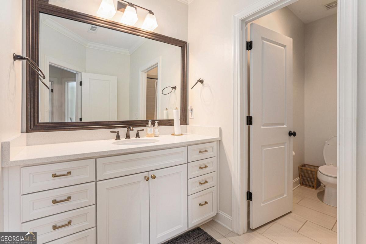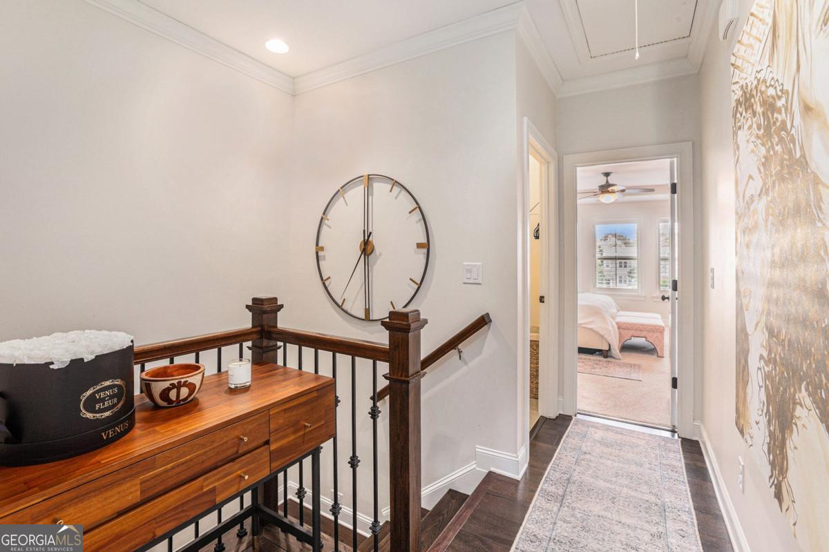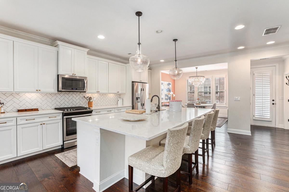 This elegant, move-in ready townhome offers an exceptional blend of style, comfort, and function across three spacious levels. Step inside the lower level to a welcoming mud area, a full bath, and a versatile office space-perfect for working from home or hosting guests. The heart of the home boasts an expansive living area with hardwood floors and custom wood plantation shutters throughout. The chef's kitchen is a true showstopper, featuring stainless steel appliances, Carrera marble counters, soft-close cabinets and drawers, an oversized island with seating for four, a walk-in pantry, and under-cabinet lighting. The kitchen flows seamlessly into the fireside den and dining area, with a large deck just beyond-complete with a natural gas grill for year-round entertaining. A stylish half bath completes this level. Retreat to the luxurious primary suite with a spa-like bath, double Carrera marble vanities, an oversized double shower, and a huge custom Elfa closet. Two additional bedrooms share a well-appointed secondary bath. A two-car garage with electric charging station, bike rack, and a storage closet ensures every need is met. Easy access to I-85. Close to Emory University, Children's Healthcare of Atlanta, and CDC. With its upscale finishes, abundant storage, and exceptional layout, this townhome is perfect for those seeking style, comfort, and convenience in one remarkable package.