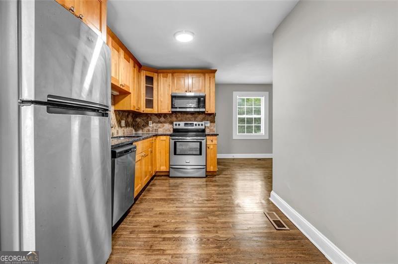 The seller is offering a $1000 credit to the buyer for this property for any offer that is accepted before September 30, 2025 Remodeled ranch home in a convenient intown location. The kitchen features plenty of cabinet space, granite countertops, stainless steel appliances, and an eating area. The home offers a family room, three bedrooms, and one updated bathroom. Enjoy new hardwood floors throughout. Exterior features include a small front porch, a back deck, and a level lot with a fenced backyard. Easy access to I-20 and downtown Atlanta.