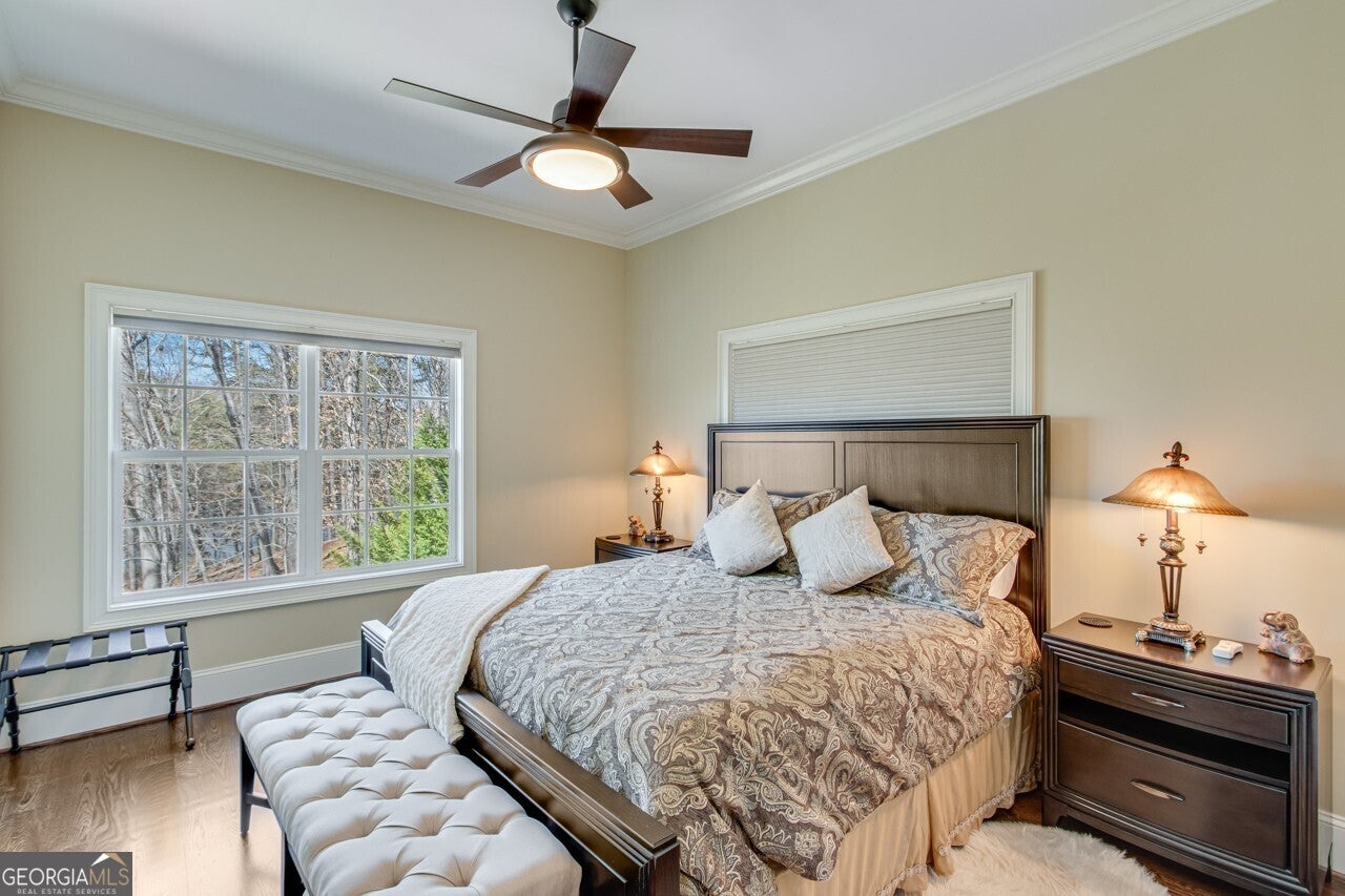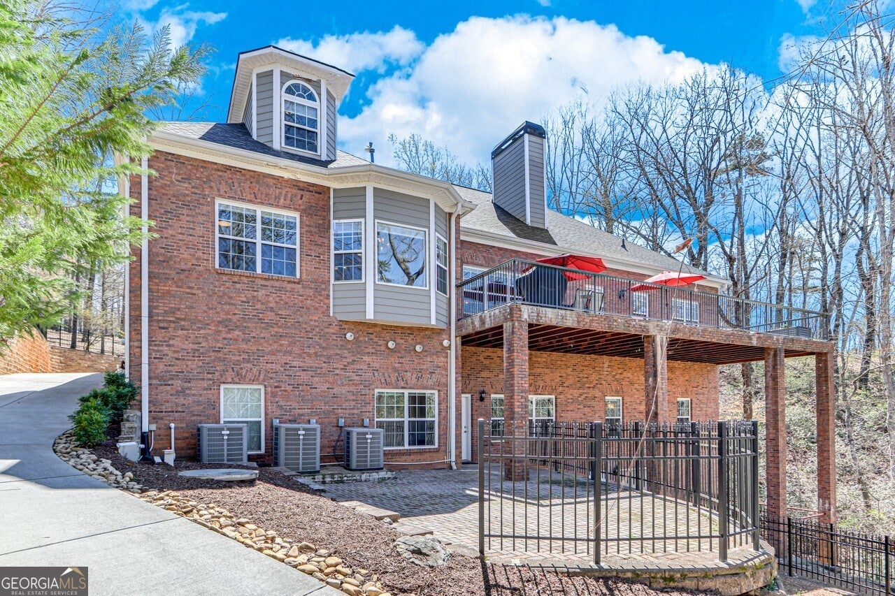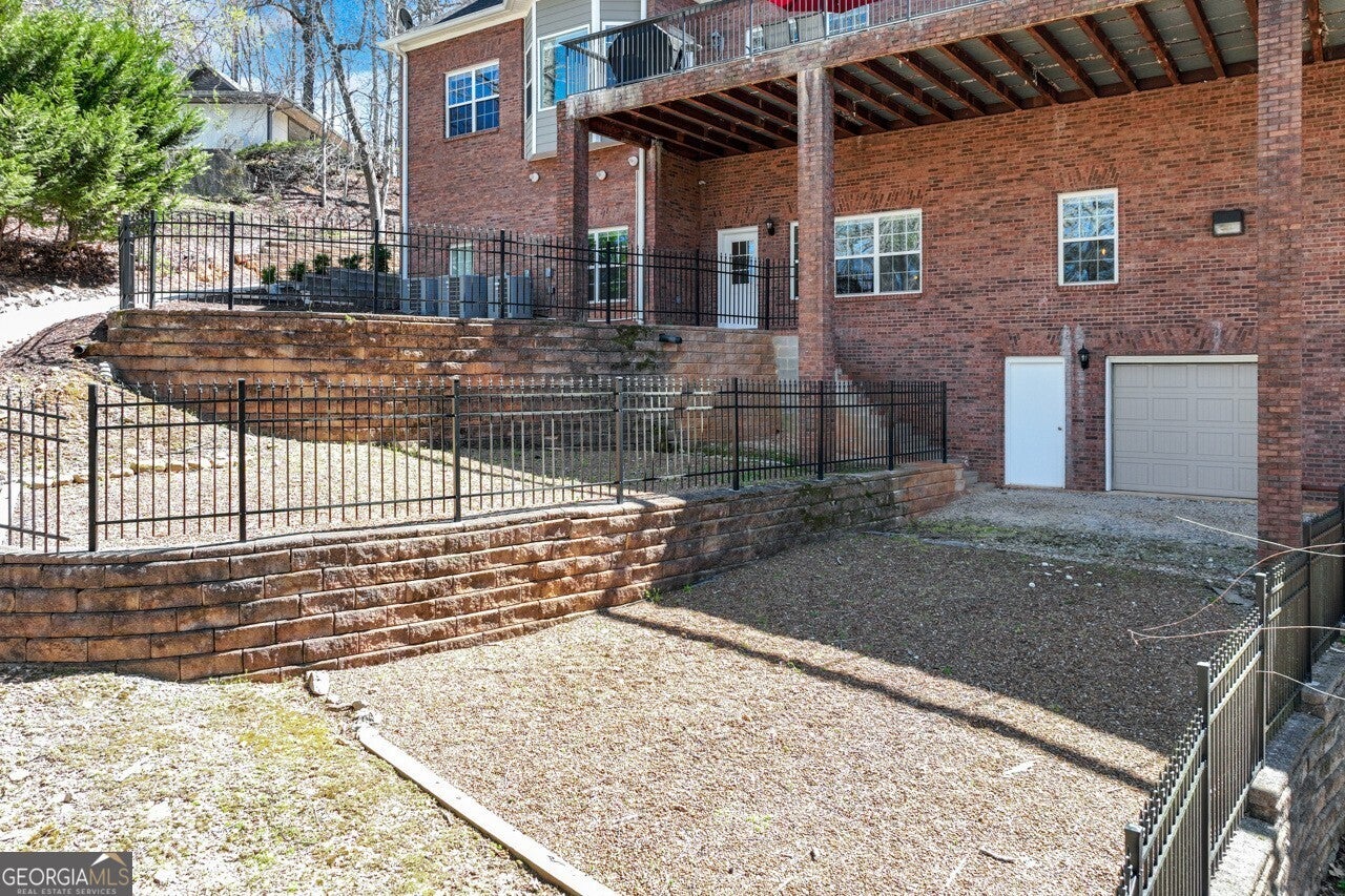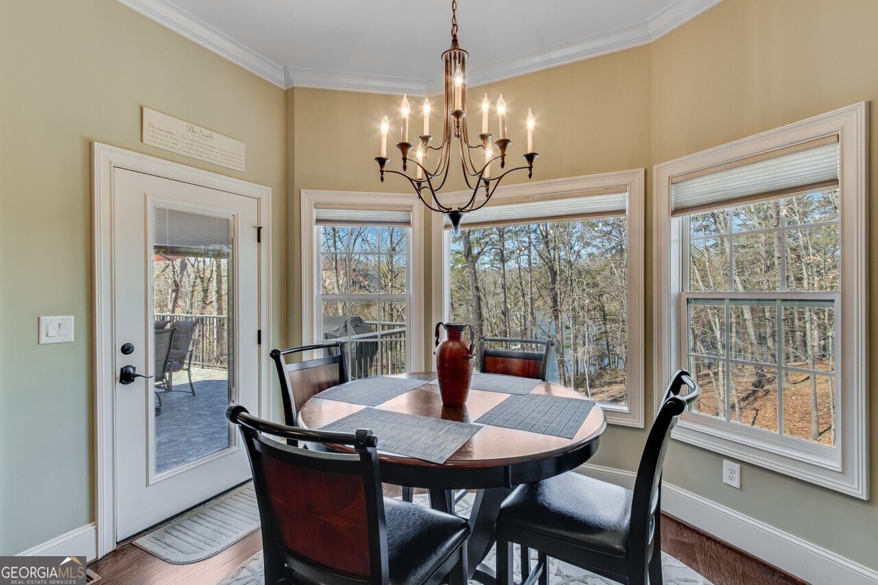 This elegant, traditional Lake Lanier home has everything you need for fine lake living! Conveniently located just 10 minutes from downtown Gainesville, The Rowing Venue, the hospital district, shopping, and restaurants, this home is designed for the ultimate lakefront lifestyle. With stunning lake views from most rooms, it also features a paved path leading to a single-slip party dock in deep, calm, no-wake waters-perfect for lounging and swimming. Situated on a double lot with a low CORPS line, the property offers a circular driveway and abundant parking, along with a drive-around access to the lower-level double garage-ideal for a golf cart, boat toys, a workshop, and extra storage. Inside, the main floor boasts an open layout with all hardwood floors. The great room, featuring a striking stone wood-burning fireplace, flows seamlessly into the kitchen, which includes granite countertops, a double gas range, and high-end Thermador appliances. A dining room and a study/office complete this space. The oversized primary suite is a true retreat, featuring a sitting area, double custom closets (one with a double-stack washer/dryer), heated travertine tile floors, a jacuzzi tub, a spacious shower, and double granite vanities. Additionally, the main level includes a second ensuite bedroom, a powder room, and a large laundry room. Upstairs, you'll find a guest bedroom, a full bath, and a large bonus room over the garage. The beautifully finished terrace level, completed in 2015, offers luxury vinyl flooring, a family room with a second stone wood-burning fireplace, a full kitchen with all appliances, a dining area, a large game room, a full guest bath, and an ensuite with its own private bath-perfect for entertaining or multi-generational living. Every bathroom is equipped with heated travertine tile floors, and the home features only hardwood and luxury vinyl flooring-no carpet. This exceptional Lake Lanier property combines elegance, functionality, and the best in lakeside living!