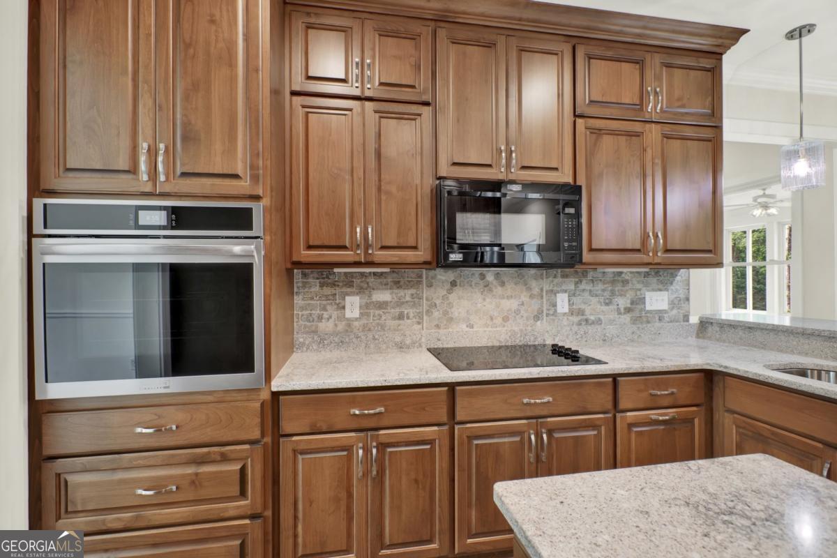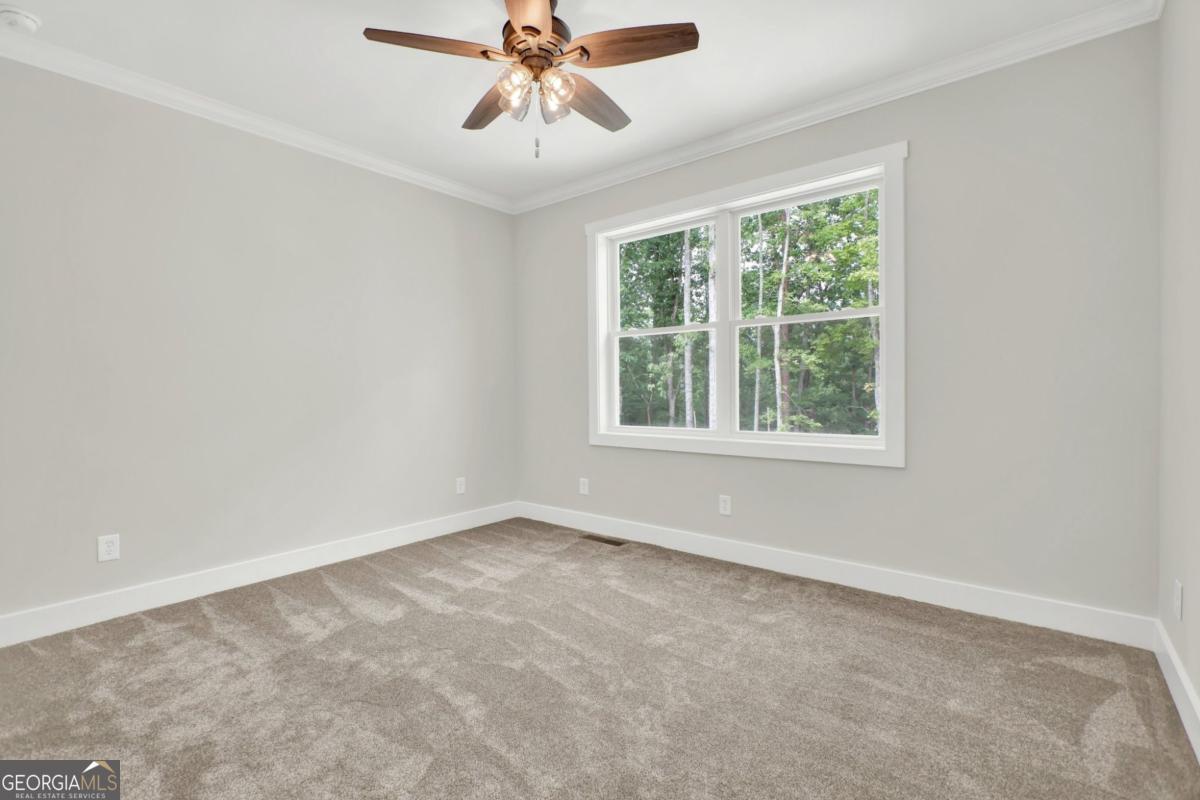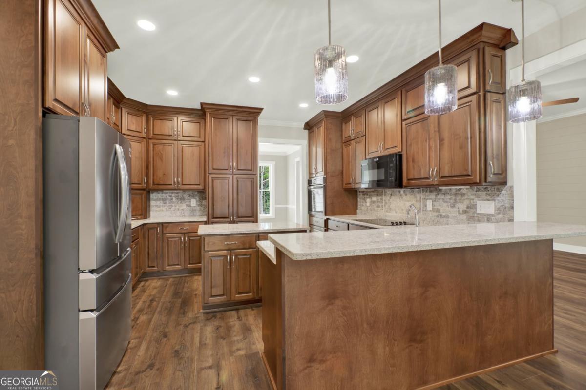 Priced for instant equity.. below appraisal! Stunning custom-built retreat nestled on 1.88 peaceful, wooded acres in one of Canton's most desirable and convienent areas. This brand new 4-bedroom, 2.5-bath estate boasts approximately 3,330 sq ft of thoughtfully designed living space, with a full daylight basement featuring 9' ceilings and stubbed for a bathroom-offering limitless potential for expansion. Step inside to discover a bright, open layout filled with luxurious finishes and elegant details throughout. The inviting family room showcases 10' ceilings, a cozy rock fireplace with gas logs and starter, accenting bookcases, and a charming shiplap accent wall. Adjacent to the family room is a gourmet chef's kitchen, complete with gleaming quartz countertops, a spacious island and breakfast bar, custom soft-close cabinetry, a convection oven, a large pantry, and a double stainless steel sink-perfect for entertaining and everyday living. The sun-drenched breakfast nook features stylish beadboard and chair rail, while the formal dining room, sunroom, and versatile bonus room provide ample space for hosting guests or relaxing in comfort. The luxurious owner's suite offers a tray ceiling, a cozy sitting area, and walk-in closet, with a spa-like en-suite bathroom that includes a garden tub, rain glass shower, separate toliet room, and his and hers vanities. Each of the spacious bedrooms offers walk-in custom closets, and upgraded flooring includes plush carpet with premium padding. The formal areas are a durable luxury vinyl plank flooring in high-traffic spaces such as the kitchen, family room, foyer, laundry, and breakfast areas. Ceiling fans in all bedrooms and main living spaces add comfort and energy efficiency. The sunroom and 4th bedroom/bonus room are outfitted with their own remote-controlled split-unit HVAC systems, and there is ample pull-down attic storage accessible from the hallway and bonus room. The oversized 3-car garage with remote-access overhead doors and an electric charging station plus a drive-under basement entry provides ultimate convenience, along with an extra-large patio ideal for outdoor living. Energy efficiency and safety are top priorities in this home, featuring dual fuel HVAC (electric heat pump with propane backup), electric water heater, double-pane vinyl windows, and a metal roof. Built with 2x6 exterior walls, it includes foam and fiberglass insulation throughout, with R-21 ceilings/walls and R-19 floors. A poured wall foundation, storm/safe room with steal door and pre-wired security system with exterior cameras and floodlights on all four corners provide peace of mind. The home is wired for a whole-house generator and located in the highly rated New Cherokee High School district. Utility services include GA Power, Waleska Water, and a septic system. Exterior finishes include an all-brick front with Hardy Plank siding on sides and rear, combining classic curb appeal with low-maintenance durability. Included in the sale are top-of-the-line appliances: a Frigidaire stainless steel wall oven (Gallery Series), Frigidaire smooth cooktop, Bosch quiet dishwasher, and Maytag over-the-range microwave. This gorgeous, move-in ready home offers a rare combination of style, comfort, space, and privacy-perfect for anyone seeking a quiet escape with easy access to local amenities.