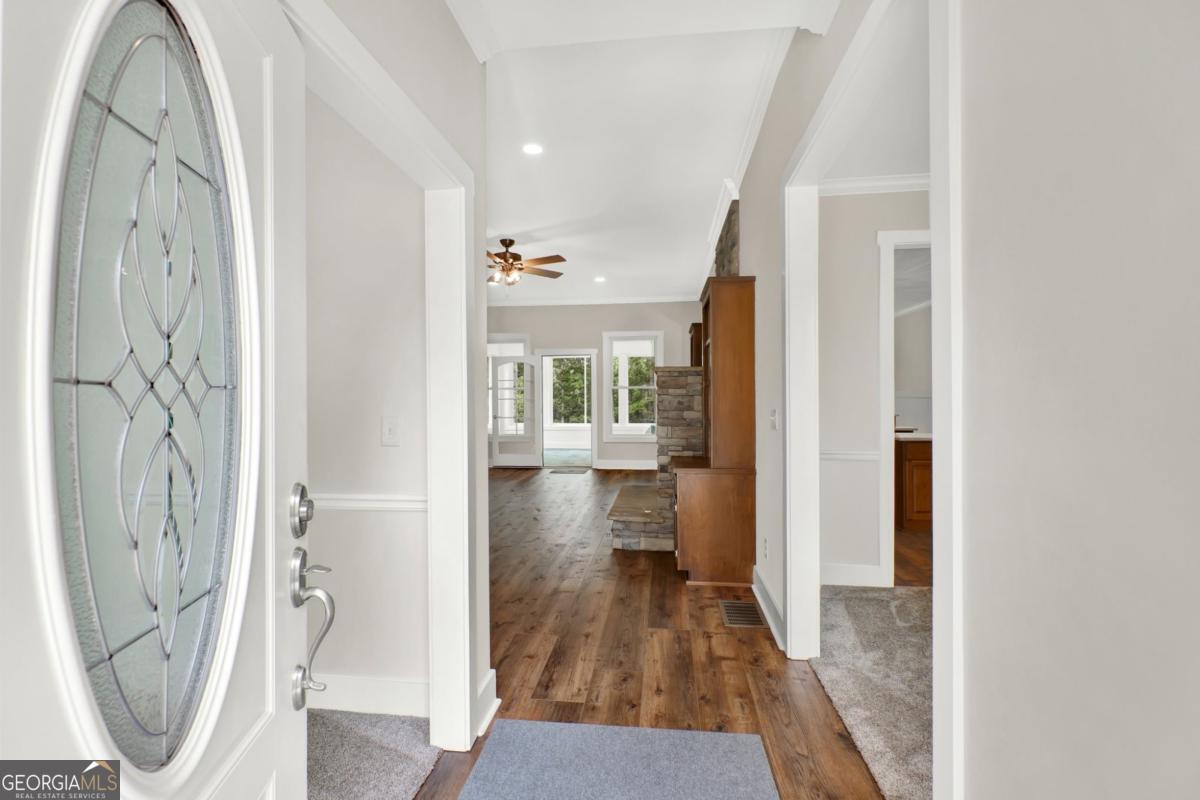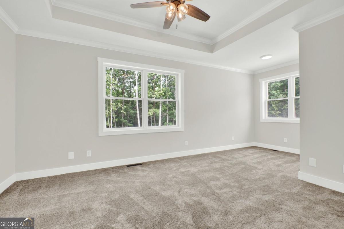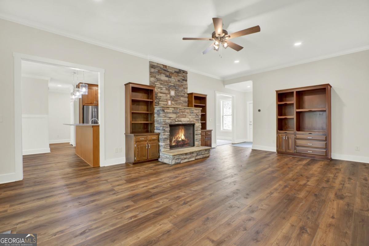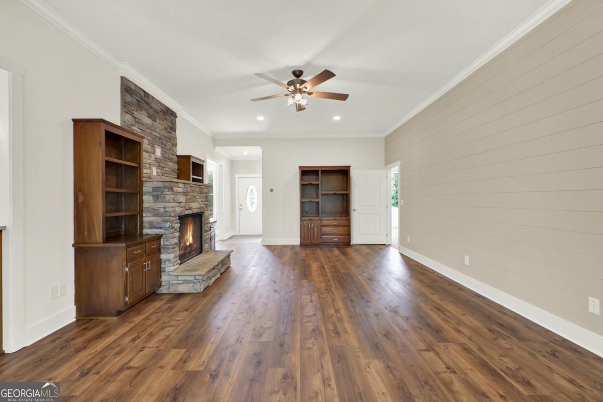 Priced for instant equity.. below appraisal! Stunning custom-built retreat nestled on 1.88 peaceful, wooded acres in one of Canton's most desirable and convienent areas. This brand new 4-bedroom, 2.5-bath estate boasts approximately 3,330 sq ft of thoughtfully designed living space, with a full daylight basement featuring 9' ceilings and stubbed for a bathroom-offering limitless potential for expansion. Step inside to discover a bright, open layout filled with luxurious finishes and elegant details throughout. The inviting family room showcases 10' ceilings, a cozy rock fireplace with gas logs and starter, accenting bookcases, and a charming shiplap accent wall. Adjacent to the family room is a gourmet chef's kitchen, complete with gleaming quartz countertops, a spacious island and breakfast bar, custom soft-close cabinetry, a convection oven, a large pantry, and a double stainless steel sink-perfect for entertaining and everyday living. The sun-drenched breakfast nook features stylish beadboard and chair rail, while the formal dining room, sunroom, and versatile bonus room provide ample space for hosting guests or relaxing in comfort. The luxurious owner's suite offers a tray ceiling, a cozy sitting area, and walk-in closet, with a spa-like en-suite bathroom that includes a garden tub, rain glass shower, separate toliet room, and his and hers vanities. Each of the spacious bedrooms offers walk-in custom closets, and upgraded flooring includes plush carpet with premium padding. The formal areas are a durable luxury vinyl plank flooring in high-traffic spaces such as the kitchen, family room, foyer, laundry, and breakfast areas. Ceiling fans in all bedrooms and main living spaces add comfort and energy efficiency. The sunroom and 4th bedroom/bonus room are outfitted with their own remote-controlled split-unit HVAC systems, and there is ample pull-down attic storage accessible from the hallway and bonus room. The oversized 3-car garage with remote-access overhead doors and an electric charging station plus a drive-under basement entry provides ultimate convenience, along with an extra-large patio ideal for outdoor living. Energy efficiency and safety are top priorities in this home, featuring dual fuel HVAC (electric heat pump with propane backup), electric water heater, double-pane vinyl windows, and a metal roof. Built with 2x6 exterior walls, it includes foam and fiberglass insulation throughout, with R-21 ceilings/walls and R-19 floors. A poured wall foundation, storm/safe room with steal door and pre-wired security system with exterior cameras and floodlights on all four corners provide peace of mind. The home is wired for a whole-house generator and located in the highly rated New Cherokee High School district. Utility services include GA Power, Waleska Water, and a septic system. Exterior finishes include an all-brick front with Hardy Plank siding on sides and rear, combining classic curb appeal with low-maintenance durability. Included in the sale are top-of-the-line appliances: a Frigidaire stainless steel wall oven (Gallery Series), Frigidaire smooth cooktop, Bosch quiet dishwasher, and Maytag over-the-range microwave. This gorgeous, move-in ready home offers a rare combination of style, comfort, space, and privacy-perfect for anyone seeking a quiet escape with easy access to local amenities.