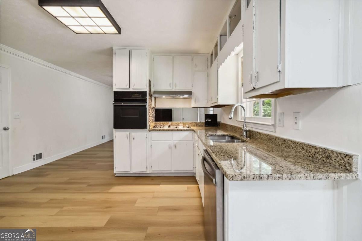 WELCOME to beautiful 4 sides Brick Ranch Style home in Parkview School District. This home features three bedrooms in main level, recently painted inside and outside, recently updated kitchen, bathroom, flooring, granite countertop, stainless appliances. Living areas are filled with natural light. This home has NO HOA, unfinished basement with natural lights. Conveniently located near shopping centers, dining, entertainment etc. Easily access to I-285 & I-85. Don't miss this opportunity to own a beautiful home. Visit the home and make an offer.