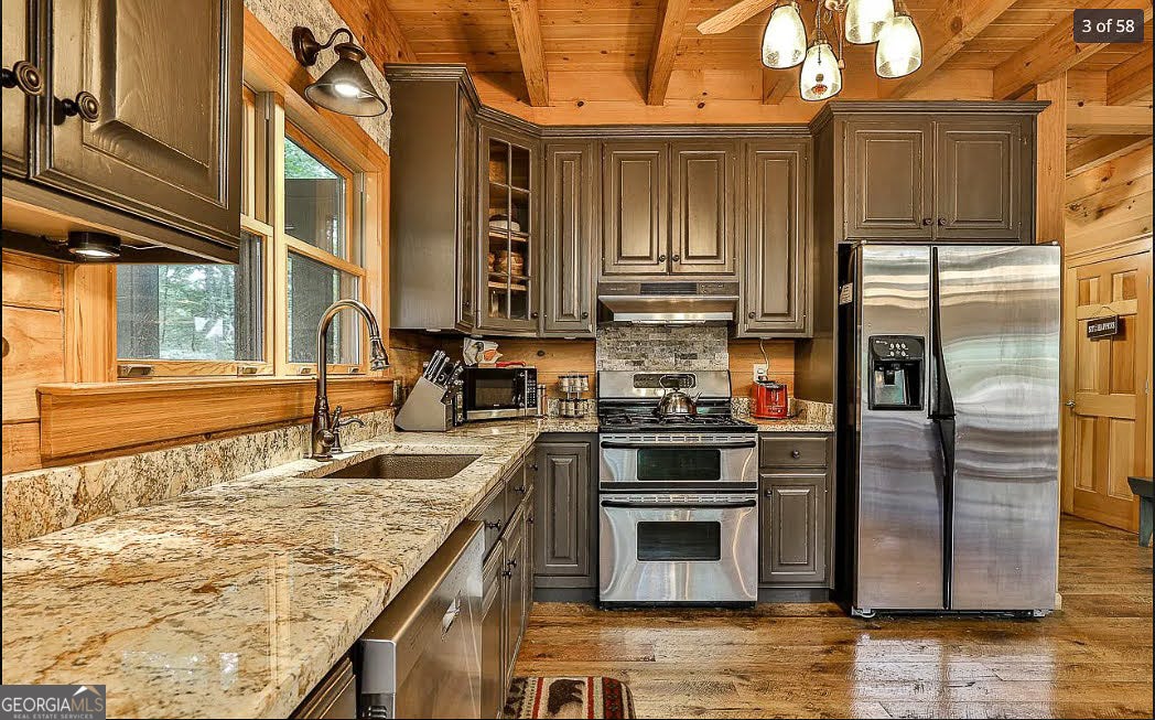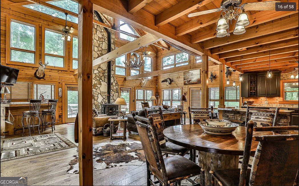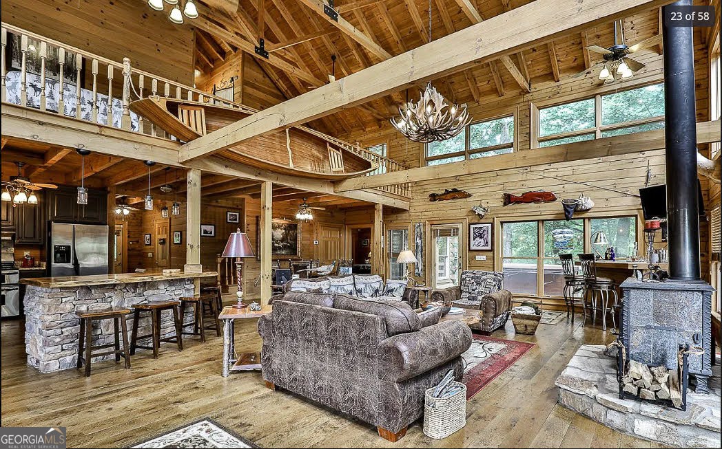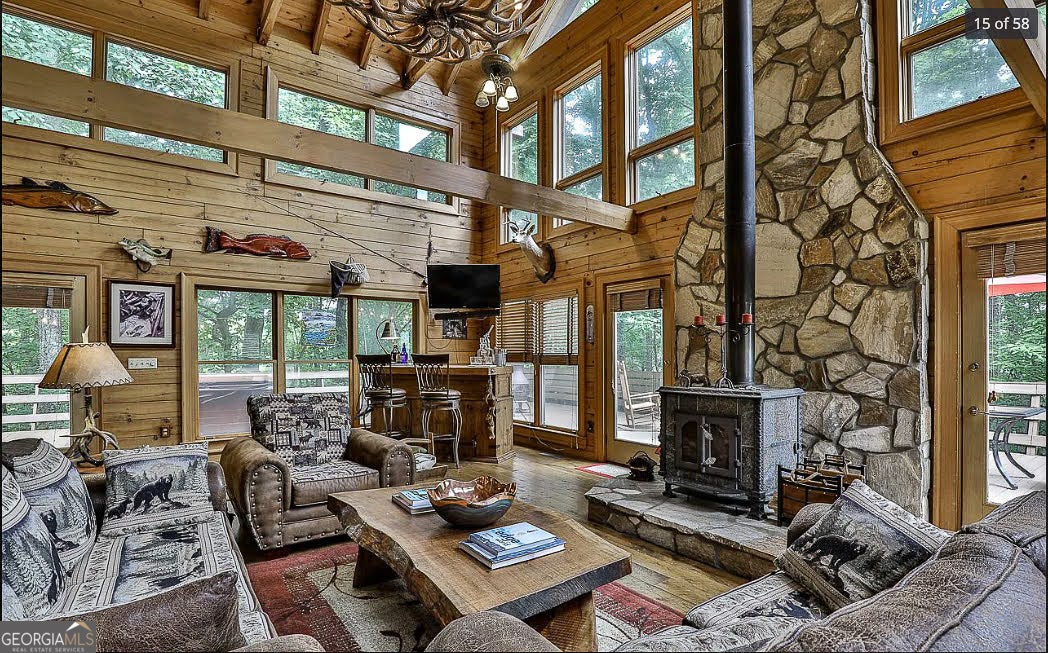 NEW BEDROOM IN THE BASEMENT HAS BEEN ADDED! Whether you're looking for a profitable short-term rental or a mountain home that pays for itself, this 3-bed, 3-bath stunner on 2.75 private acres offers the best of both worlds and it's only 6 miles from Blue Ridge. The open-concept layout with 25-foot beamed ceilings and full-height windows gives the space a bright, airy feel, and the real rough sawn hardwood floors bring warmth and charm. With two septic systems already in place, you can rest easy knowing this home is equipped to handle the guest load, especially for the holidays. The fully remodeled kitchen makes entertaining easy, and outdoor living is dialed in with a huge open deck, screened-in porch, hot tub, and fire table-all surrounded by mountain views and total tree top privacy. Downstairs, the finished 1,637 sqft basement adds flexibility for guest space, storage, or a game room setup, and the fenced yard is ready for four-legged visitors. It's move-in ready, STR-ready, income ready and waiting for someone to make the most of it.