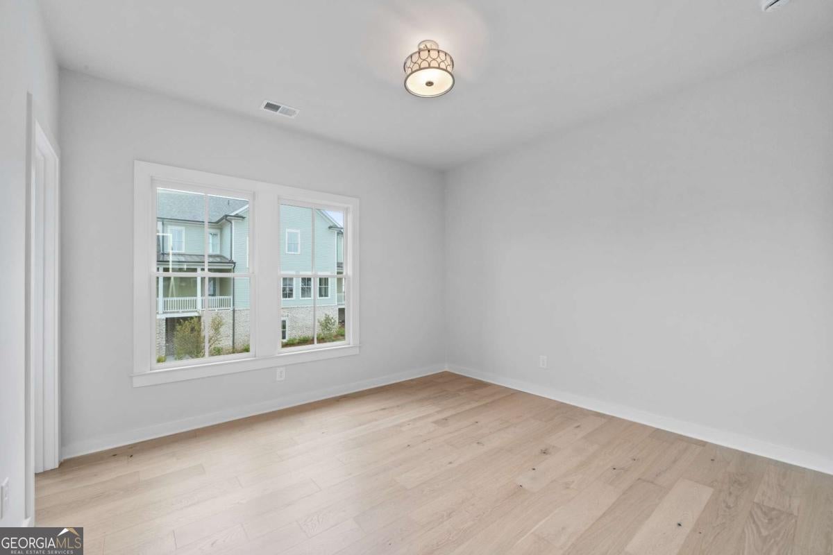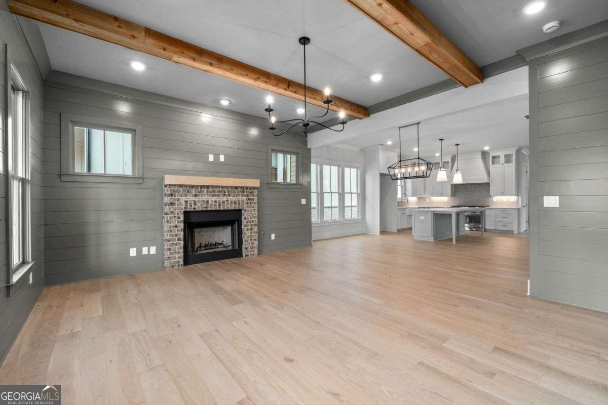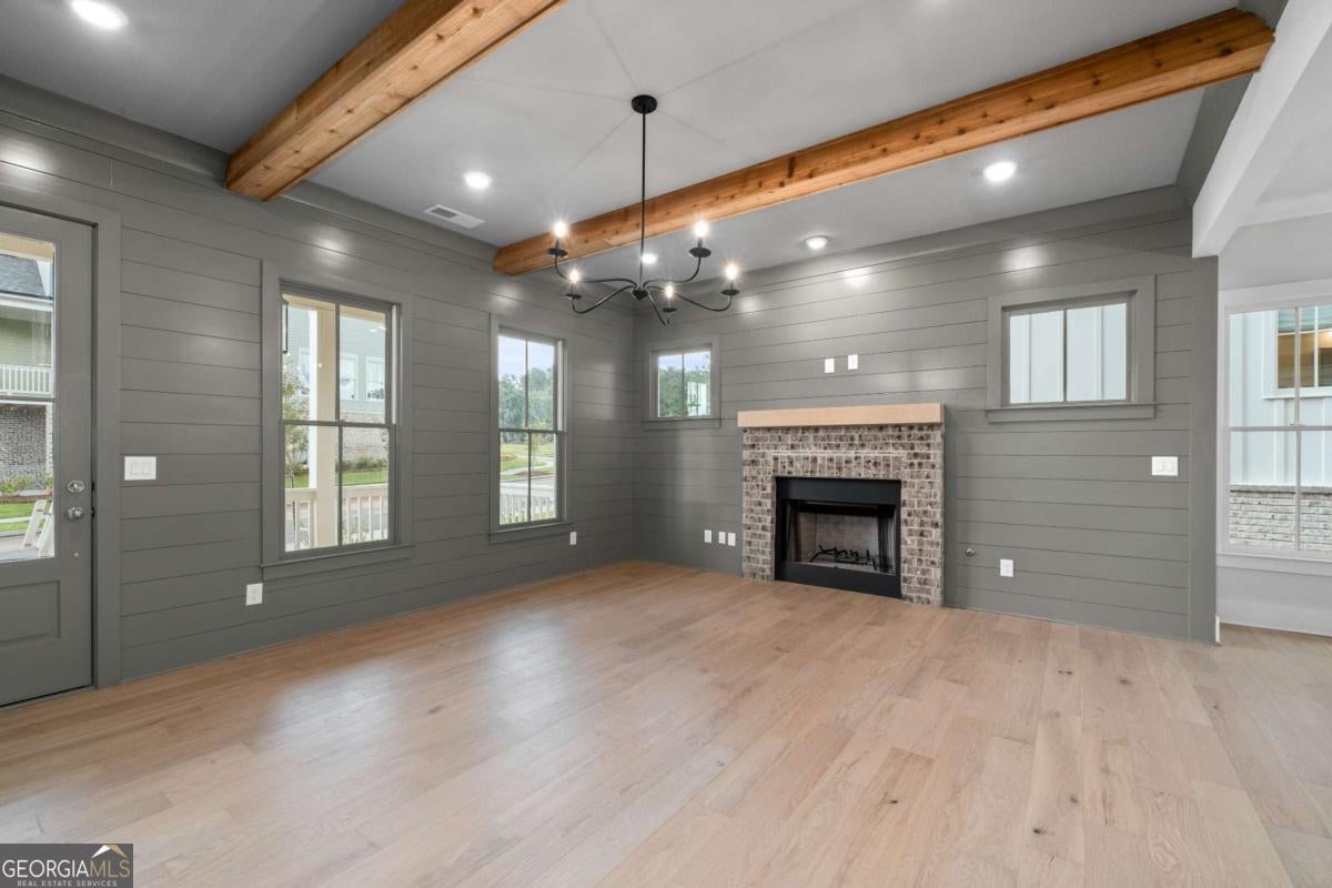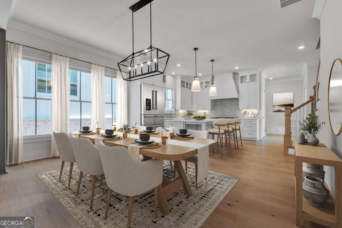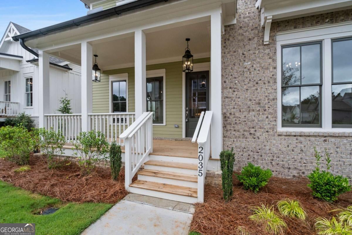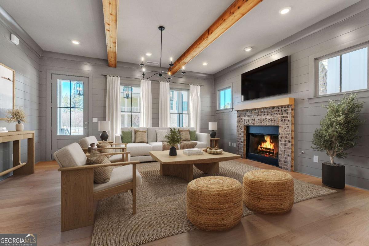 Perfect for the on-the-go homeowner, this beautiful residence in the Village section of Crossroads offers a true lock-and-leave lifestyle. With HOA-maintained grounds plus sewer included in the monthly fees, you can enjoy more time living and less time on upkeep. The main level features a primary suite, private office and laundry room, making this an ideal layout for comfortable one-level living. Step inside to discover designer touches throughout, including cedar-wrapped beams in both the family room and primary suite. The chef's kitchen is a showstopper with custom cabinetry to the ceiling, quartz countertops, a farmhouse sink, and a professional-grade 48" Thermador gas range-featuring six high-output burners, a griddle, and double ovens for flawless cooking and entertaining. A walk-in pantry keeps everything organized and within reach. The family room invites relaxation with a brick-surround fireplace, cedar mantle, and tongue-and-groove shiplap walls. Just off the kitchen, a covered deck overlooks the community greenspace, creating the perfect setting for grilling or unwinding outdoors. Upstairs, a versatile flex space serves as an ideal guest retreat or media room. Bedroom three offers a private en suite, while bedrooms two and four share a convenient Jack and Jill bath. Ample attic storage provides additional functionality. Enjoy mornings or evenings on your covered back porch overlooking the community greenspace. Blending style, comfort, and ease of living, this home delivers a refined retreat in a charming community setting. Enjoy walkable access to dining, shopping and services, plus the benefit of award-winning schools-all in one of Milton's most desirable locations.
