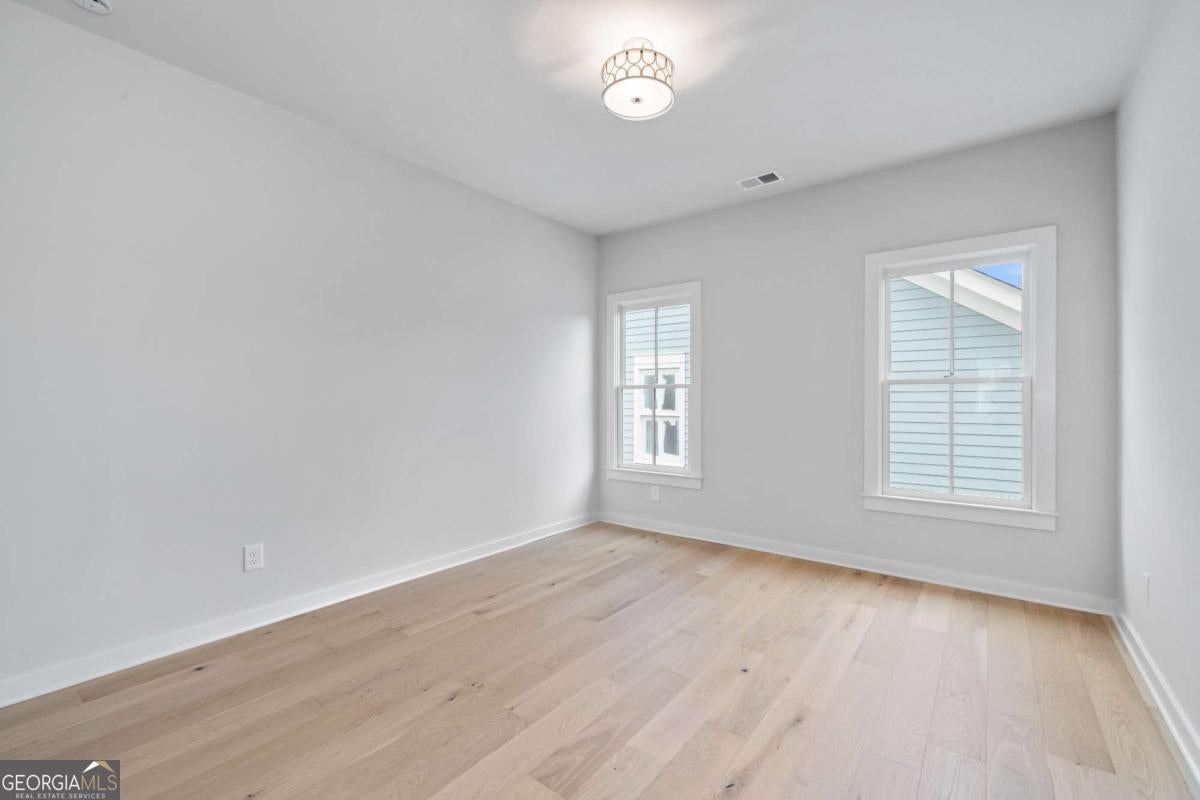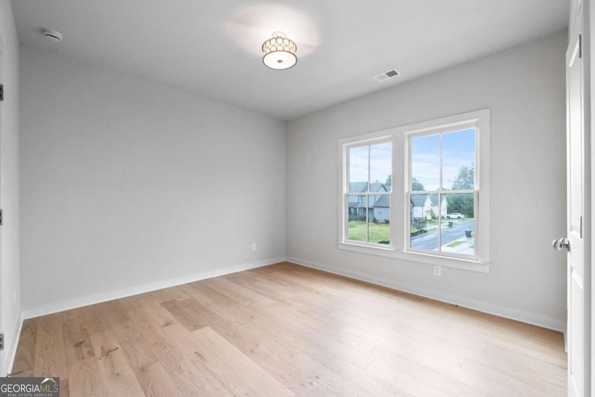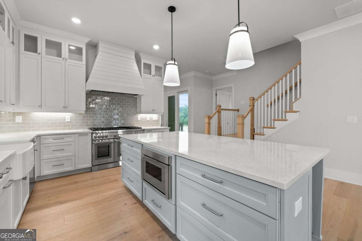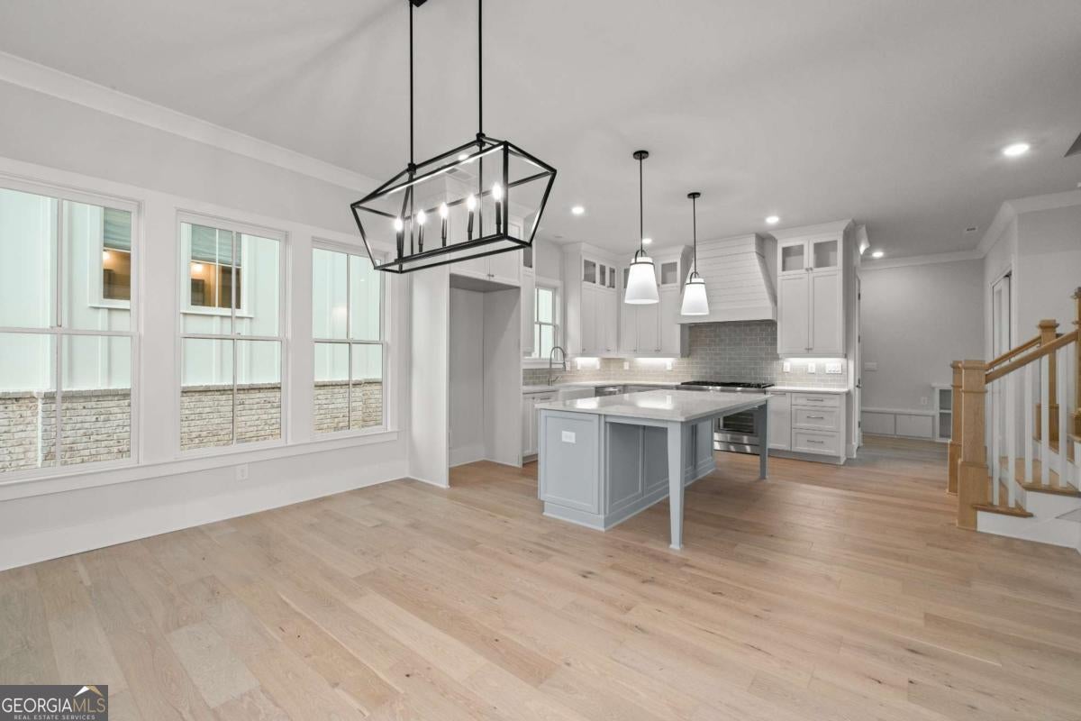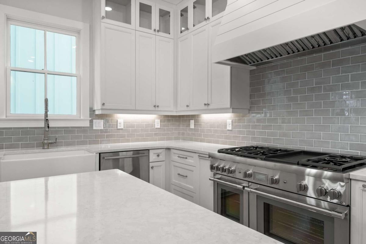 Perfect for the on-the-go homeowner, this beautiful residence in the Village section of Crossroads offers a true lock-and-leave lifestyle. With HOA-maintained grounds plus sewer included in the monthly fees, you can enjoy more time living and less time on upkeep. The main level features a primary suite, private office and laundry room, making this an ideal layout for comfortable one-level living. Step inside to discover designer touches throughout, including cedar-wrapped beams in both the family room and primary suite. The chef's kitchen is a showstopper with custom cabinetry to the ceiling, quartz countertops, a farmhouse sink, and a professional-grade 48" Thermador gas range-featuring six high-output burners, a griddle, and double ovens for flawless cooking and entertaining. A walk-in pantry keeps everything organized and within reach. The family room invites relaxation with a brick-surround fireplace, cedar mantle, and tongue-and-groove shiplap walls. Just off the kitchen, a covered deck overlooks the community greenspace, creating the perfect setting for grilling or unwinding outdoors. Upstairs, a versatile flex space serves as an ideal guest retreat or media room. Bedroom three offers a private en suite, while bedrooms two and four share a convenient Jack and Jill bath. Ample attic storage provides additional functionality. Enjoy mornings or evenings on your covered back porch overlooking the community greenspace. Blending style, comfort, and ease of living, this home delivers a refined retreat in a charming community setting. Enjoy walkable access to dining, shopping and services, plus the benefit of award-winning schools-all in one of Milton's most desirable locations.