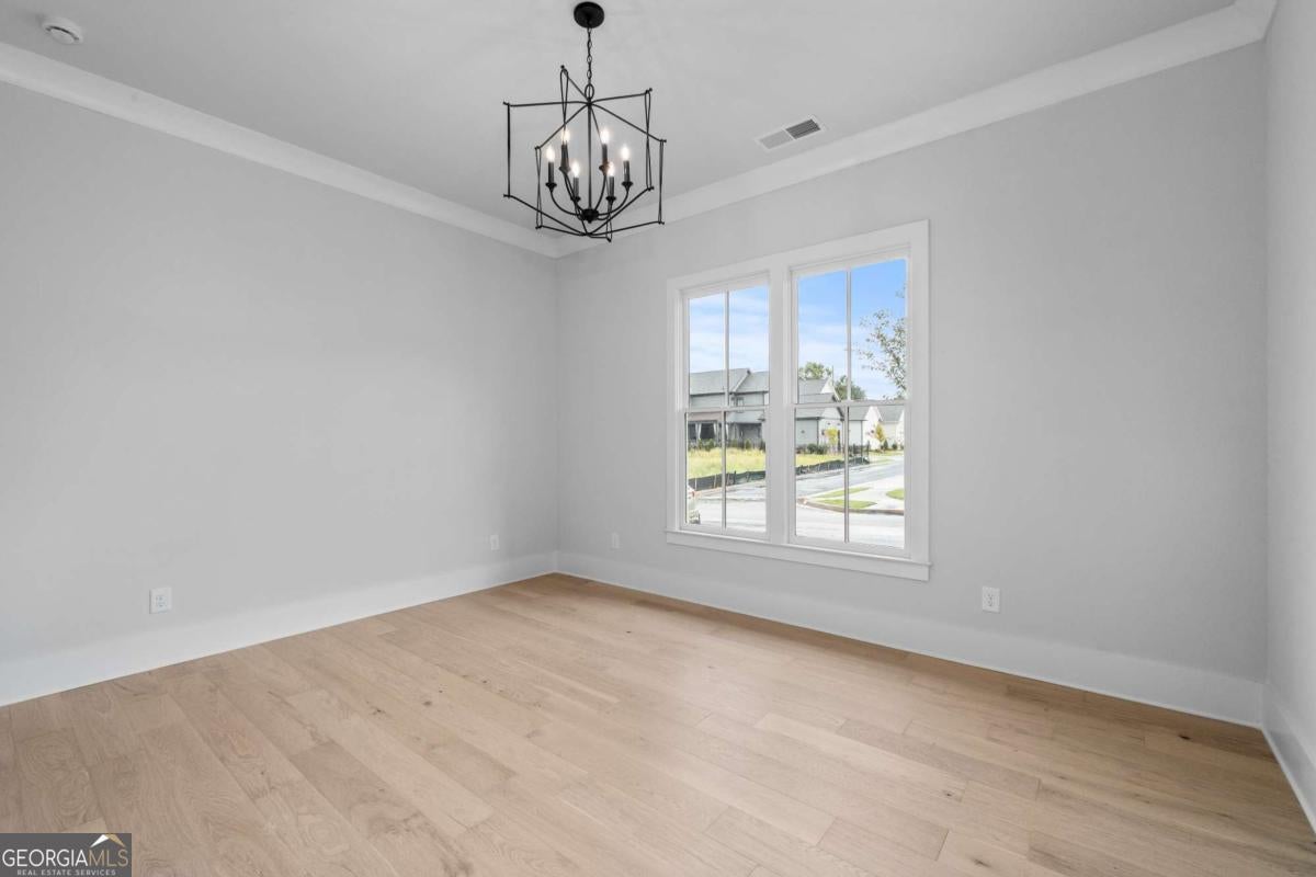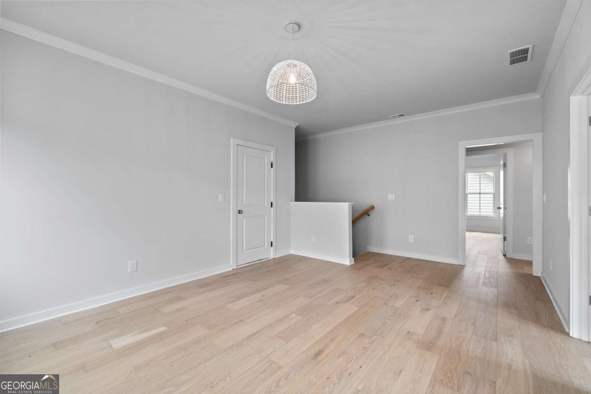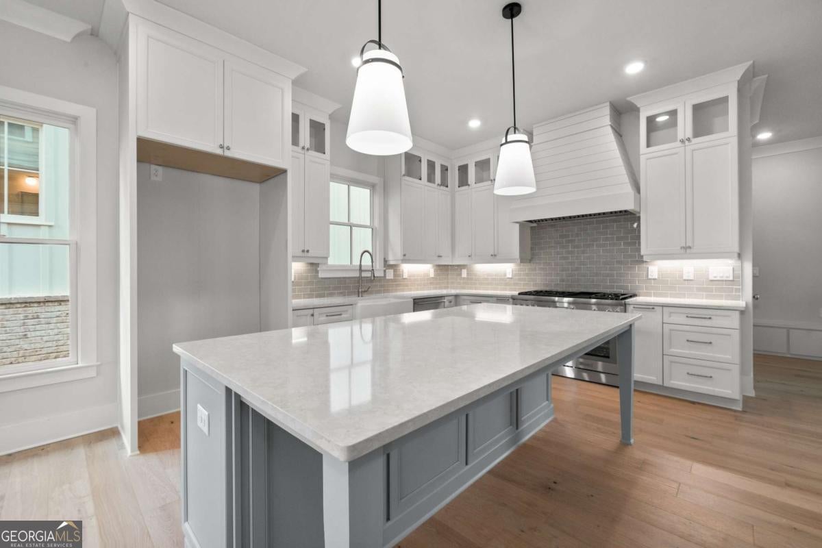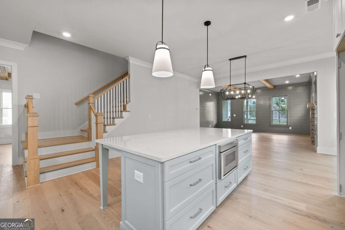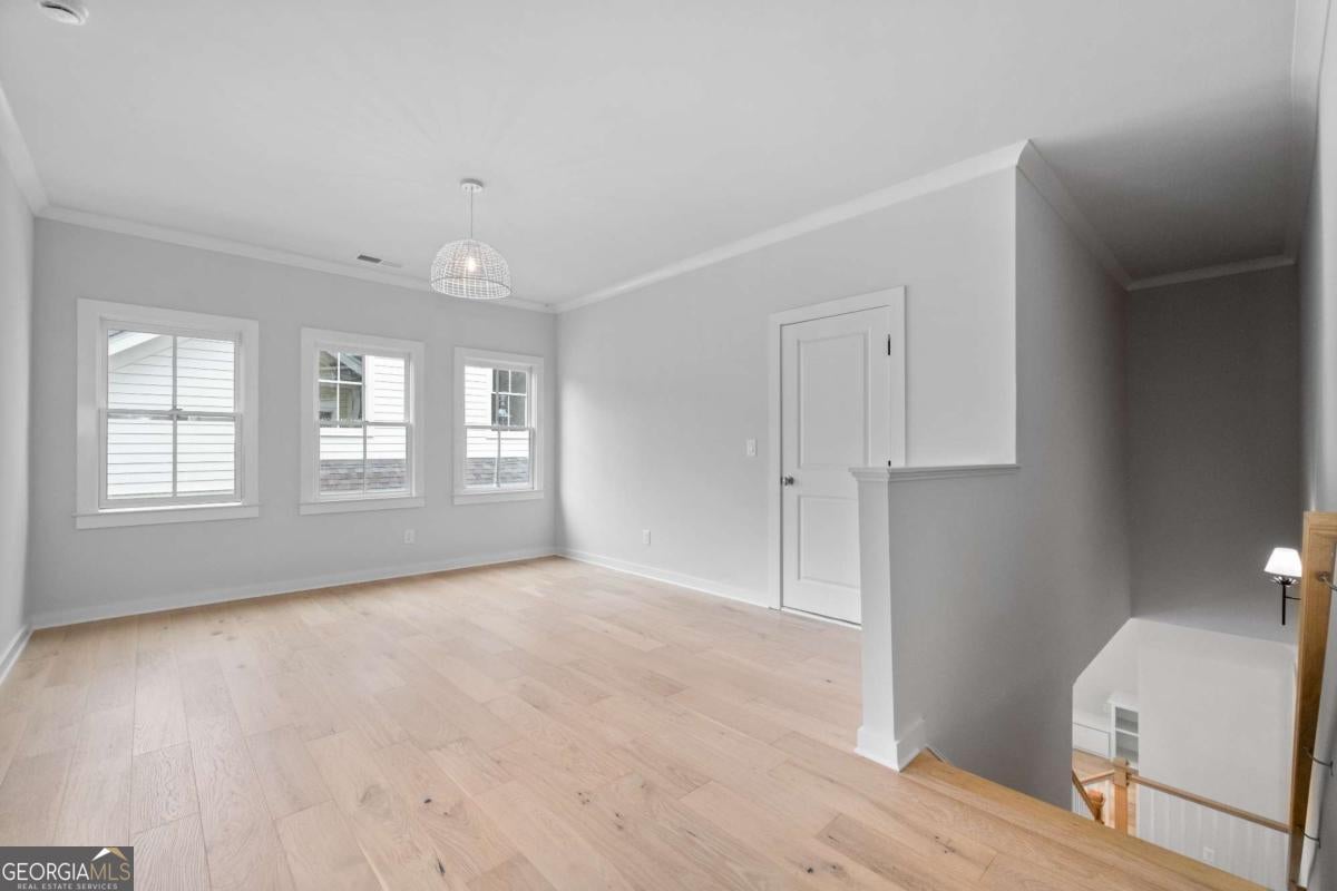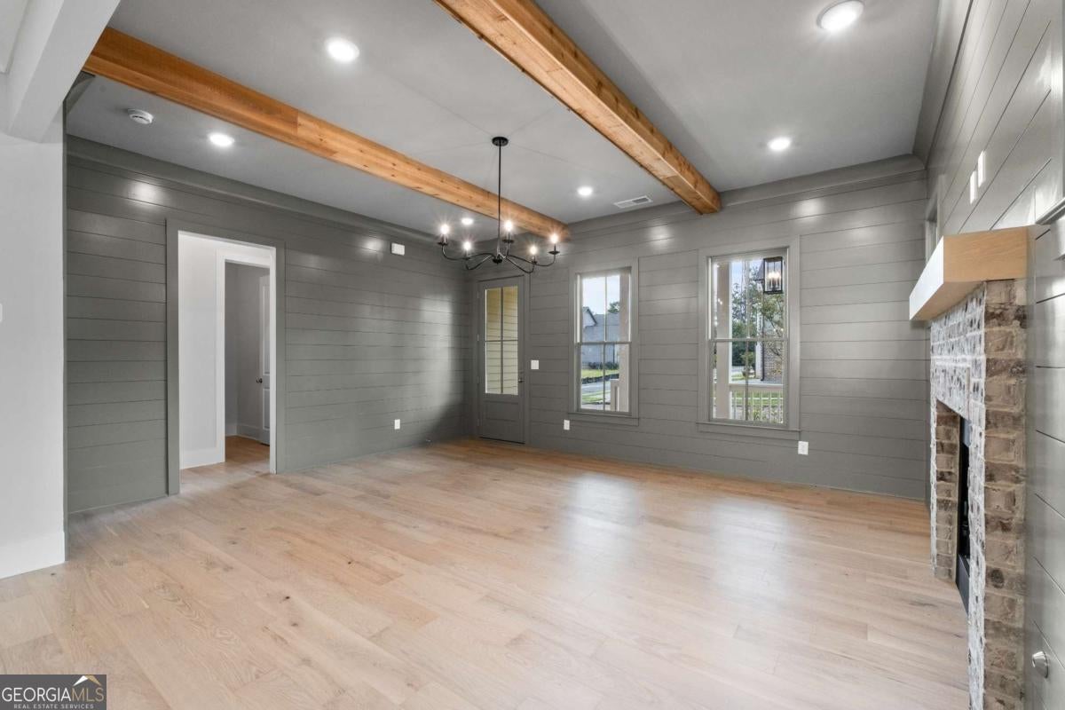 Perfect for the on-the-go homeowner, this beautiful residence in the Village section of Crossroads offers a true lock-and-leave lifestyle. With HOA-maintained grounds plus sewer included in the monthly fees, you can enjoy more time living and less time on upkeep. The main level features a primary suite, private office and laundry room, making this an ideal layout for comfortable one-level living. Step inside to discover designer touches throughout, including cedar-wrapped beams in both the family room and primary suite. The chef's kitchen is a showstopper with custom cabinetry to the ceiling, quartz countertops, a farmhouse sink, and a professional-grade 48" Thermador gas range-featuring six high-output burners, a griddle, and double ovens for flawless cooking and entertaining. A walk-in pantry keeps everything organized and within reach. The family room invites relaxation with a brick-surround fireplace, cedar mantle, and tongue-and-groove shiplap walls. Just off the kitchen, a covered deck overlooks the community greenspace, creating the perfect setting for grilling or unwinding outdoors. Upstairs, a versatile flex space serves as an ideal guest retreat or media room. Bedroom three offers a private en suite, while bedrooms two and four share a convenient Jack and Jill bath. Ample attic storage provides additional functionality. Enjoy mornings or evenings on your covered back porch overlooking the community greenspace. Blending style, comfort, and ease of living, this home delivers a refined retreat in a charming community setting. Enjoy walkable access to dining, shopping and services, plus the benefit of award-winning schools-all in one of Milton's most desirable locations.