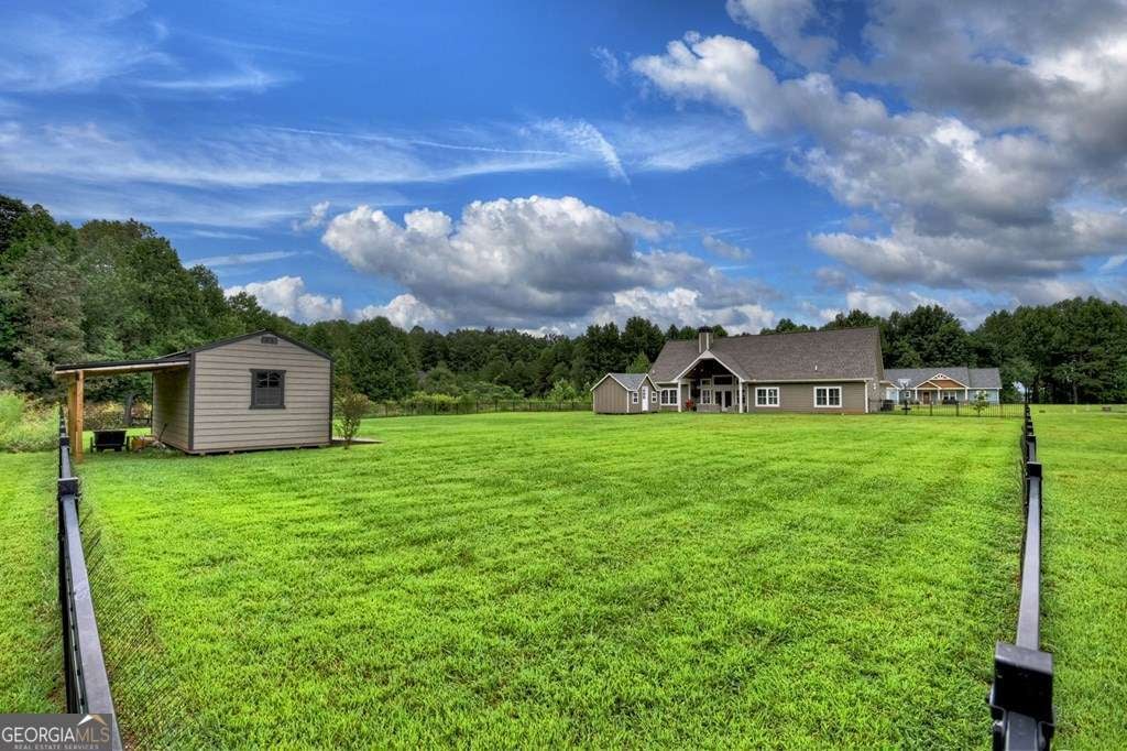 Cozy 3BR/2BA Ranch-Style Retreat near Blue Ridge & Blairsville. Welcome to this bright and spacious one-level home, ideally located just 2 miles from Hwy 76 for quick access to both Blue Ridge and Blairsville. Tucked away in a quiet subdivision off Dean Gap Road, you'll enjoy peace and privacy surrounded by newer homes and picturesque pasture land - all with no road noise. Step inside to find a thoughtfully designed interior featuring luxury vinyl floors, vaulted ceilings, plantation shutters, and abundant natural light. The living area showcases a woodburning fireplace for cozy evenings, while the kitchen and baths boast custom cabinetry, double vanities, and a beautifully tiled shower. The fenced backyard is perfect for pets, play, and gatherings. Two sheds provide endless possibilities: the larger shed is fully insulated, drywalled, and equipped with 30amp service - ideal for a home gym, office, or homeschool classroom. With ample storage, modern finishes, and inviting living spaces, this home blends comfort, style, and convenience in one perfect package.
