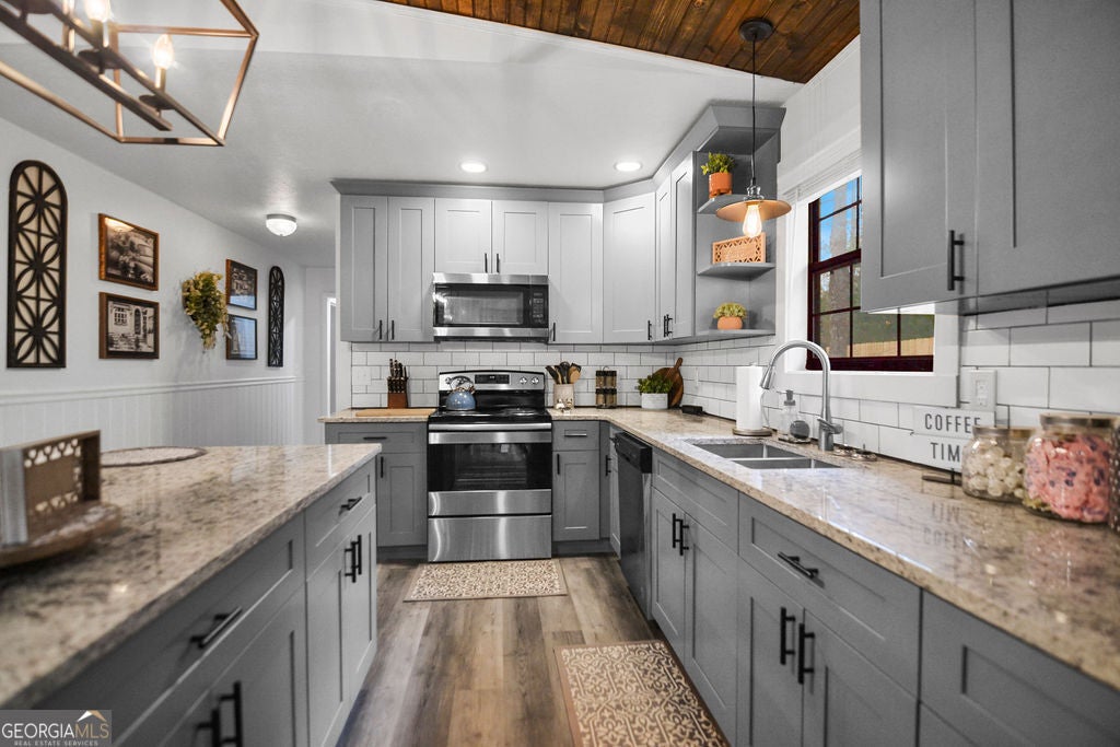 Gorgeous Luxury home located only 2 miles from downtown Blue Ridge and 1 mile from Lake Blue Ridge and Marina. Boasting 5 bedrooms and 4 full bathrooms, this newly renovated home has it all! Whip up cost-saving breakfasts, lunches, and dinners in 2 well-equipped, chef ready full kitchens. Dine indoors at the large table for eight or outdoors on your furnished deck, complete with a gas grill. Gather together in the cozy living area, warmed by a gas fireplace. Enjoy shooting some pool, foosball, shuffleboard or watch a movie on the large 75" smart tv in your own game room equipped with a jukebox for your listening enjoyment or spoil yourself outside in your very own six-person hot tub. Want to enjoy nature, build a fire and soak it in with an amazing fire pit with wood provided. With plenty of parking and the marina nearby bring your boat and enjoy lake Blue Ridge and all it has to offer. Amazing location for your forever home or an excellent income producing asset! Schedule your showing today!