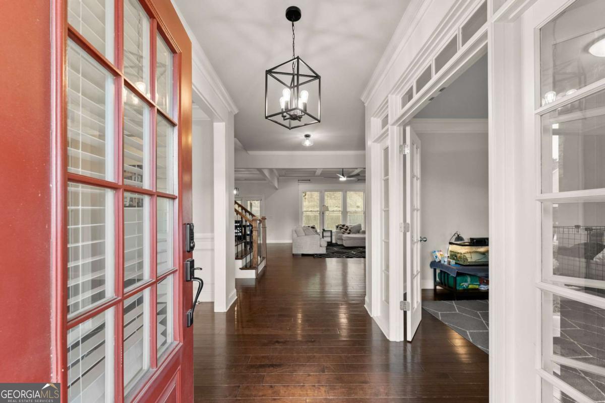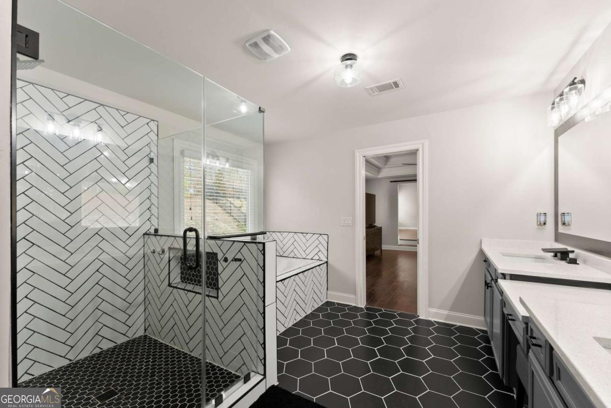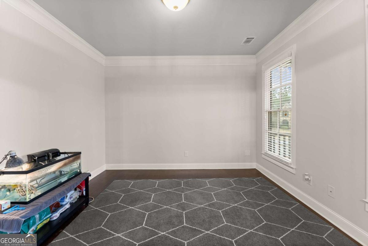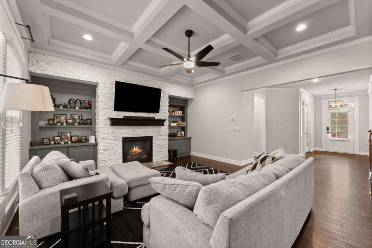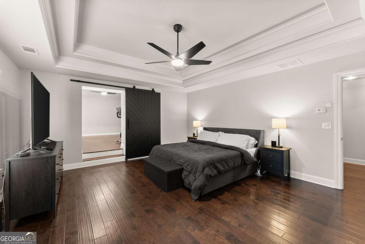 This stunning home is situated in the highly sought-after Sterling on the Lake neighborhood! Upon entry, you'll be welcomed into an open floor plan featuring gleaming hardwood floors throughout. French doors open into a bright study or office space, while across the hall, a spacious dining room accommodates up to 12 guests. Down the hallway, you'll discover a custom mudroom, along with a full bedroom and bath-ideal for guests. The chef-inspired kitchen boasts a large central island and premium upgrades, seamlessly connecting to the inviting living room, making it perfect for entertaining. The living room features elegant coffered ceilings, a cozy fireplace, and built-in bookshelves. Upstairs, the oversized master suite offers tray ceilings, a spacious double vanity, a makeup area, and a luxurious soaking tub. The master bath also includes a large open shower with dual showerhead's', and the home's tankless water heater ensures an endless supply of hot water. Adjacent to the master bedroom, a private living area complete with a wet bar, wine fridge, and drink cooler offers the perfect retreat. The upper level also includes three additional bedrooms, each with walk-in closets, and two full baths. Step outside to enjoy a screened-in porch and a staircase leading to a charming fire pit area, perfect for cozy evenings. you will also be able to enjoy plenty of parking with a 3 car garage, parking pad and large driveway. This home is located in a neighborhood brimming with amenities, including a clubhouse with a lodge, a theater, 24-hour gym, four pools, tennis and pickleball courts, walking and nature trails, playgrounds, a lake with a fishing dock, and a full-time activities director to ensure there's always something to enjoy throughout the year! Owner is a licensed real estate agent.