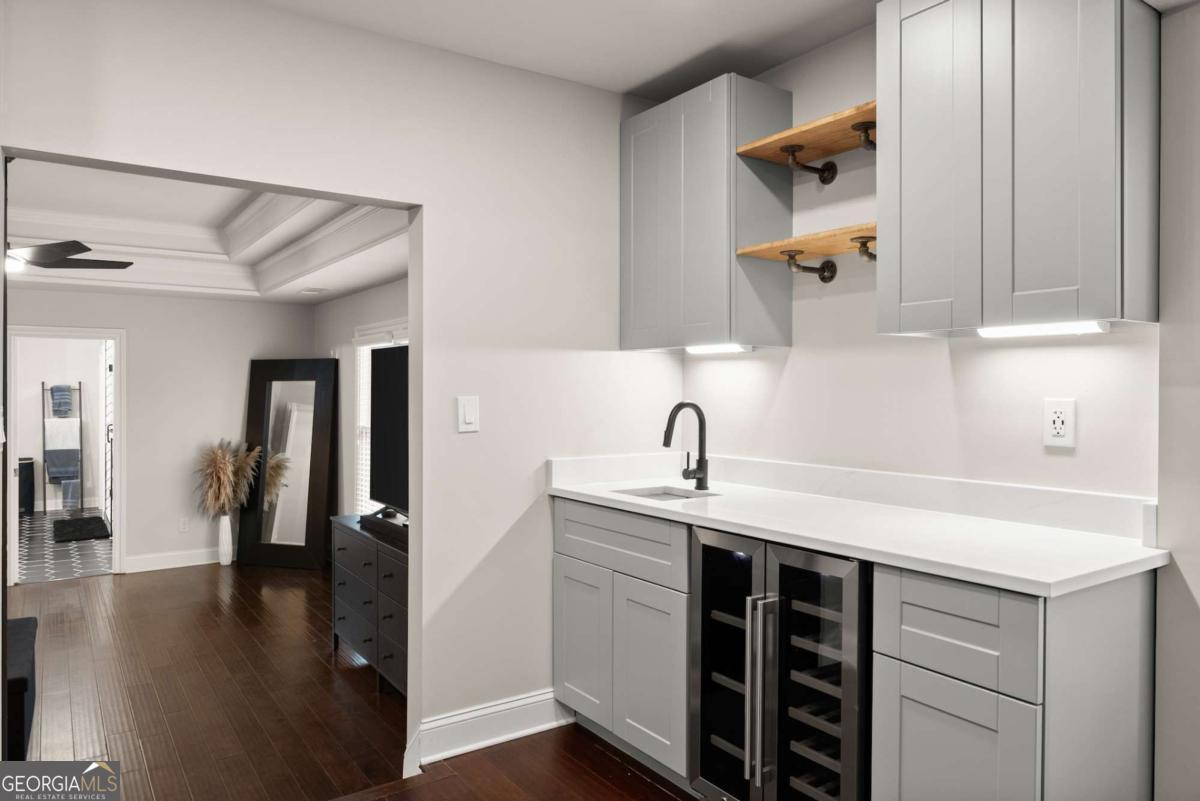 - Interior FeaturesBookcases, High Ceilings, Pulldown Attic Stairs, Walk-In Closet(s), Wet Bar