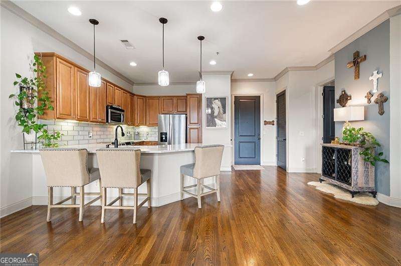 Woodstock Downtown Money Magazine voted TOP 50th Town to Live!!! Walkable to the best Restaurants, City Parks, Greenprint Trials, Boutiques, Shopping, Farmers Market, Elm Streets Art, New Amphitheater and much more. Stunning 1 Bedroom, 1 Full Bath (ON THE 4TH FLOOR -NO ONE ABOVE YOU) - BEATUIFUL Views off you oversized balcony - Open Floorplan- Master Bath with Soaking Tub and Shower. Gated Covered Parking Spot!!! THIS ONE WILL NOT LAST!!!!