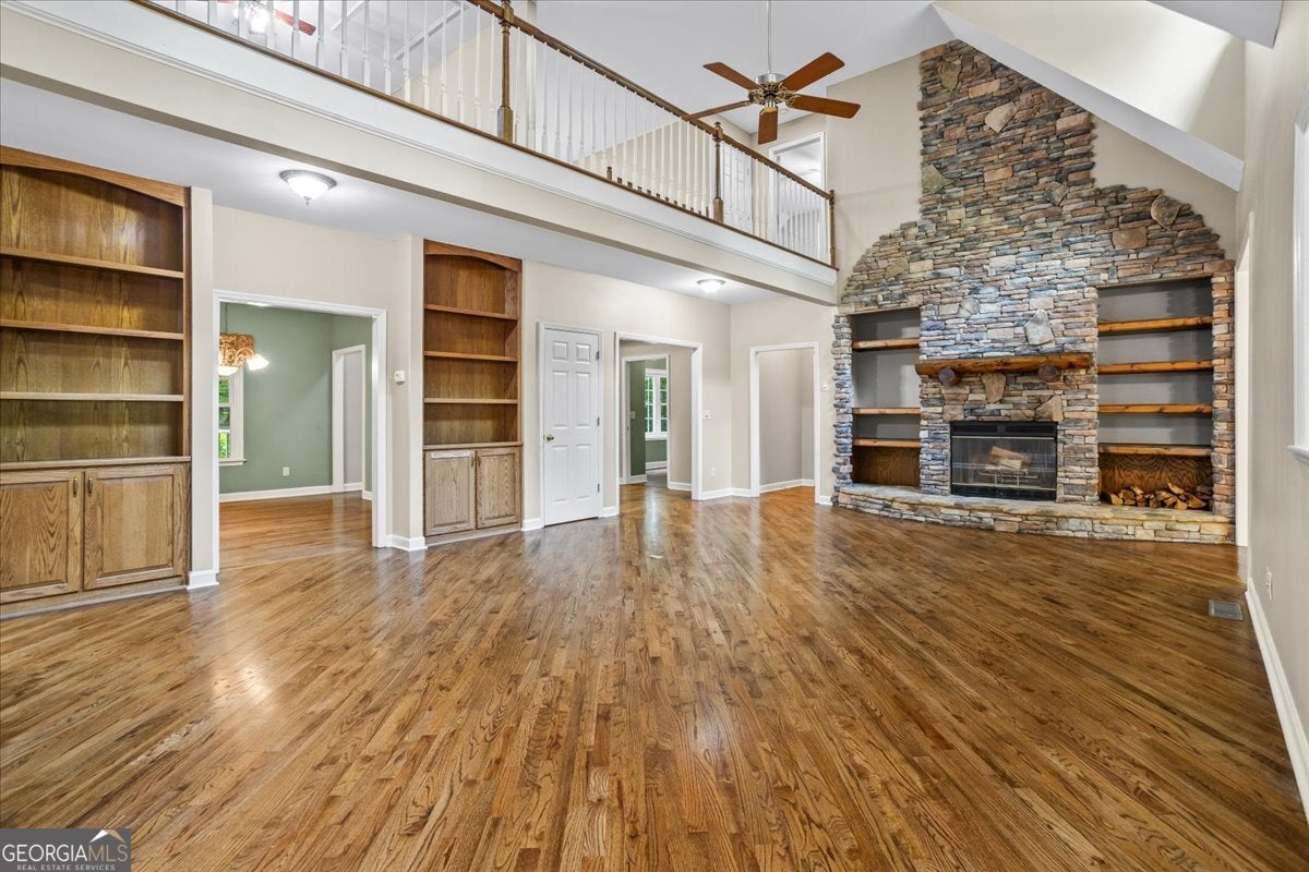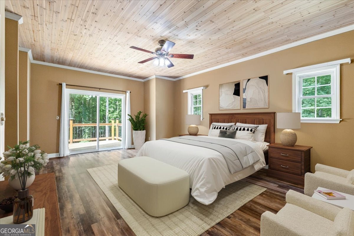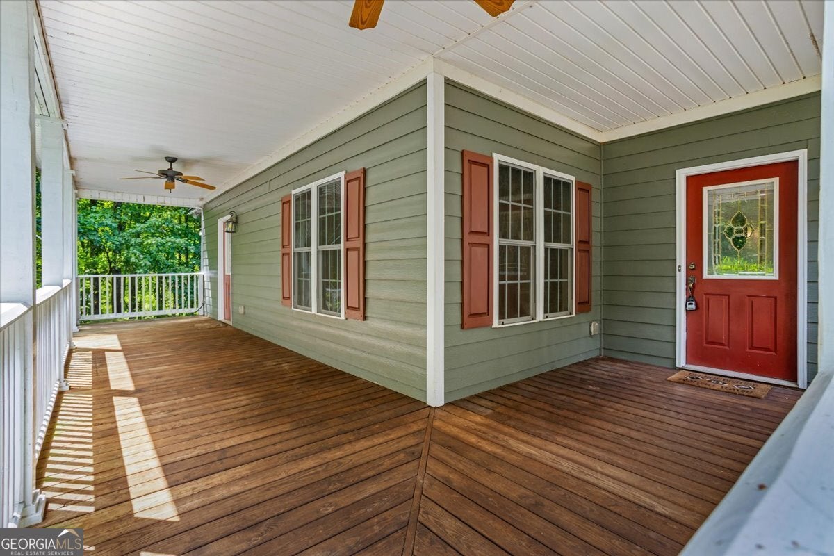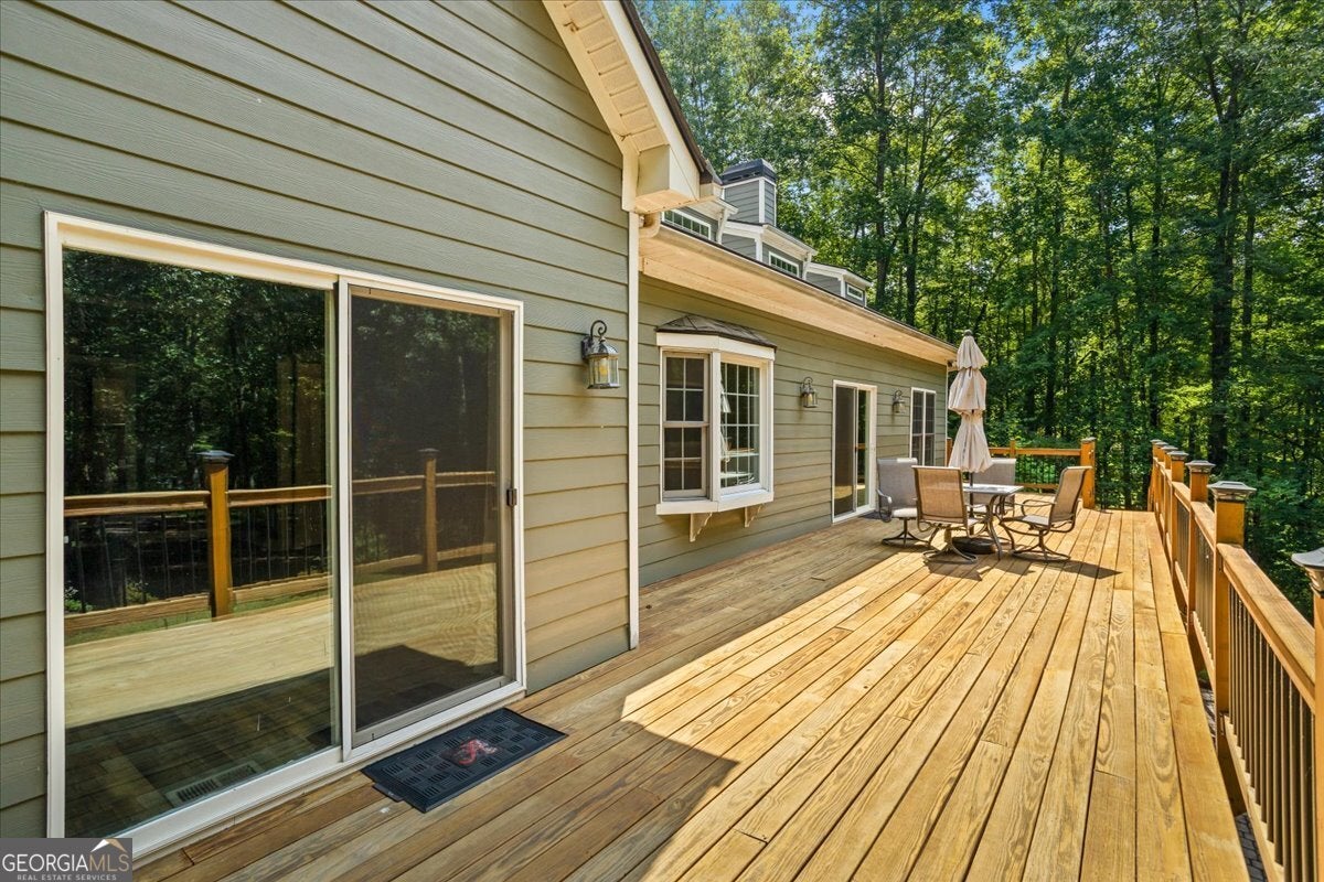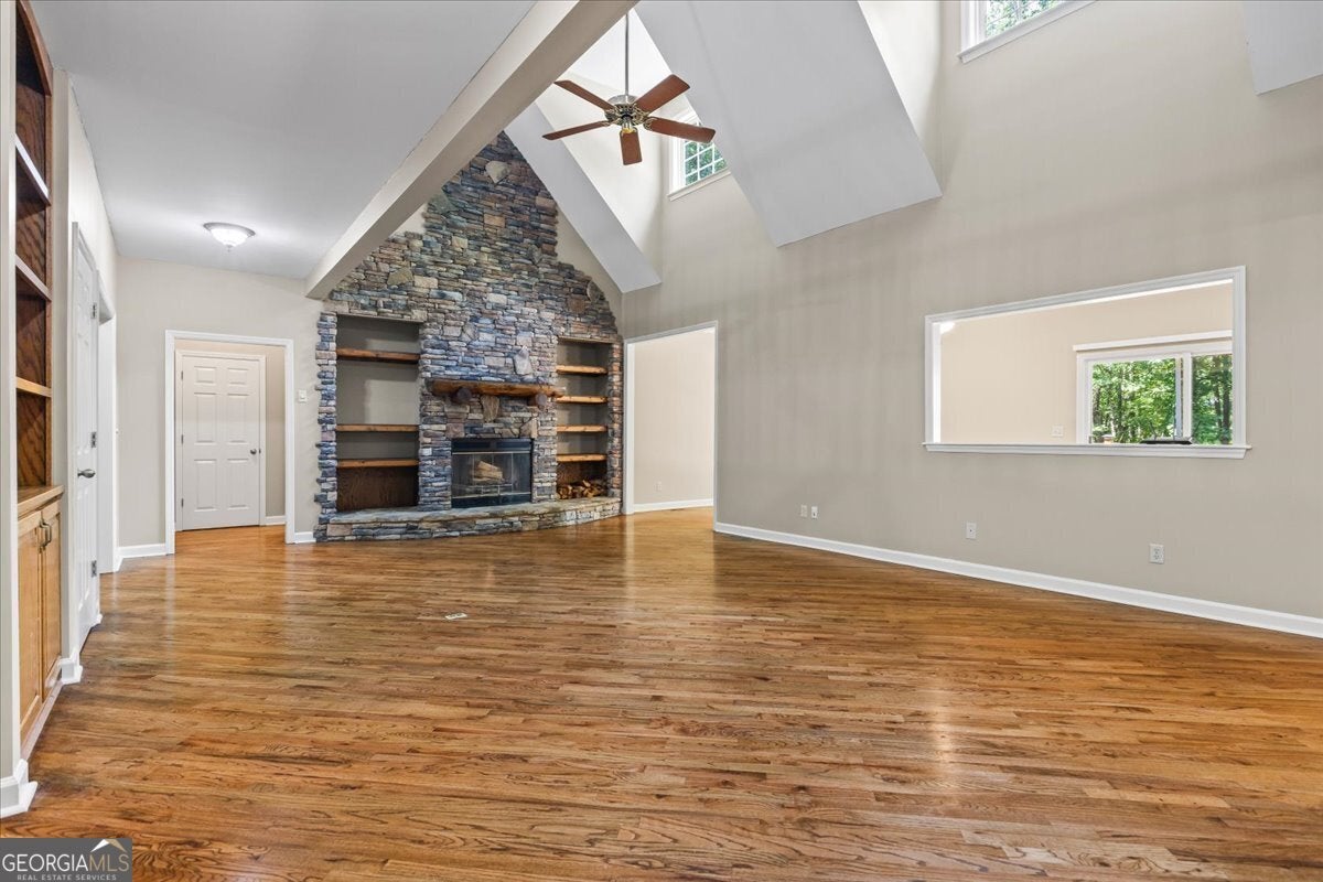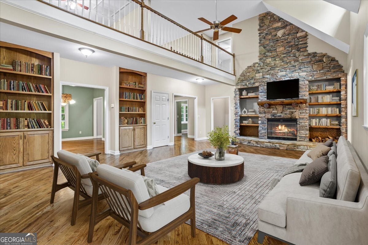 This retreat is waiting for you to call it home! Nestled on 6.15 private acres on Lake Horton, this property offers the perfect balance of peaceful seclusion and everyday convenience. From the gated driveway to walking path that leads you to the lake, every detail has been designed for comfort, function, and relaxation. Enter the home from the covered front porch, which welcomes you into the foyer or directly into the kitchen. The main level features a formal dining room, a spacious great room with a stone-front fireplace and custom built-in bookshelves, and a sunroom that brings in beautiful natural light. The kitchen includes a breakfast area and connects to a well-equipped laundry room with pantry shelving, cabinets, and a wash sink. The primary suite is also located on the main floor and offers access to the back deck. The primary suite bathroom includes a double vanity, separate soaking tub, walk-in shower, and walk-in closet. Also on the main level is an office/study, a guest bedroom, and a full bathroom. Upstairs, you'll find a loft area that overlooks the main level, along with two spare bedrooms and two full bathrooms-perfect for guests. That's right, each bedroom has its own bathroom! The full, finished basement provides even more living space with a large recreation room, a bonus room with a full bathroom, a utility room, and unfinished space ideal for a workshop. There is also a separate garage/storage space for additional flexibility. Outside, enjoy the expansive back deck overlooking the private backyard, along with a covered and uncovered patio below-perfect for entertaining, grilling, or simply relaxing. A cleared area further into the backyard with a firepit near the walking path that leads directly to the lake with 450 feet of lake frontage. Additional features include: two-car detached garage and covered walkway to the home - concrete siding on both the house and detached garage - propane-powered automatic back-up power generator - no HOA - quiet, tucked-away setting yet close to many conveniences. This Lake Horton retreat offers unmatched space, privacy, and charm-whether you're seeking a full-time residence or a private getaway. Schedule your tour today and experience all that this property has to offer!