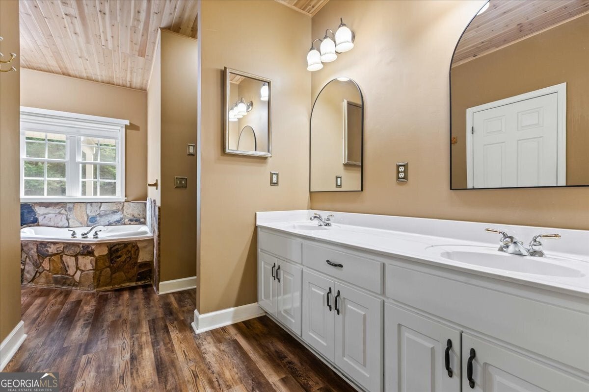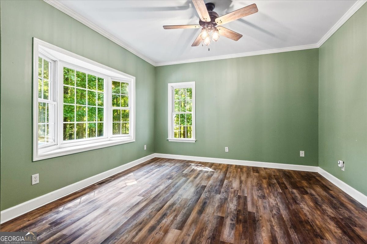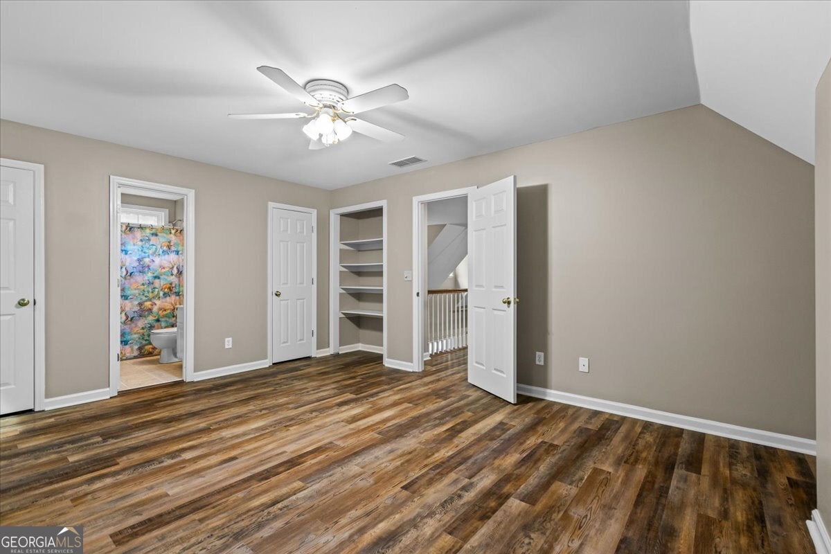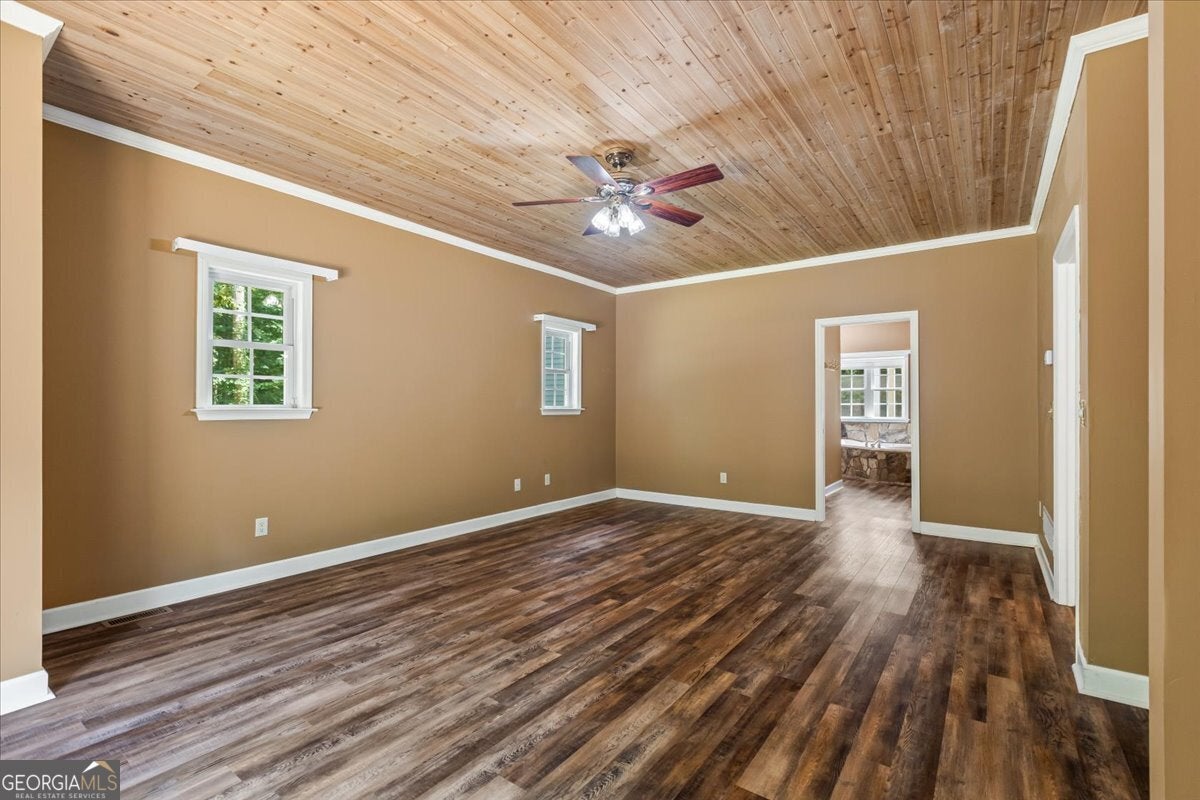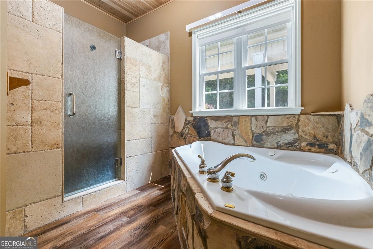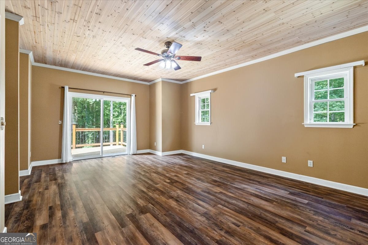 This retreat is waiting for you to call it home! Nestled on 6.15 private acres on Lake Horton, this property offers the perfect balance of peaceful seclusion and everyday convenience. From the gated driveway to walking path that leads you to the lake, every detail has been designed for comfort, function, and relaxation. Enter the home from the covered front porch, which welcomes you into the foyer or directly into the kitchen. The main level features a formal dining room, a spacious great room with a stone-front fireplace and custom built-in bookshelves, and a sunroom that brings in beautiful natural light. The kitchen includes a breakfast area and connects to a well-equipped laundry room with pantry shelving, cabinets, and a wash sink. The primary suite is also located on the main floor and offers access to the back deck. The primary suite bathroom includes a double vanity, separate soaking tub, walk-in shower, and walk-in closet. Also on the main level is an office/study, a guest bedroom, and a full bathroom. Upstairs, you'll find a loft area that overlooks the main level, along with two spare bedrooms and two full bathrooms-perfect for guests. That's right, each bedroom has its own bathroom! The full, finished basement provides even more living space with a large recreation room, a bonus room with a full bathroom, a utility room, and unfinished space ideal for a workshop. There is also a separate garage/storage space for additional flexibility. Outside, enjoy the expansive back deck overlooking the private backyard, along with a covered and uncovered patio below-perfect for entertaining, grilling, or simply relaxing. A cleared area further into the backyard with a firepit near the walking path that leads directly to the lake with 450 feet of lake frontage. Additional features include: two-car detached garage and covered walkway to the home - concrete siding on both the house and detached garage - propane-powered automatic back-up power generator - no HOA - quiet, tucked-away setting yet close to many conveniences. This Lake Horton retreat offers unmatched space, privacy, and charm-whether you're seeking a full-time residence or a private getaway. Schedule your tour today and experience all that this property has to offer!