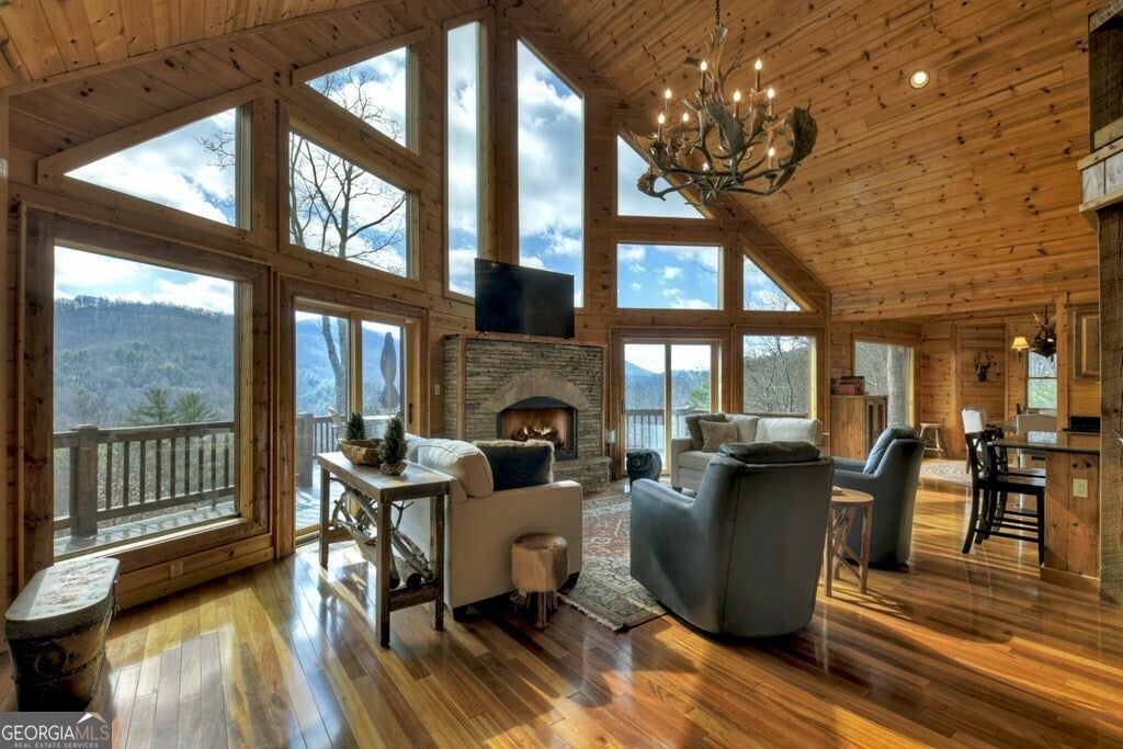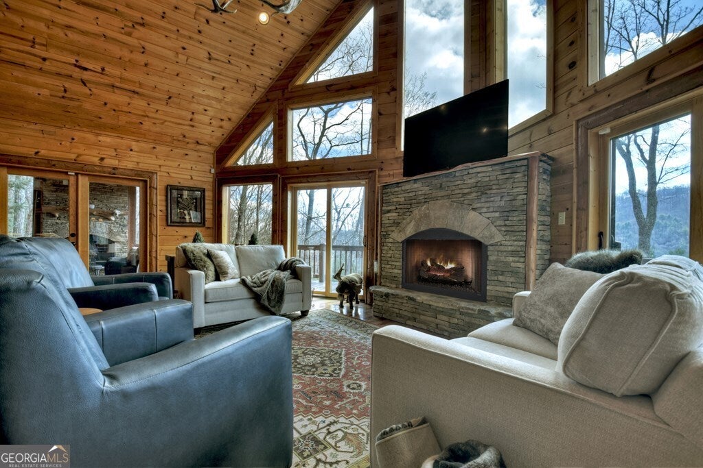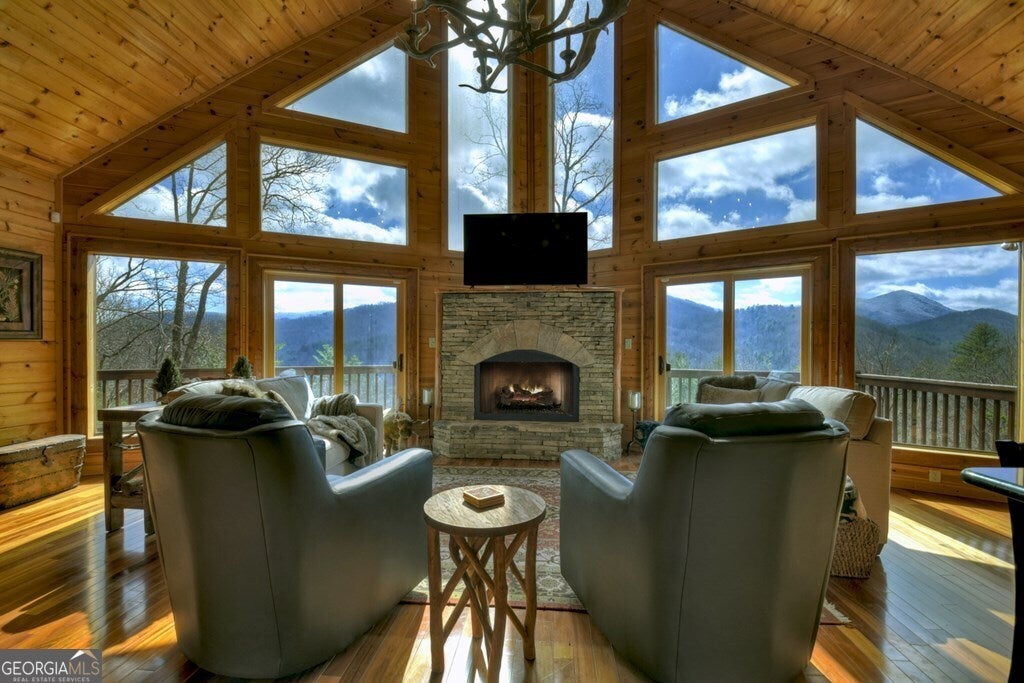 WOW FACTOR RIGHT IN THE HEART OF THE ASKA ADVENTURE AREA!! This immaculately maintained 4 bedroom, 4 bath mountain ESTATE offers convenience to downtown Blue Ridge on all paved roads and underground utilities. The MAIN HOUSE boasts of spacious main-floor living area and wall-of-windows showcasing the year-round panoramic mountain views, gourmet kitchen w/custom cabinetry, separate dining area, rough sewn timber and barn wood accents, custom tiled bathrooms, main level screened in porch w/outdoor fireplace, finished basement w/recreation room and gas-log fireplace. The GUEST HOUSE/2-car garage offers an additional bedroom, full-bath, full kitchen and living area w/stacked stone fireplace, outdoor living space, 2-car oversized garage w/ample driveway parking. Located in a cul-de-sac and just minutes to the Toccoa River, USFS for hiking/mountain biking and Lake Blue Ridge for all outdoor amenities. Whether you are looking for a second home or an investment property with rental potential, this one is ready for you to call your home away from home!