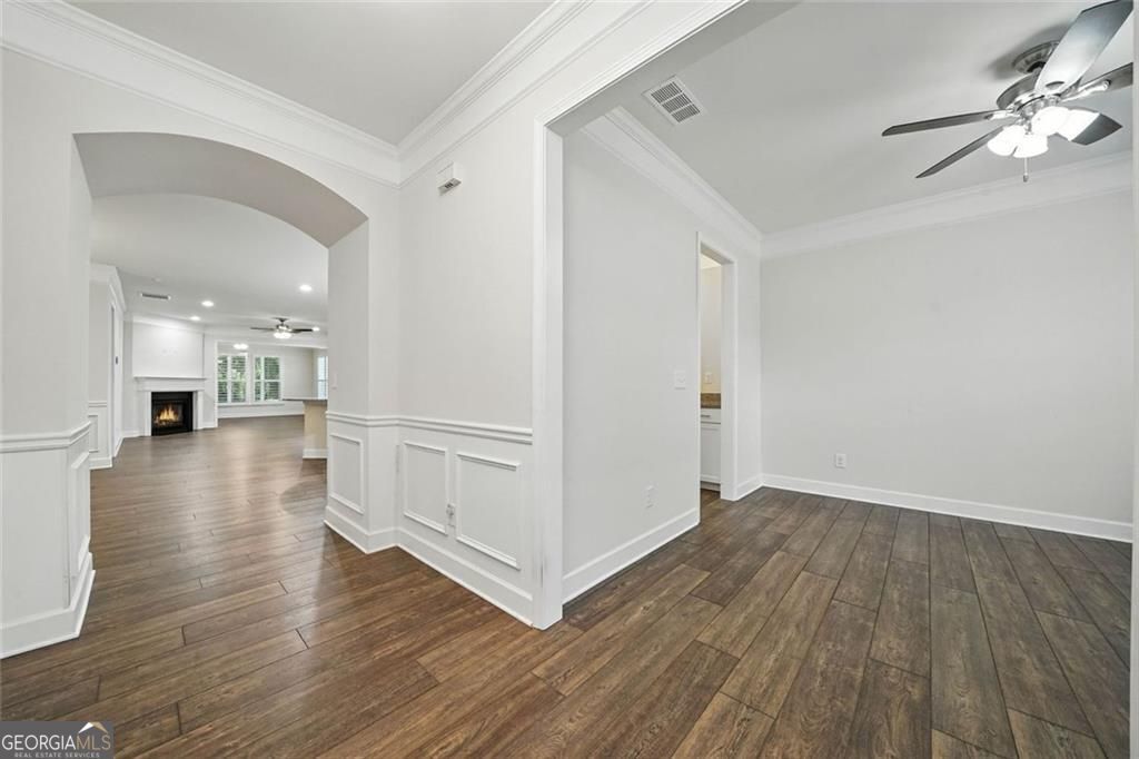 4 Bedrooms, Screened Porch, Upstairs Loft & Guest Suite - Neighborhood's Largest Floorplan, on a Premium Lot Backing to the Park This beautiful home sits on a premium lot, backing directly to the neighborhood park with no homes behind and offering a convenient walk to the mailboxes. Inside, upgraded crown molding runs throughout, adding a touch of elegance to every room. The heart of the home is the open-concept kitchen, anchored by a large center island. It features granite countertops, a farmhouse sink, white shaker cabinets with sleek hardware, and a full suite of stainless steel appliances including a built-in wall oven and gas cooktop with vent hood. Under-cabinet lighting adds warmth and visibility, while the walk-in pantry keeps everything within reach but out of sight. Wide-plank wood-look floors flow throughout the main level, connecting the kitchen to the wainscoted dining area and into the living room, where a gas fireplace and plantation shutters set a relaxed tone. Just off the living area, a screened-in porch offers a private place to unwind without the bugs. The main-level primary bedroom suite has a beautiful garden view and includes an oversized walk-in closet and a bath with double vanities, quartz countertops, and a separate water closet. Two additional bedrooms and a full bathroom complete the main level. Upstairs, a bright loft provides flexible space for a media room, office, or play area, and it's paired with a private fourth bedroom and full bathroom, perfect for teens, guests, or multi-generational living. Additional conveniences include a laundry room with storage cabinets and folding counter, plus a custom drop zone off the garage entry to keep clutter tucked away. The oversized two-car garage features an epoxy-coated floor, wall shelving, and a utility sink, ideal for weekend projects or extra storage. Low-maintenance landscaping and a level yard make upkeep simple, while the premium lot and spacious floorplan make this home truly stand out.