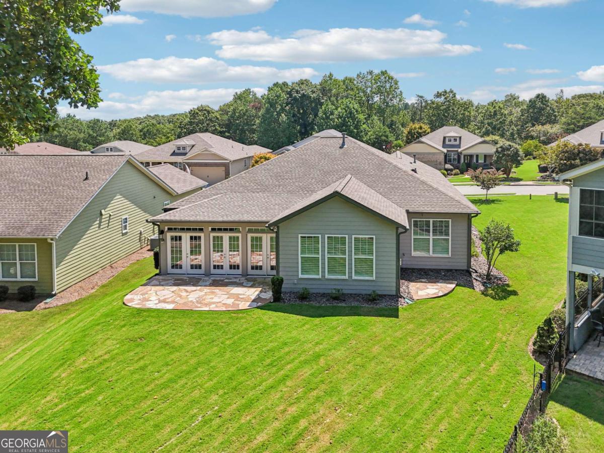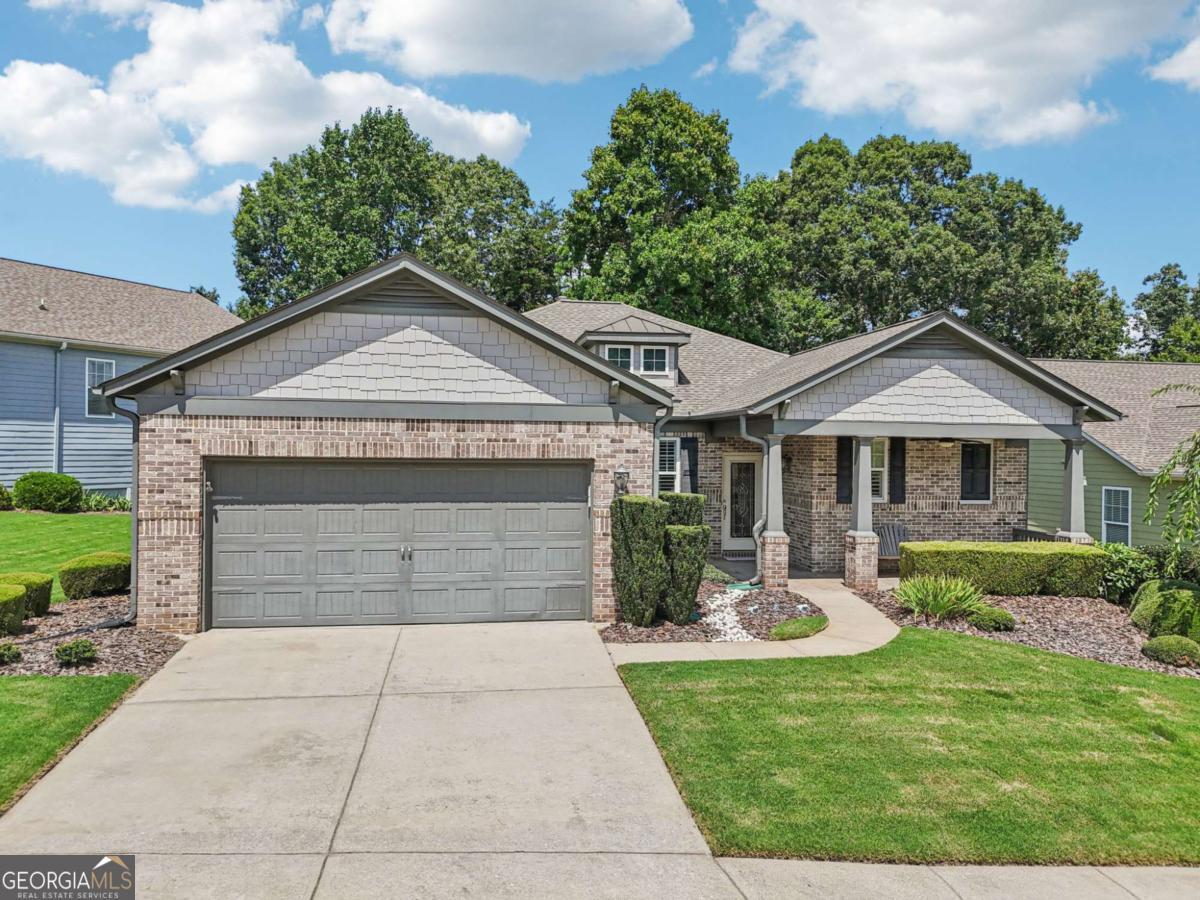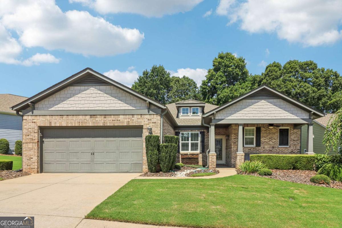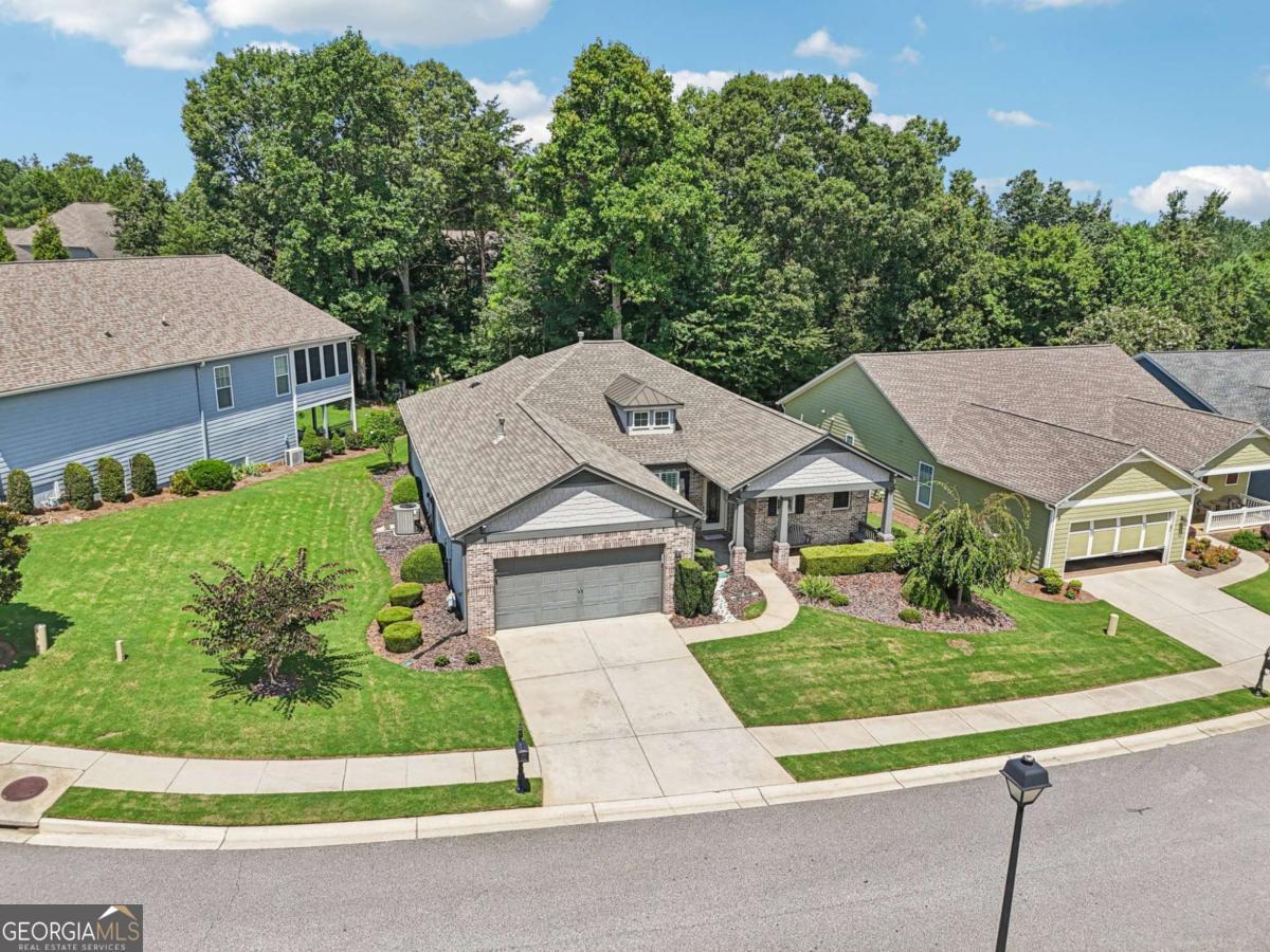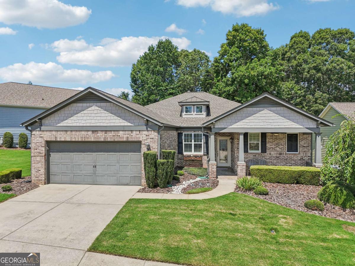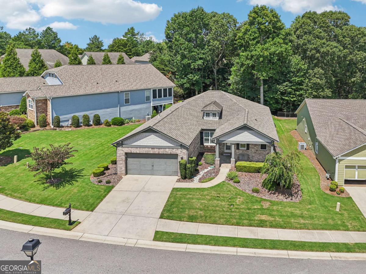 Listed by Mano Sells Homes: Nestled in the sought-after 55+ community of Cresswind at Lake Lanier, this Dahlia floorplan craftsman-style home blends charm, comfort, and a vibrant lifestyle. Meticulous landscaping and a welcoming front porch-complete with a remote-controlled ceiling fan-set the tone, offering a beautiful view of the neighborhood. Inside, the thoughtfully designed layout makes every corner feel inviting and functional. The huge living room serves as the heart of the home, anchored by a natural gas fireplace and offering plenty of space for an array of furniture. The Tuscany-style kitchen is a chef's delight, featuring a built-in wine rack, coffee station, pantry, and a suite of appliances including a GE wall convection oven (2007) paired with an additional oven, a LG wall microwave (2011), and a GE dishwasher (2007) conveniently set in the peninsula. A separate dining room, enhanced by a built-in wall display, comfortably seats twelve, making it ideal for both intimate gatherings and holiday celebrations. In the front of the home is an office with French doors. The owner's suite is a serene retreat with an expansive layout and two walk-in California closets. The spa-inspired bathroom features dual vanities with customized mirrors, a linen closet, a sunken soaking tub, and a luxurious walk-in shower with a built-in seat and four soothing sprays. Additional bedrooms provide versatility and comfort: a large second bedroom includes a portable corner fireplace and nearby full bath, while the third bedroom has its own closet and easy access to the same hallway bath. At the front of the home, a flexible space with French doors serves perfectly as an office or a fourth bedroom. The enclosed brick sunroom is a year-round favorite, showcasing a stamped concrete floor, three sets of French doors, two ceiling fans, electric shades, and a dedicated Daikin heat pump system (2021) providing AC, heat, and fan options. From here, enjoy peaceful views of the expansive, beautifully landscaped backyard and lush wooded backdrop, enhanced in 2023 with a full lawn and garden refresh. Practicality meets ease in the laundry room, equipped with a 2021 stainless steel front-load washer and dryer, four oak cabinets, a utility sink, and additional cabinetry and drawer space. The double-car garage includes two overhead storage racks and wall shelving, providing ample organization. Throughout the home, plantation shutters, remote-controlled ceiling fans with lights (in every room except the office), and even a fan on the front porch add to the comfort and thoughtful details. This home has been meticulously maintained with significant updates for peace of mind: a Lennox HVAC system, roof replaced in 2020, energy-efficient windows and thermostat, carbon monoxide detectors, and an EMC alarm system (currently disconnected). The HVAC and heat pump systems are serviced twice yearly, while monthly pest control and a termite bond ensure continued protection. In recent years, both interior and exterior were professionally painted (2023), carpets deep cleaned (2023), ducts, vents, dryer, and chimney serviced (2023), and the porch, patio, sidewalk, house, and driveway professionally power washed (2024). Beyond the home, the award-winning lifestyle at Cresswind at Lake Lanier elevates everyday living. Begin mornings with a workout in the fitness center or a paddle across the lake, spend afternoons playing tennis, pickleball, or enjoying indoor and outdoor pools, and close the day with friends over billiards, fishing, or one of 100+ clubs. Every day offers new opportunities and a welcoming sense of community. A beautifully maintained home paired with a neighborhood designed for connection and recreation-this is where comfort meets possibility.