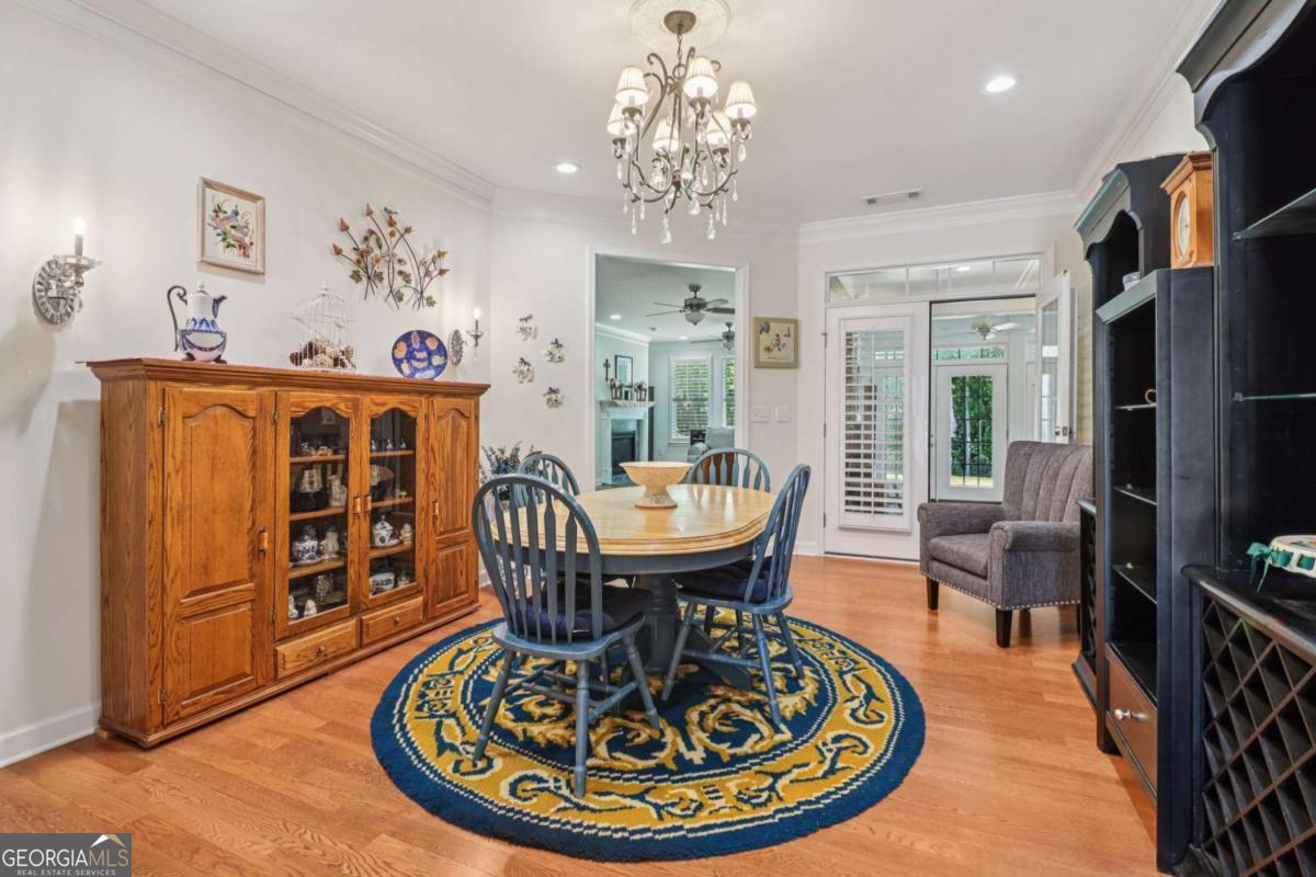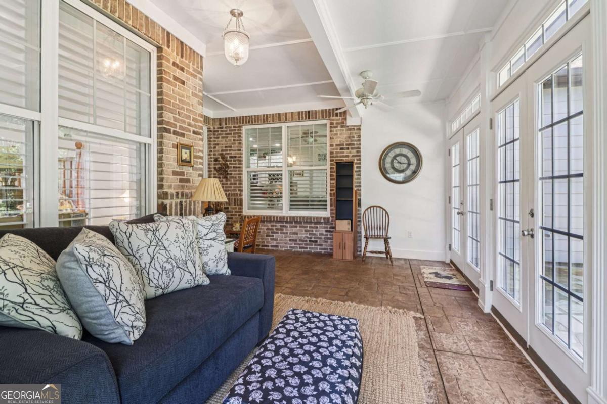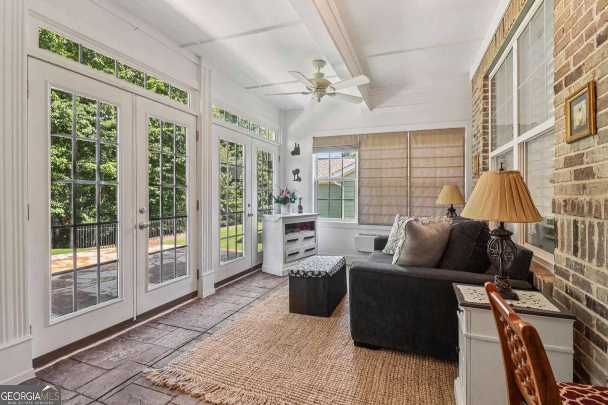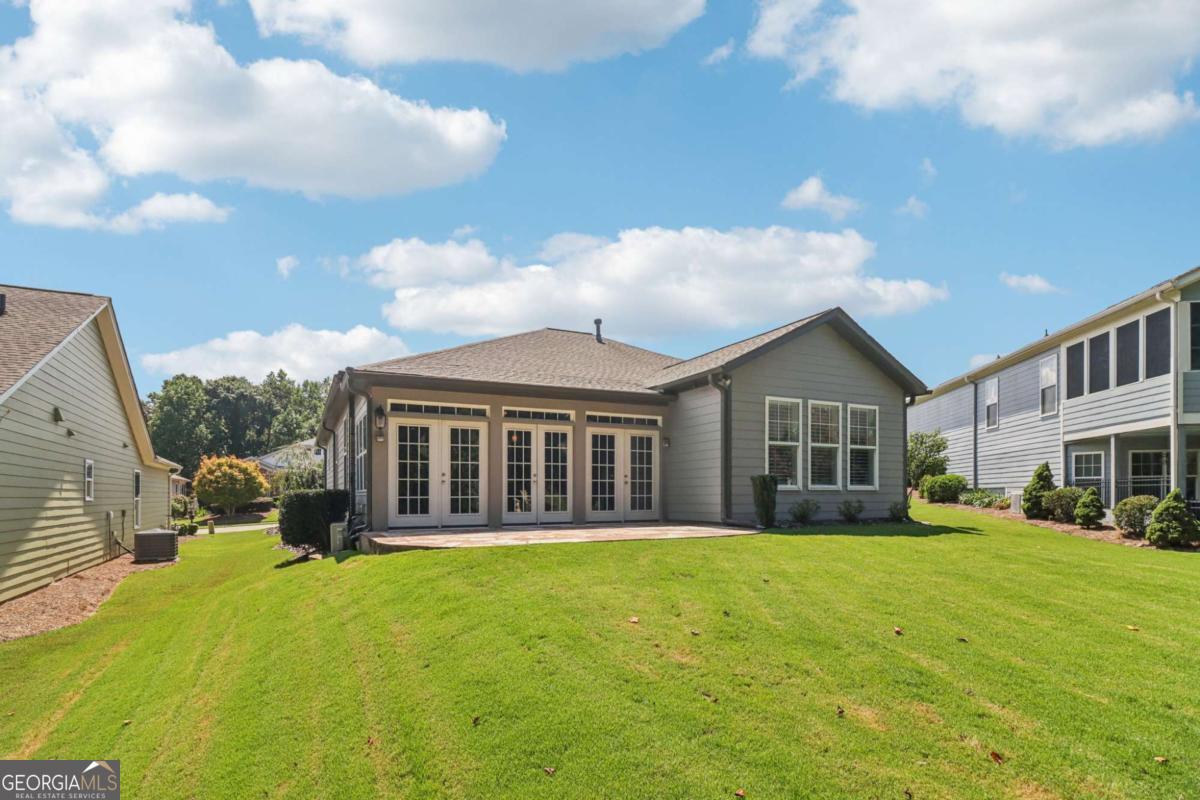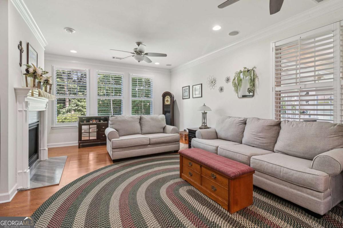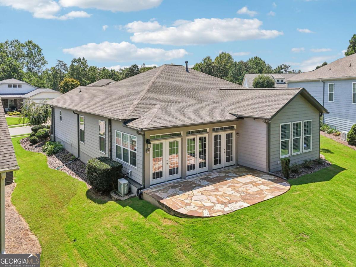 Listed by Mano Sells Homes: Nestled in the sought-after 55+ community of Cresswind at Lake Lanier, this Dahlia floorplan craftsman-style home blends charm, comfort, and a vibrant lifestyle. Meticulous landscaping and a welcoming front porch-complete with a remote-controlled ceiling fan-set the tone, offering a beautiful view of the neighborhood. Inside, the thoughtfully designed layout makes every corner feel inviting and functional. The huge living room serves as the heart of the home, anchored by a natural gas fireplace and offering plenty of space for an array of furniture. The Tuscany-style kitchen is a chef's delight, featuring a built-in wine rack, coffee station, pantry, and a suite of appliances including a GE wall convection oven (2007) paired with an additional oven, a LG wall microwave (2011), and a GE dishwasher (2007) conveniently set in the peninsula. A separate dining room, enhanced by a built-in wall display, comfortably seats twelve, making it ideal for both intimate gatherings and holiday celebrations. In the front of the home is an office with French doors. The owner's suite is a serene retreat with an expansive layout and two walk-in California closets. The spa-inspired bathroom features dual vanities with customized mirrors, a linen closet, a sunken soaking tub, and a luxurious walk-in shower with a built-in seat and four soothing sprays. Additional bedrooms provide versatility and comfort: a large second bedroom includes a portable corner fireplace and nearby full bath, while the third bedroom has its own closet and easy access to the same hallway bath. At the front of the home, a flexible space with French doors serves perfectly as an office or a fourth bedroom. The enclosed brick sunroom is a year-round favorite, showcasing a stamped concrete floor, three sets of French doors, two ceiling fans, electric shades, and a dedicated Daikin heat pump system (2021) providing AC, heat, and fan options. From here, enjoy peaceful views of the expansive, beautifully landscaped backyard and lush wooded backdrop, enhanced in 2023 with a full lawn and garden refresh. Practicality meets ease in the laundry room, equipped with a 2021 stainless steel front-load washer and dryer, four oak cabinets, a utility sink, and additional cabinetry and drawer space. The double-car garage includes two overhead storage racks and wall shelving, providing ample organization. Throughout the home, plantation shutters, remote-controlled ceiling fans with lights (in every room except the office), and even a fan on the front porch add to the comfort and thoughtful details. This home has been meticulously maintained with significant updates for peace of mind: a Lennox HVAC system, roof replaced in 2020, energy-efficient windows and thermostat, carbon monoxide detectors, and an EMC alarm system (currently disconnected). The HVAC and heat pump systems are serviced twice yearly, while monthly pest control and a termite bond ensure continued protection. In recent years, both interior and exterior were professionally painted (2023), carpets deep cleaned (2023), ducts, vents, dryer, and chimney serviced (2023), and the porch, patio, sidewalk, house, and driveway professionally power washed (2024). Beyond the home, the award-winning lifestyle at Cresswind at Lake Lanier elevates everyday living. Begin mornings with a workout in the fitness center or a paddle across the lake, spend afternoons playing tennis, pickleball, or enjoying indoor and outdoor pools, and close the day with friends over billiards, fishing, or one of 100+ clubs. Every day offers new opportunities and a welcoming sense of community. A beautifully maintained home paired with a neighborhood designed for connection and recreation-this is where comfort meets possibility.