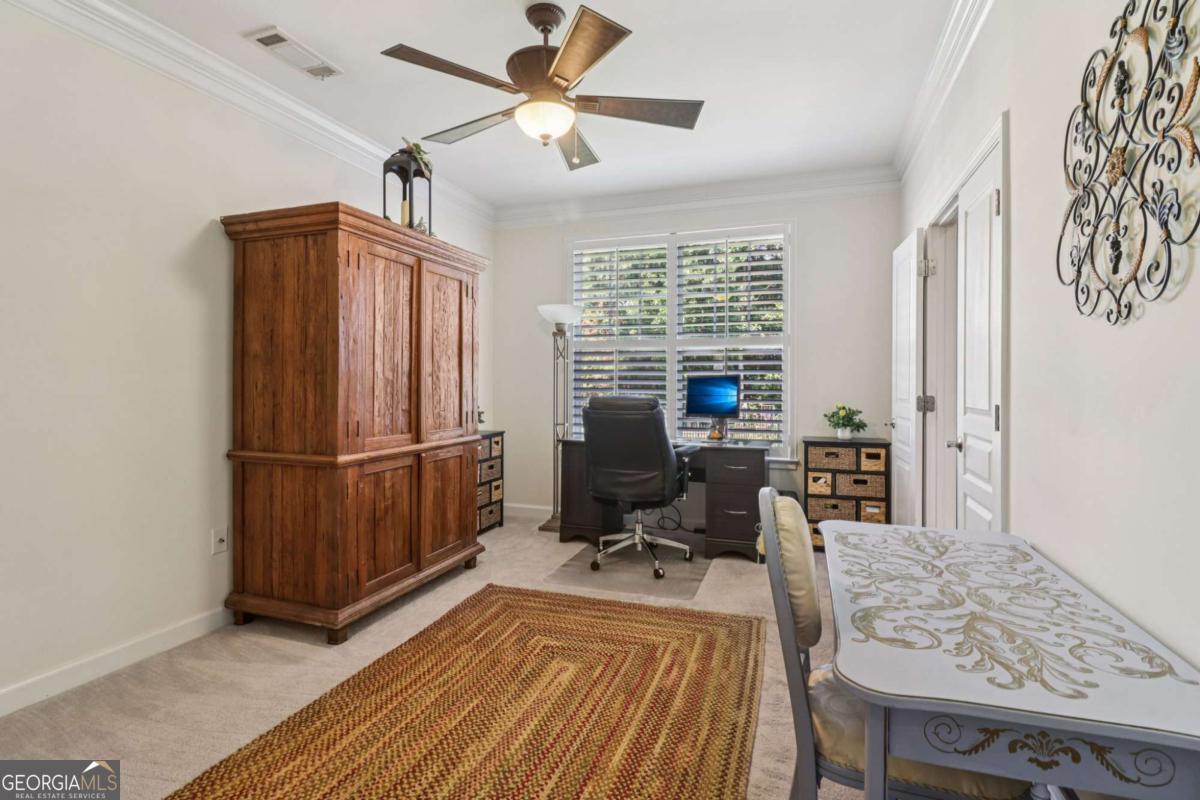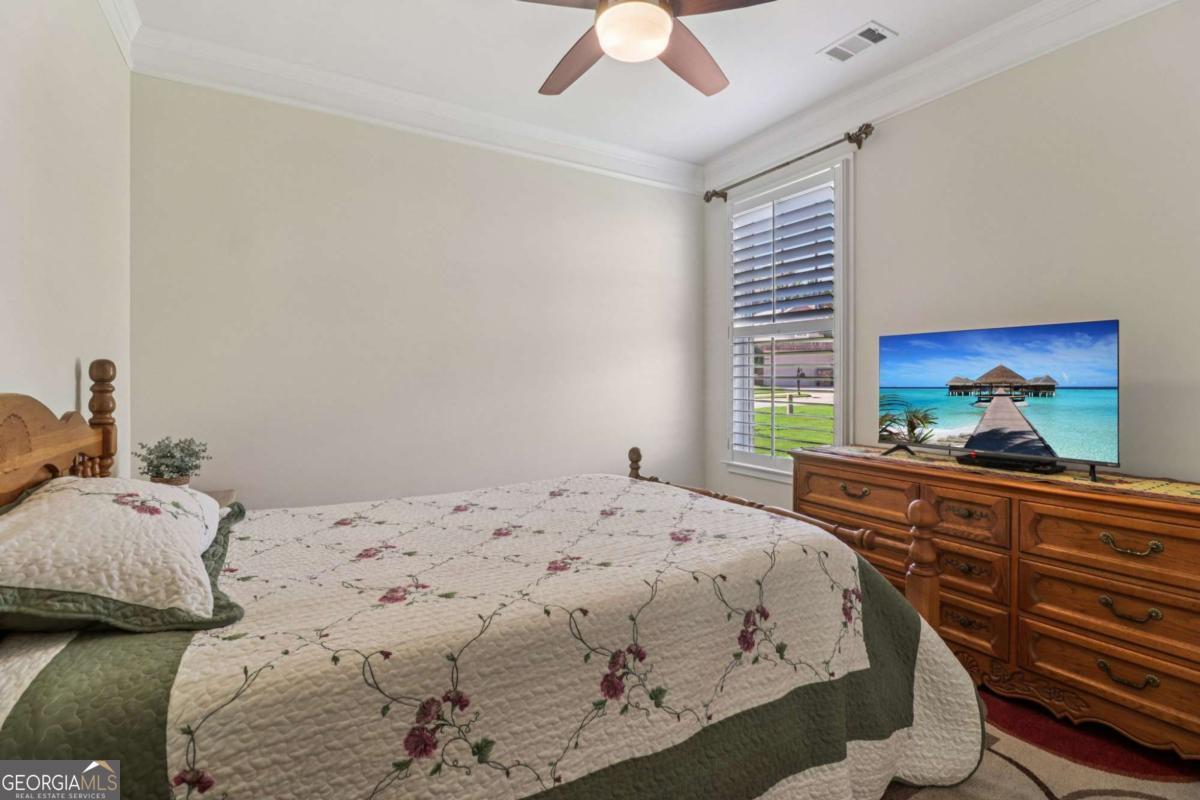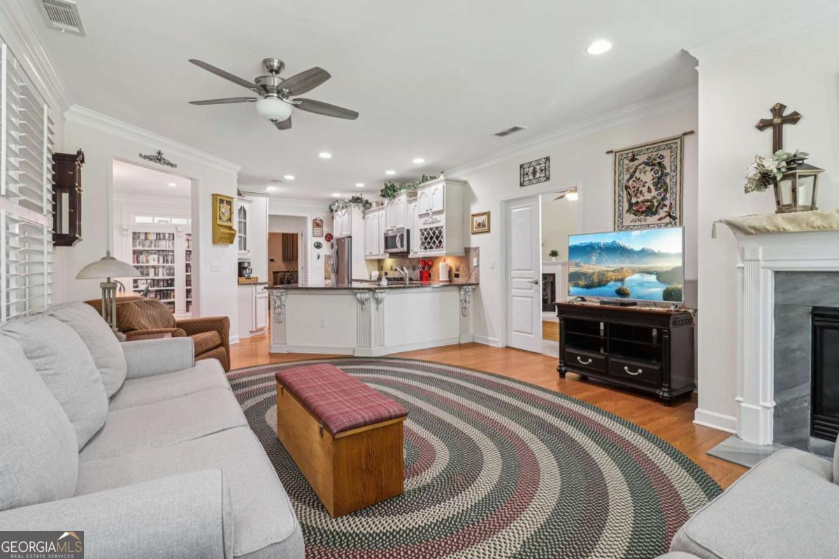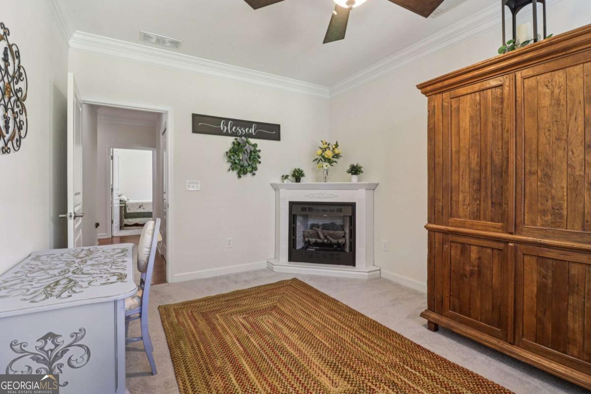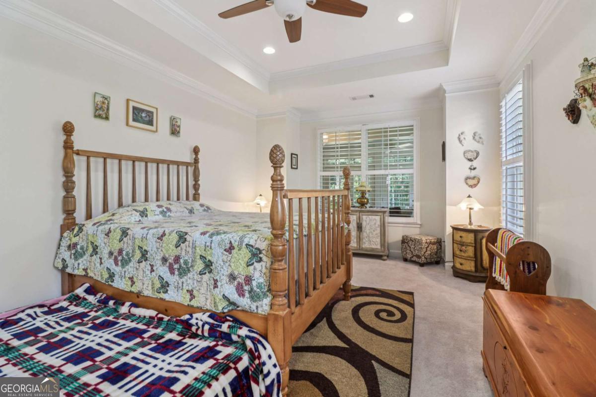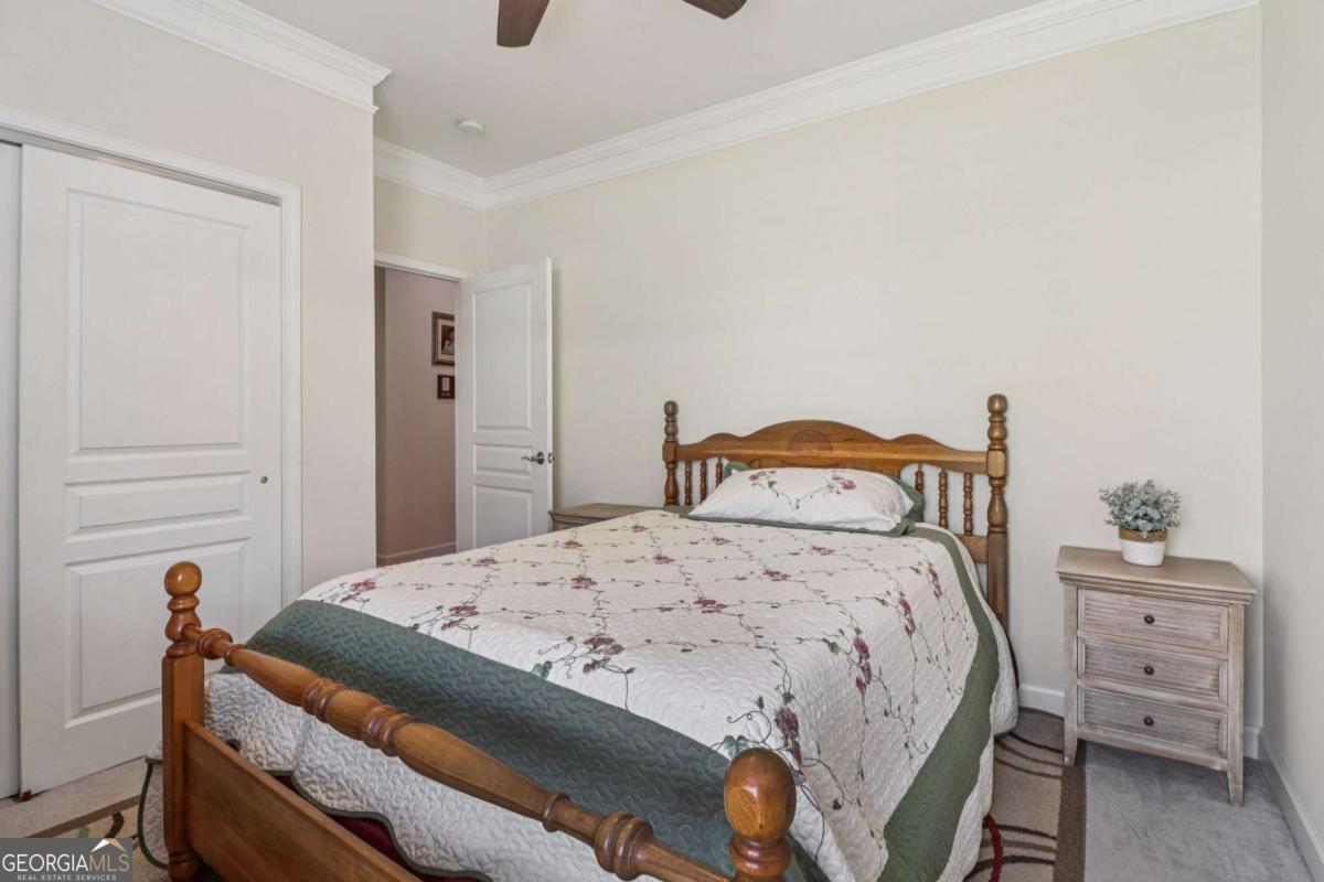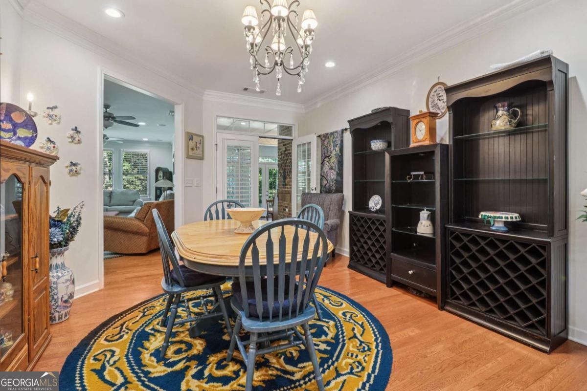 Listed by Mano Sells Homes: Nestled in the sought-after 55+ community of Cresswind at Lake Lanier, this Dahlia floorplan craftsman-style home blends charm, comfort, and a vibrant lifestyle. Meticulous landscaping and a welcoming front porch-complete with a remote-controlled ceiling fan-set the tone, offering a beautiful view of the neighborhood. Inside, the thoughtfully designed layout makes every corner feel inviting and functional. The huge living room serves as the heart of the home, anchored by a natural gas fireplace and offering plenty of space for an array of furniture. The Tuscany-style kitchen is a chef's delight, featuring a built-in wine rack, coffee station, pantry, and a suite of appliances including a GE wall convection oven (2007) paired with an additional oven, a LG wall microwave (2011), and a GE dishwasher (2007) conveniently set in the peninsula. A separate dining room, enhanced by a built-in wall display, comfortably seats twelve, making it ideal for both intimate gatherings and holiday celebrations. In the front of the home is an office with French doors. The owner's suite is a serene retreat with an expansive layout and two walk-in California closets. The spa-inspired bathroom features dual vanities with customized mirrors, a linen closet, a sunken soaking tub, and a luxurious walk-in shower with a built-in seat and four soothing sprays. Additional bedrooms provide versatility and comfort: a large second bedroom includes a portable corner fireplace and nearby full bath, while the third bedroom has its own closet and easy access to the same hallway bath. At the front of the home, a flexible space with French doors serves perfectly as an office or a fourth bedroom. The enclosed brick sunroom is a year-round favorite, showcasing a stamped concrete floor, three sets of French doors, two ceiling fans, electric shades, and a dedicated Daikin heat pump system (2021) providing AC, heat, and fan options. From here, enjoy peaceful views of the expansive, beautifully landscaped backyard and lush wooded backdrop, enhanced in 2023 with a full lawn and garden refresh. Practicality meets ease in the laundry room, equipped with a 2021 stainless steel front-load washer and dryer, four oak cabinets, a utility sink, and additional cabinetry and drawer space. The double-car garage includes two overhead storage racks and wall shelving, providing ample organization. Throughout the home, plantation shutters, remote-controlled ceiling fans with lights (in every room except the office), and even a fan on the front porch add to the comfort and thoughtful details. This home has been meticulously maintained with significant updates for peace of mind: a Lennox HVAC system, roof replaced in 2020, energy-efficient windows and thermostat, carbon monoxide detectors, and an EMC alarm system (currently disconnected). The HVAC and heat pump systems are serviced twice yearly, while monthly pest control and a termite bond ensure continued protection. In recent years, both interior and exterior were professionally painted (2023), carpets deep cleaned (2023), ducts, vents, dryer, and chimney serviced (2023), and the porch, patio, sidewalk, house, and driveway professionally power washed (2024). Beyond the home, the award-winning lifestyle at Cresswind at Lake Lanier elevates everyday living. Begin mornings with a workout in the fitness center or a paddle across the lake, spend afternoons playing tennis, pickleball, or enjoying indoor and outdoor pools, and close the day with friends over billiards, fishing, or one of 100+ clubs. Every day offers new opportunities and a welcoming sense of community. A beautifully maintained home paired with a neighborhood designed for connection and recreation-this is where comfort meets possibility.