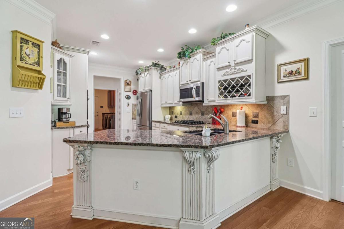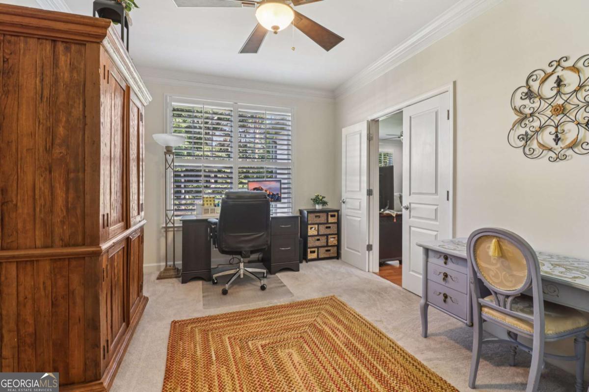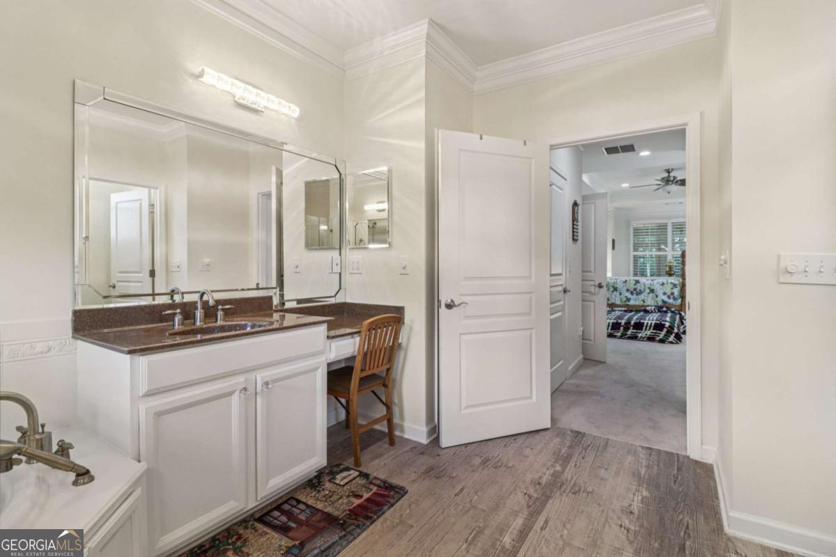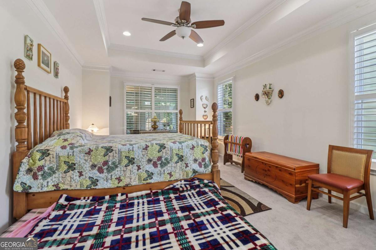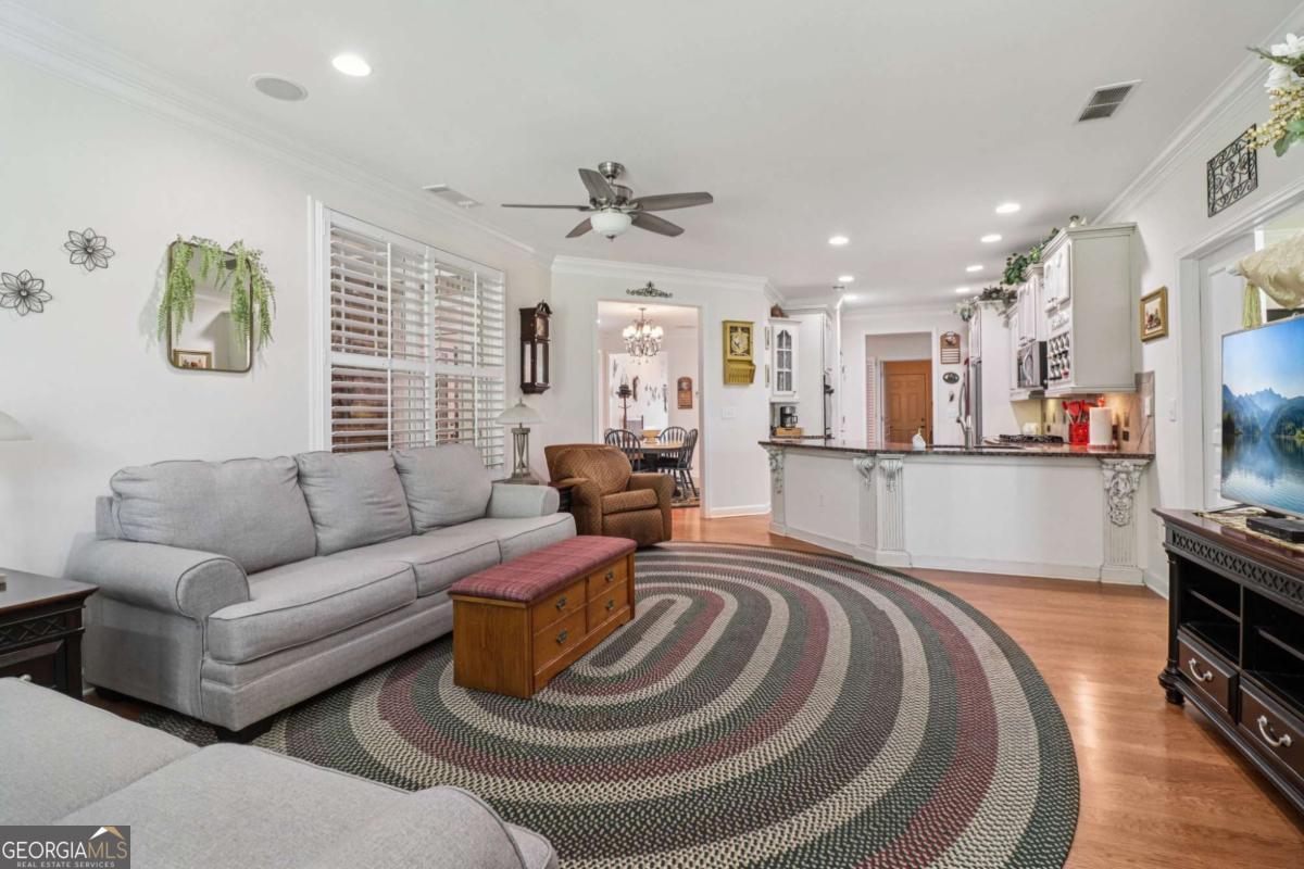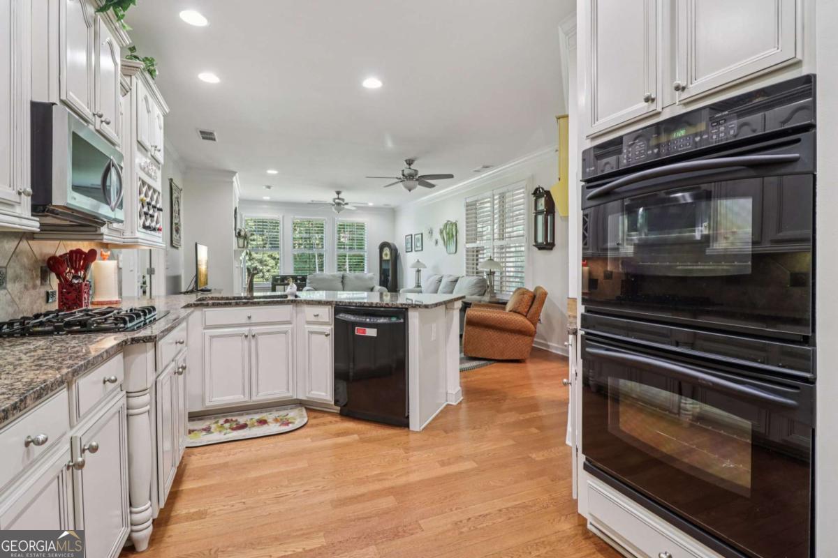 Listed by Mano Sells Homes: Nestled in the sought-after 55+ community of Cresswind at Lake Lanier, this Dahlia floorplan craftsman-style home blends charm, comfort, and a vibrant lifestyle. Meticulous landscaping and a welcoming front porch-complete with a remote-controlled ceiling fan-set the tone, offering a beautiful view of the neighborhood. Inside, the thoughtfully designed layout makes every corner feel inviting and functional. The huge living room serves as the heart of the home, anchored by a natural gas fireplace and offering plenty of space for an array of furniture. The Tuscany-style kitchen is a chef's delight, featuring a built-in wine rack, coffee station, pantry, and a suite of appliances including a GE wall convection oven (2007) paired with an additional oven, a LG wall microwave (2011), and a GE dishwasher (2007) conveniently set in the peninsula. A separate dining room, enhanced by a built-in wall display, comfortably seats twelve, making it ideal for both intimate gatherings and holiday celebrations. In the front of the home is an office with French doors. The owner's suite is a serene retreat with an expansive layout and two walk-in California closets. The spa-inspired bathroom features dual vanities with customized mirrors, a linen closet, a sunken soaking tub, and a luxurious walk-in shower with a built-in seat and four soothing sprays. Additional bedrooms provide versatility and comfort: a large second bedroom includes a portable corner fireplace and nearby full bath, while the third bedroom has its own closet and easy access to the same hallway bath. At the front of the home, a flexible space with French doors serves perfectly as an office or a fourth bedroom. The enclosed brick sunroom is a year-round favorite, showcasing a stamped concrete floor, three sets of French doors, two ceiling fans, electric shades, and a dedicated Daikin heat pump system (2021) providing AC, heat, and fan options. From here, enjoy peaceful views of the expansive, beautifully landscaped backyard and lush wooded backdrop, enhanced in 2023 with a full lawn and garden refresh. Practicality meets ease in the laundry room, equipped with a 2021 stainless steel front-load washer and dryer, four oak cabinets, a utility sink, and additional cabinetry and drawer space. The double-car garage includes two overhead storage racks and wall shelving, providing ample organization. Throughout the home, plantation shutters, remote-controlled ceiling fans with lights (in every room except the office), and even a fan on the front porch add to the comfort and thoughtful details. This home has been meticulously maintained with significant updates for peace of mind: a Lennox HVAC system, roof replaced in 2020, energy-efficient windows and thermostat, carbon monoxide detectors, and an EMC alarm system (currently disconnected). The HVAC and heat pump systems are serviced twice yearly, while monthly pest control and a termite bond ensure continued protection. In recent years, both interior and exterior were professionally painted (2023), carpets deep cleaned (2023), ducts, vents, dryer, and chimney serviced (2023), and the porch, patio, sidewalk, house, and driveway professionally power washed (2024). Beyond the home, the award-winning lifestyle at Cresswind at Lake Lanier elevates everyday living. Begin mornings with a workout in the fitness center or a paddle across the lake, spend afternoons playing tennis, pickleball, or enjoying indoor and outdoor pools, and close the day with friends over billiards, fishing, or one of 100+ clubs. Every day offers new opportunities and a welcoming sense of community. A beautifully maintained home paired with a neighborhood designed for connection and recreation-this is where comfort meets possibility.