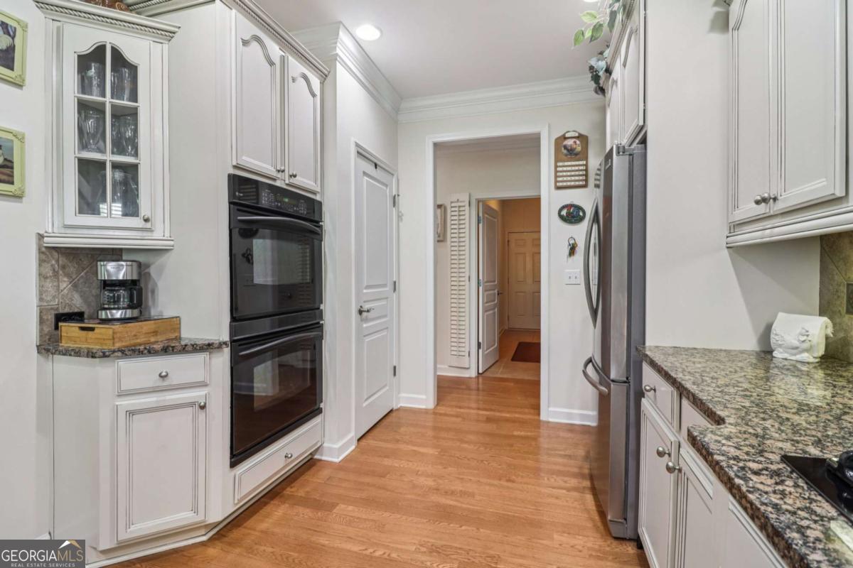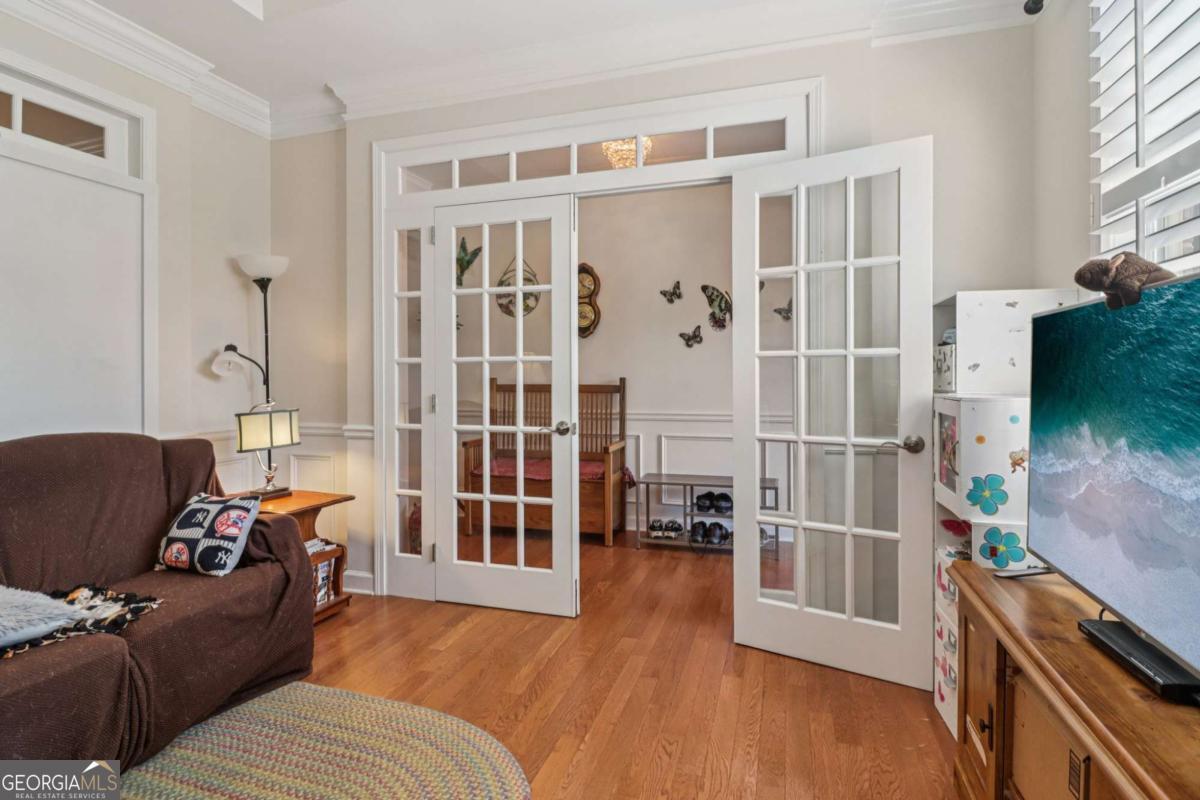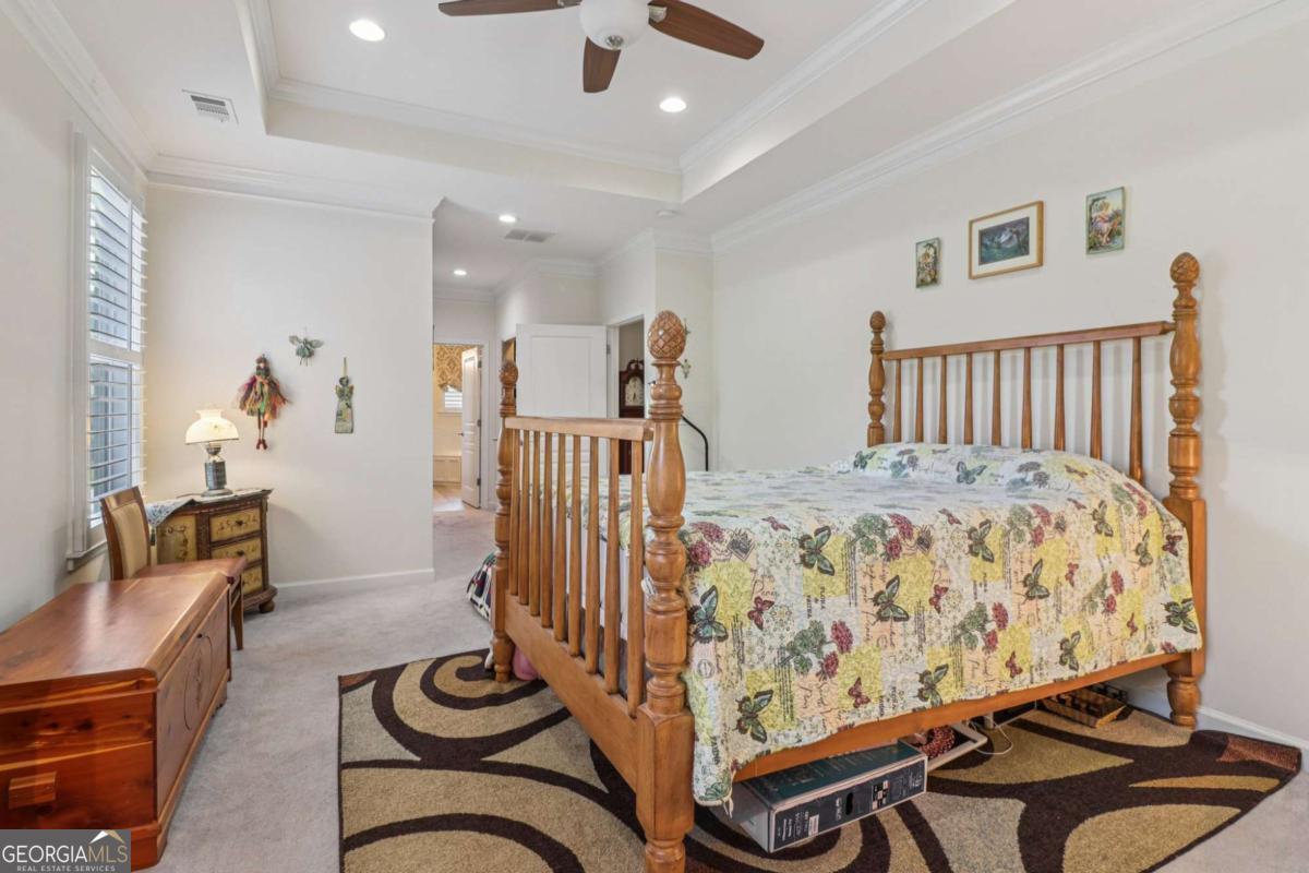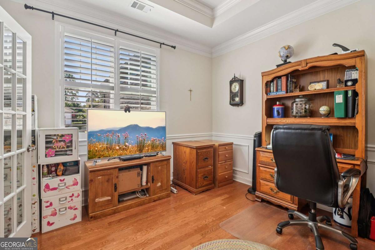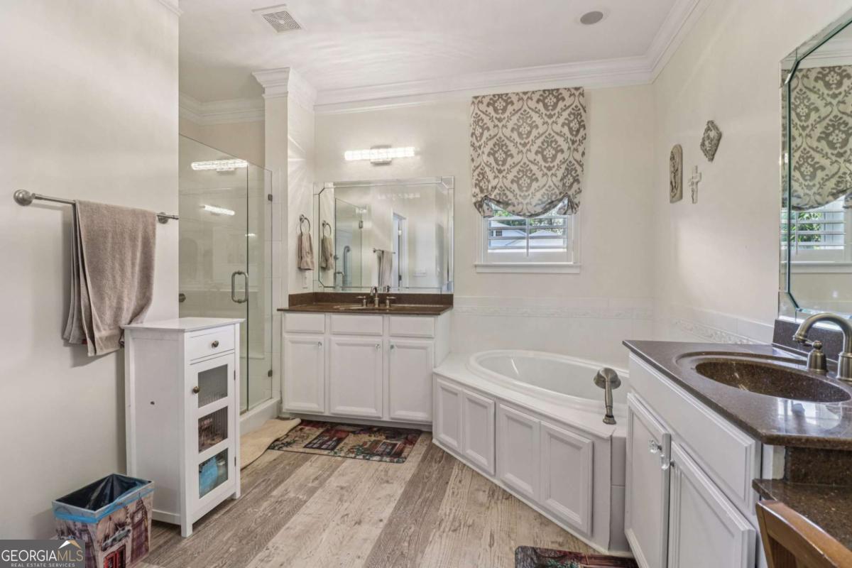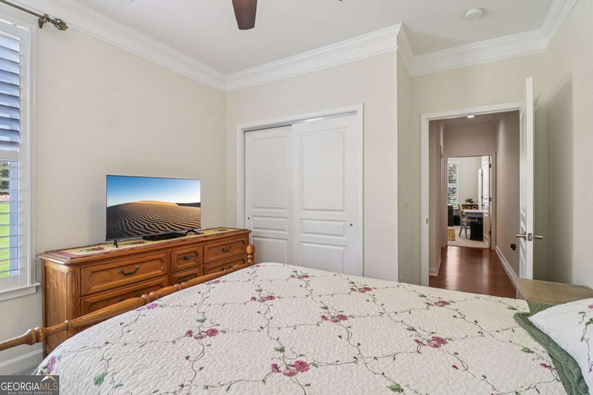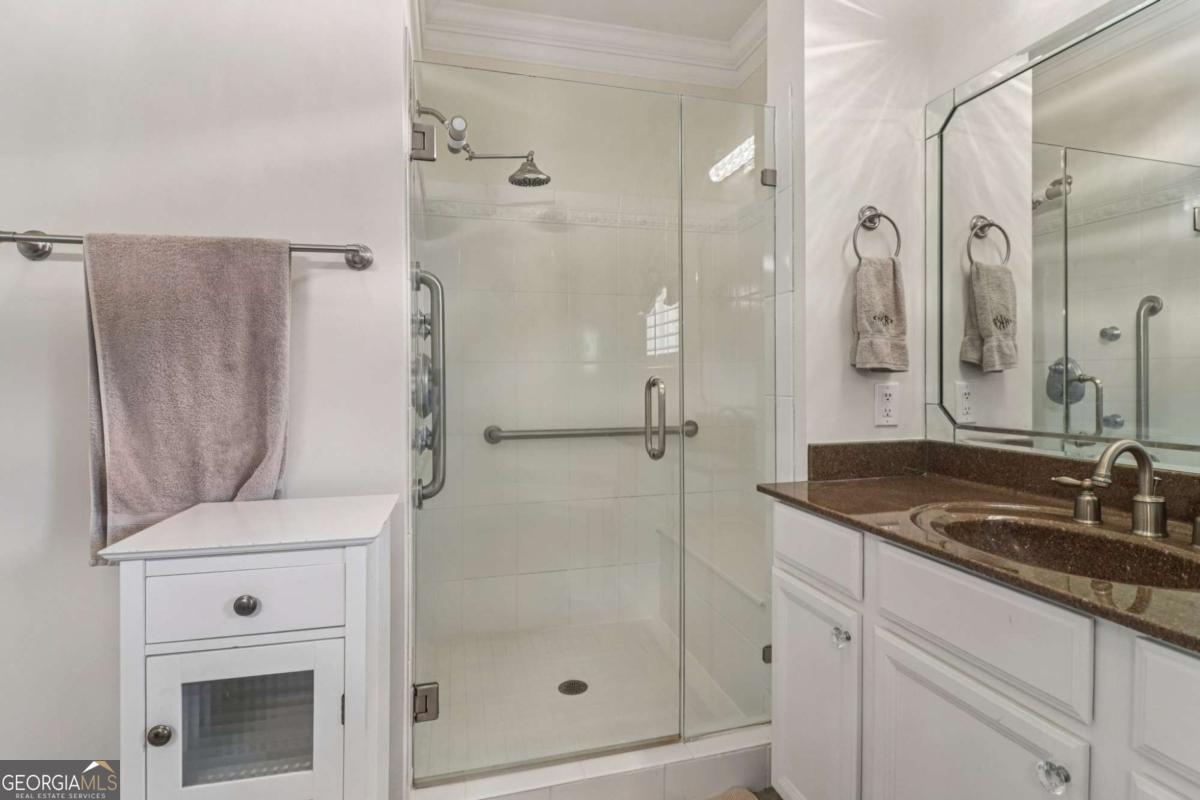 Listed by Mano Sells Homes: Nestled in the sought-after 55+ community of Cresswind at Lake Lanier, this Dahlia floorplan craftsman-style home blends charm, comfort, and a vibrant lifestyle. Meticulous landscaping and a welcoming front porch-complete with a remote-controlled ceiling fan-set the tone, offering a beautiful view of the neighborhood. Inside, the thoughtfully designed layout makes every corner feel inviting and functional. The huge living room serves as the heart of the home, anchored by a natural gas fireplace and offering plenty of space for an array of furniture. The Tuscany-style kitchen is a chef's delight, featuring a built-in wine rack, coffee station, pantry, and a suite of appliances including a GE wall convection oven (2007) paired with an additional oven, a LG wall microwave (2011), and a GE dishwasher (2007) conveniently set in the peninsula. A separate dining room, enhanced by a built-in wall display, comfortably seats twelve, making it ideal for both intimate gatherings and holiday celebrations. In the front of the home is an office with French doors. The owner's suite is a serene retreat with an expansive layout and two walk-in California closets. The spa-inspired bathroom features dual vanities with customized mirrors, a linen closet, a sunken soaking tub, and a luxurious walk-in shower with a built-in seat and four soothing sprays. Additional bedrooms provide versatility and comfort: a large second bedroom includes a portable corner fireplace and nearby full bath, while the third bedroom has its own closet and easy access to the same hallway bath. At the front of the home, a flexible space with French doors serves perfectly as an office or a fourth bedroom. The enclosed brick sunroom is a year-round favorite, showcasing a stamped concrete floor, three sets of French doors, two ceiling fans, electric shades, and a dedicated Daikin heat pump system (2021) providing AC, heat, and fan options. From here, enjoy peaceful views of the expansive, beautifully landscaped backyard and lush wooded backdrop, enhanced in 2023 with a full lawn and garden refresh. Practicality meets ease in the laundry room, equipped with a 2021 stainless steel front-load washer and dryer, four oak cabinets, a utility sink, and additional cabinetry and drawer space. The double-car garage includes two overhead storage racks and wall shelving, providing ample organization. Throughout the home, plantation shutters, remote-controlled ceiling fans with lights (in every room except the office), and even a fan on the front porch add to the comfort and thoughtful details. This home has been meticulously maintained with significant updates for peace of mind: a Lennox HVAC system, roof replaced in 2020, energy-efficient windows and thermostat, carbon monoxide detectors, and an EMC alarm system (currently disconnected). The HVAC and heat pump systems are serviced twice yearly, while monthly pest control and a termite bond ensure continued protection. In recent years, both interior and exterior were professionally painted (2023), carpets deep cleaned (2023), ducts, vents, dryer, and chimney serviced (2023), and the porch, patio, sidewalk, house, and driveway professionally power washed (2024). Beyond the home, the award-winning lifestyle at Cresswind at Lake Lanier elevates everyday living. Begin mornings with a workout in the fitness center or a paddle across the lake, spend afternoons playing tennis, pickleball, or enjoying indoor and outdoor pools, and close the day with friends over billiards, fishing, or one of 100+ clubs. Every day offers new opportunities and a welcoming sense of community. A beautifully maintained home paired with a neighborhood designed for connection and recreation-this is where comfort meets possibility.