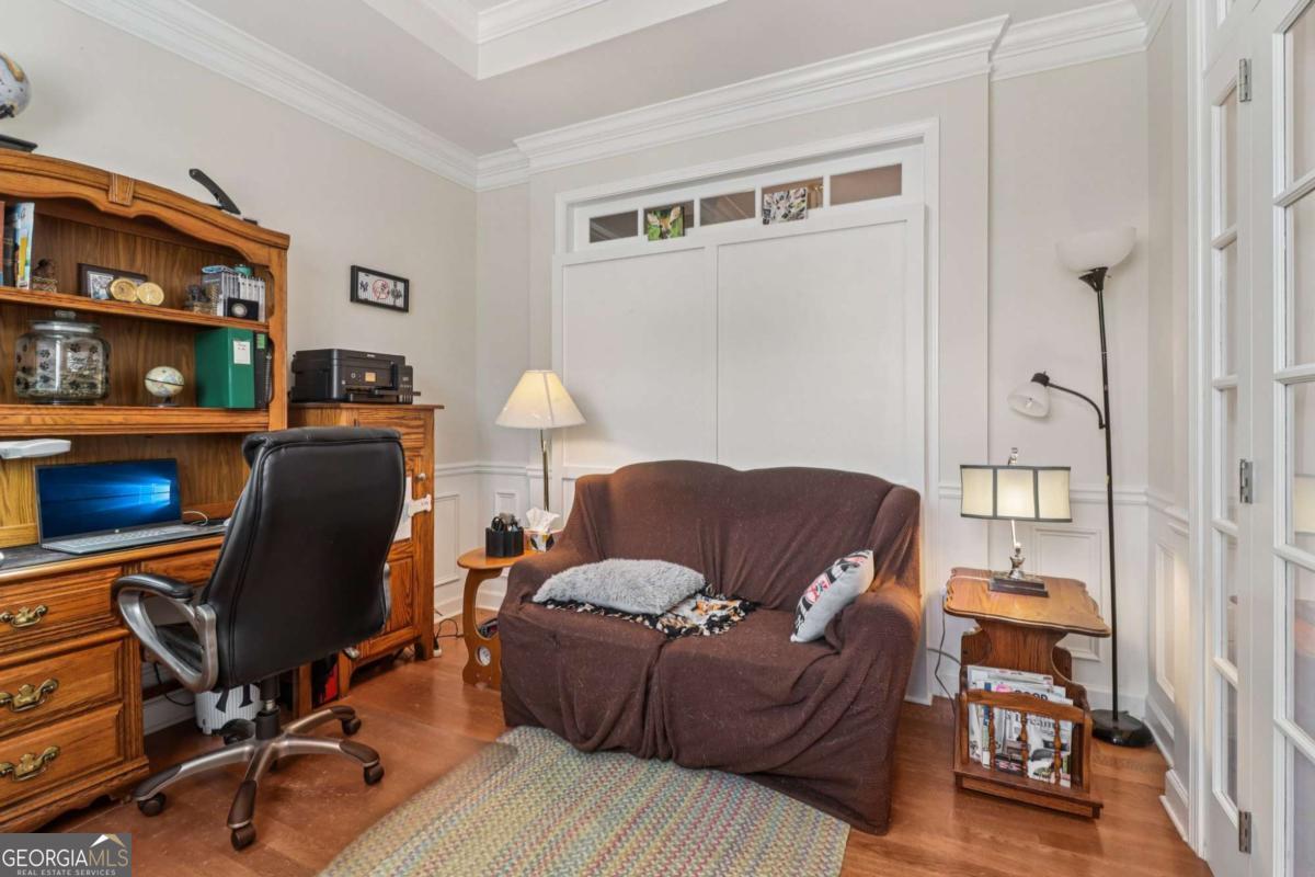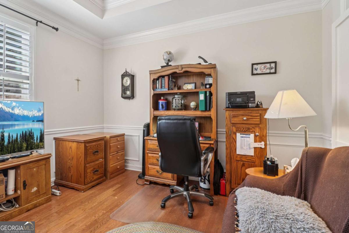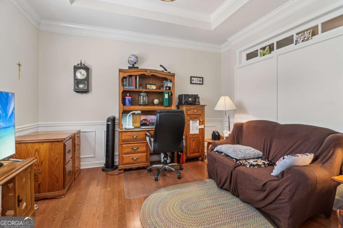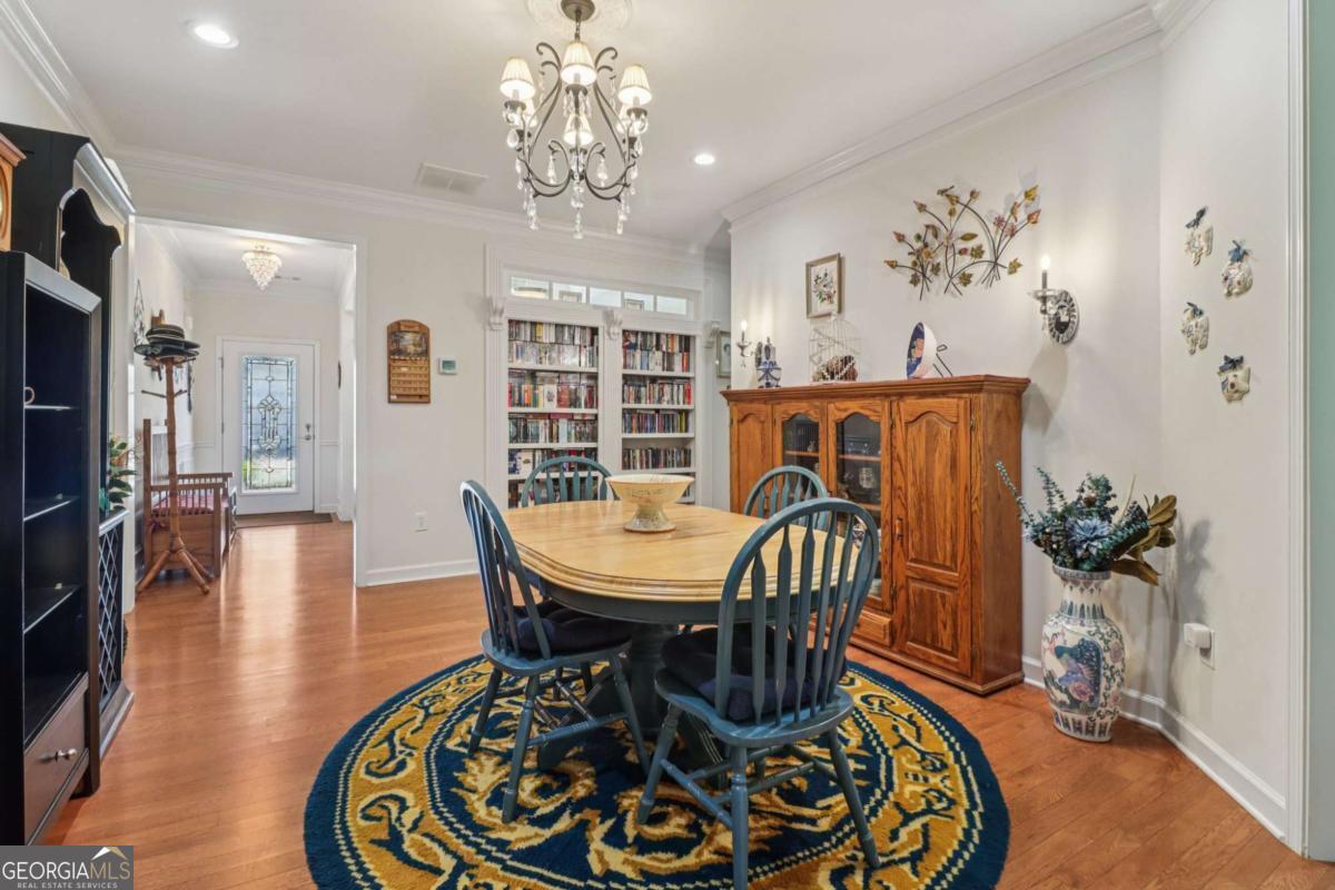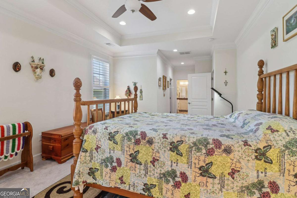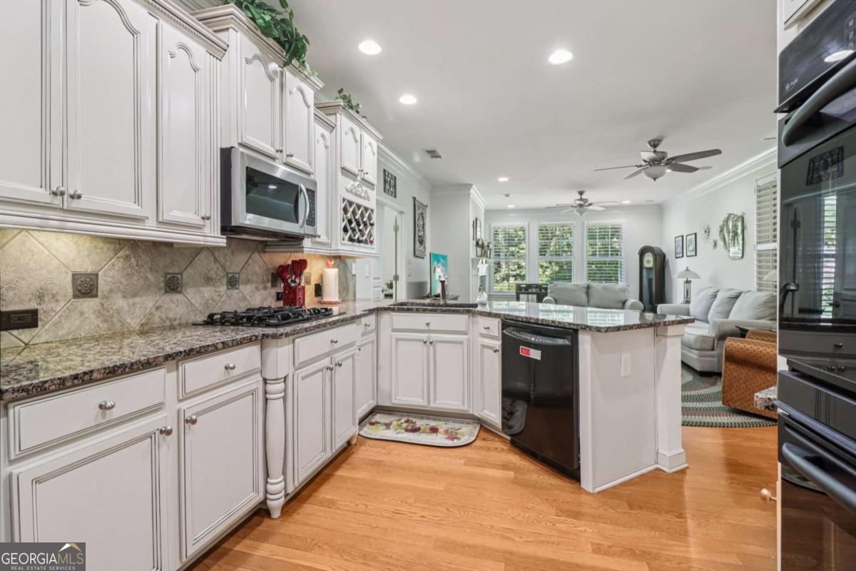 Listed by Mano Sells Homes: Nestled in the sought-after 55+ community of Cresswind at Lake Lanier, this Dahlia floorplan craftsman-style home blends charm, comfort, and a vibrant lifestyle. Meticulous landscaping and a welcoming front porch-complete with a remote-controlled ceiling fan-set the tone, offering a beautiful view of the neighborhood. Inside, the thoughtfully designed layout makes every corner feel inviting and functional. The huge living room serves as the heart of the home, anchored by a natural gas fireplace and offering plenty of space for an array of furniture. The Tuscany-style kitchen is a chef's delight, featuring a built-in wine rack, coffee station, pantry, and a suite of appliances including a GE wall convection oven (2007) paired with an additional oven, a LG wall microwave (2011), and a GE dishwasher (2007) conveniently set in the peninsula. A separate dining room, enhanced by a built-in wall display, comfortably seats twelve, making it ideal for both intimate gatherings and holiday celebrations. In the front of the home is an office with French doors. The owner's suite is a serene retreat with an expansive layout and two walk-in California closets. The spa-inspired bathroom features dual vanities with customized mirrors, a linen closet, a sunken soaking tub, and a luxurious walk-in shower with a built-in seat and four soothing sprays. Additional bedrooms provide versatility and comfort: a large second bedroom includes a portable corner fireplace and nearby full bath, while the third bedroom has its own closet and easy access to the same hallway bath. At the front of the home, a flexible space with French doors serves perfectly as an office or a fourth bedroom. The enclosed brick sunroom is a year-round favorite, showcasing a stamped concrete floor, three sets of French doors, two ceiling fans, electric shades, and a dedicated Daikin heat pump system (2021) providing AC, heat, and fan options. From here, enjoy peaceful views of the expansive, beautifully landscaped backyard and lush wooded backdrop, enhanced in 2023 with a full lawn and garden refresh. Practicality meets ease in the laundry room, equipped with a 2021 stainless steel front-load washer and dryer, four oak cabinets, a utility sink, and additional cabinetry and drawer space. The double-car garage includes two overhead storage racks and wall shelving, providing ample organization. Throughout the home, plantation shutters, remote-controlled ceiling fans with lights (in every room except the office), and even a fan on the front porch add to the comfort and thoughtful details. This home has been meticulously maintained with significant updates for peace of mind: a Lennox HVAC system, roof replaced in 2020, energy-efficient windows and thermostat, carbon monoxide detectors, and an EMC alarm system (currently disconnected). The HVAC and heat pump systems are serviced twice yearly, while monthly pest control and a termite bond ensure continued protection. In recent years, both interior and exterior were professionally painted (2023), carpets deep cleaned (2023), ducts, vents, dryer, and chimney serviced (2023), and the porch, patio, sidewalk, house, and driveway professionally power washed (2024). Beyond the home, the award-winning lifestyle at Cresswind at Lake Lanier elevates everyday living. Begin mornings with a workout in the fitness center or a paddle across the lake, spend afternoons playing tennis, pickleball, or enjoying indoor and outdoor pools, and close the day with friends over billiards, fishing, or one of 100+ clubs. Every day offers new opportunities and a welcoming sense of community. A beautifully maintained home paired with a neighborhood designed for connection and recreation-this is where comfort meets possibility.