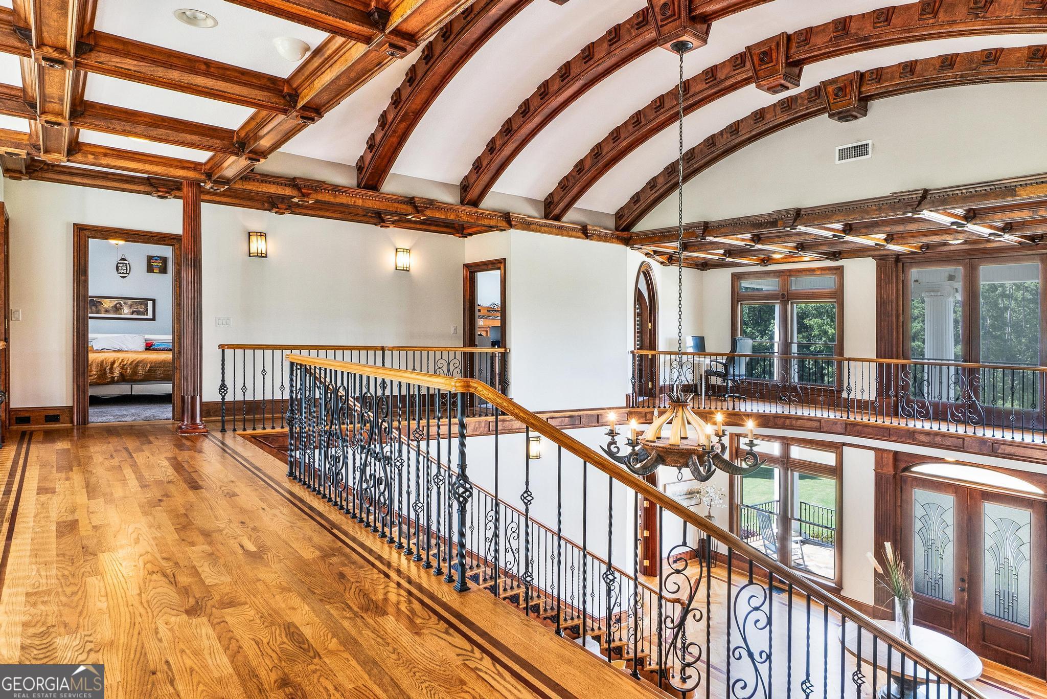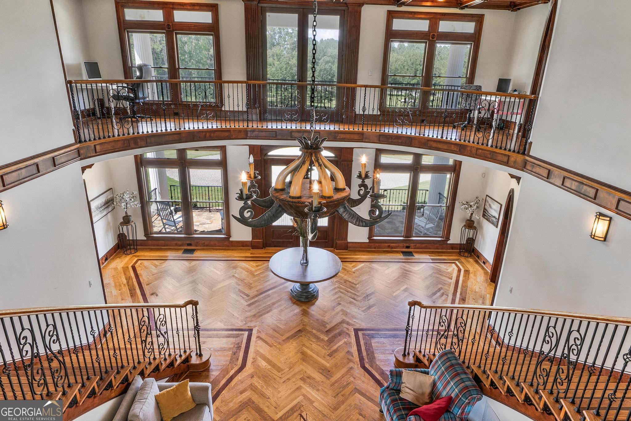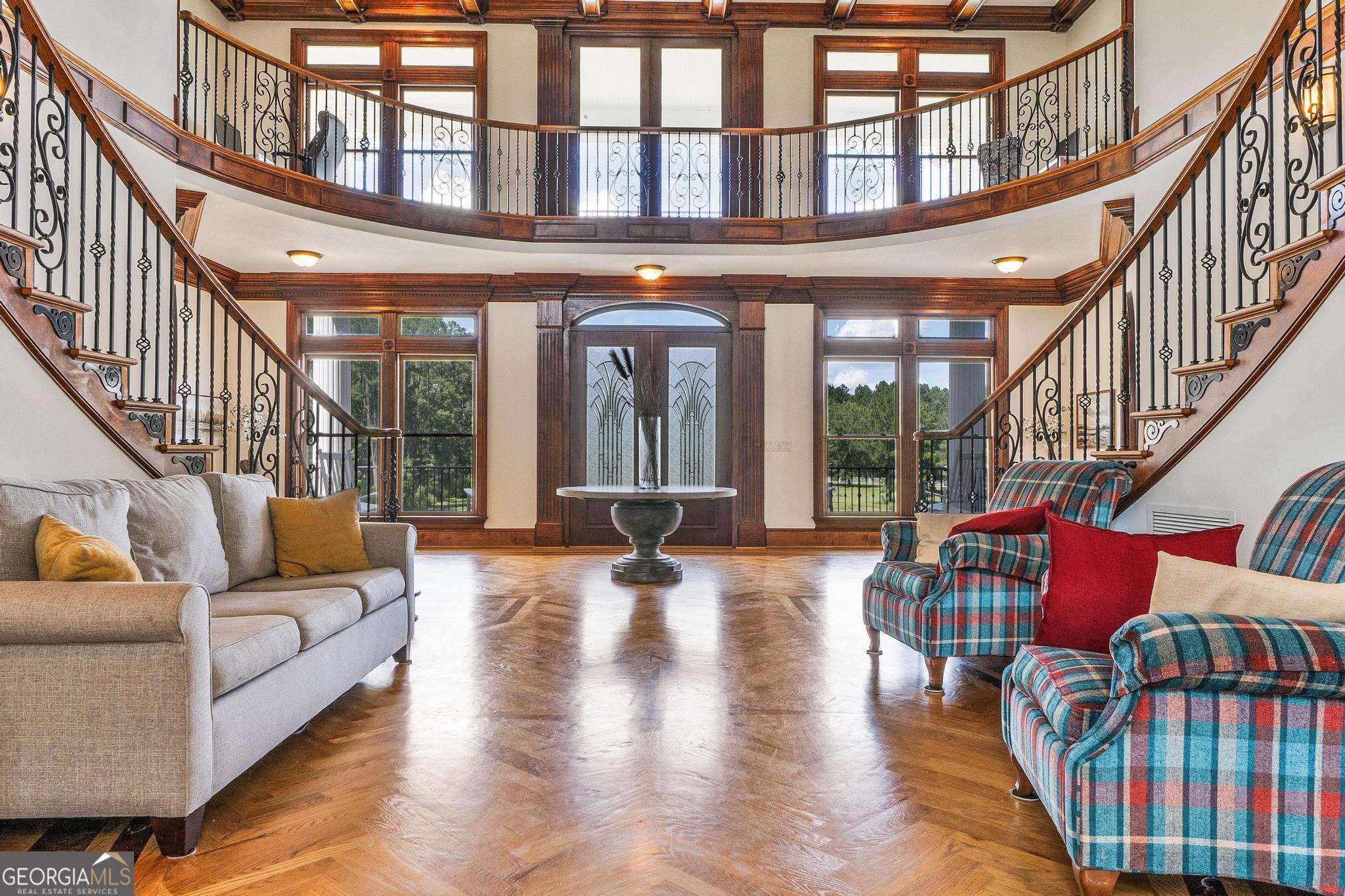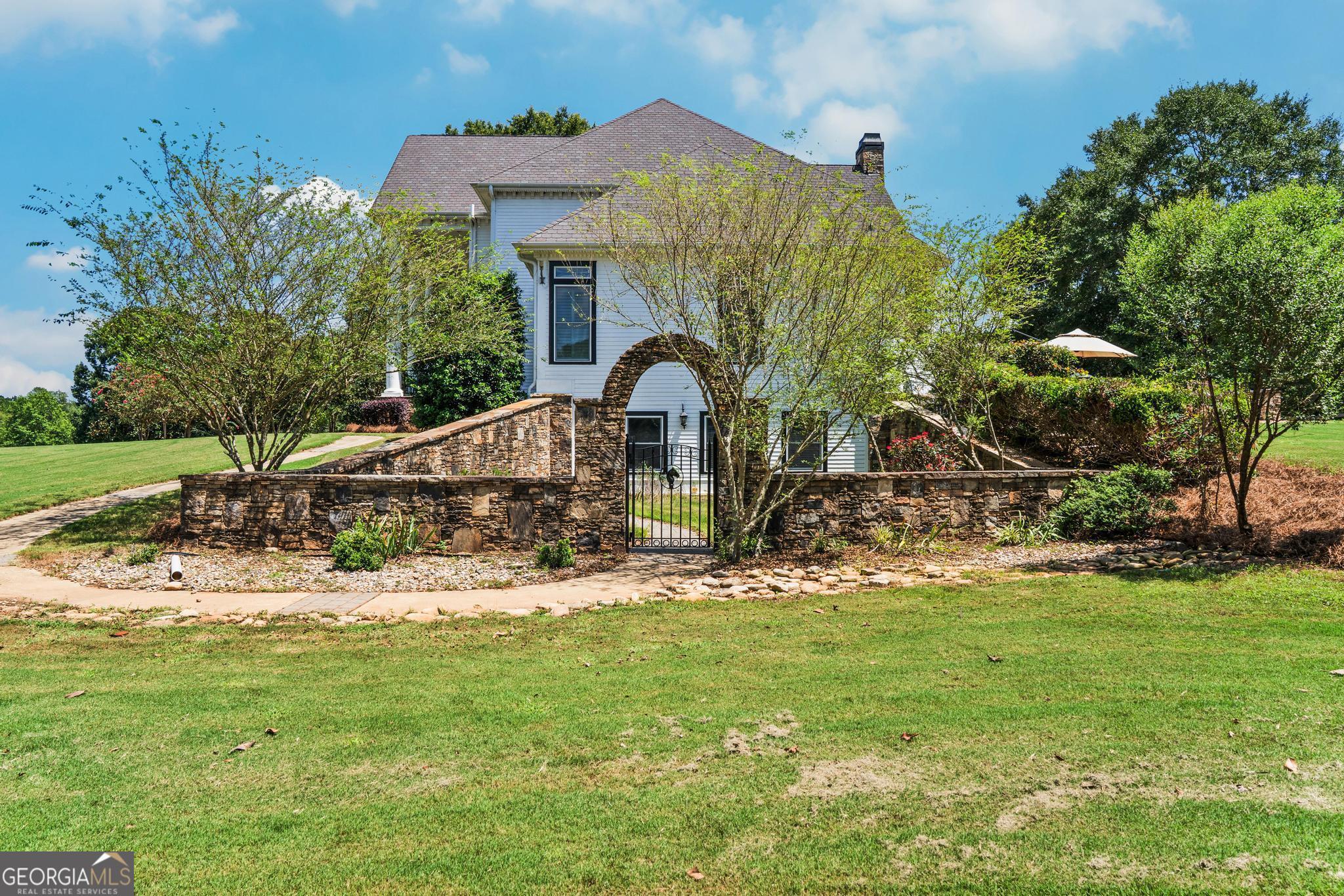 The Riesen Ranch is a remarkable 191+ acre cattle and equestrian estate, perfectly situated just one hour from downtown Atlanta. It boasts exceptional beauty while also serving as an income-producing livestock ranch and event venue. The custom-built main house was designed for family and entertaining. This 6-bedroom, 4.5-bath home offers 9,247 square feet of living space, including a fully finished 2,264-square-foot basement with a mother-in-law suite. The home showcases the finest craftsmanship and detail. A large front porch overlooks the pond and pasture. Inside, the grand foyer features a double bridal staircase with beautiful flooring, ceiling accents, and custom woodwork. It leads to a spacious living room with a fireplace and stunning views of the heated pool and pastures. The breakfast room, also with a fireplace, connects to a newly renovated kitchen. A large mudroom, ideal for farm life, leads to a large laundry room. At the front of the house, the formal dining room and office boast breathtaking pond and pasture views. The master suite includes a private study with a gas fireplace. The expansive master bath offers a glass shower, jacuzzi tub, and his-and-hers toilets. Upstairs, there are four bedrooms-two on each side of the home-joined by Jack-and-Jill bathrooms and a balcony overlooking the pond and property. The fully finished basement features a private mother-in-law suite with a kitchenette and separate entrance leading to a tea garden. Additional highlights include a home theater with custom sound, lighting, seating, and soundproof walls, as well as a secure gun room with keypad access, storage rooms, and ample closets. The home is equipped with a whole-house central vacuum system and a Generac emergency generator. Outside, there are two two-car garages. One is connected by a breezeway that leads to a large deck and heated pool overlooking the pasture. A 3,500-square-foot shop includes a finished office on one side and a music recording studio with a sound room on the other. The concrete-floored shop houses the family's gym and rock wall, with plenty of space for equipment and toys. It also features a tool room with a workbench, loft storage on both sides, and additional outdoor bays for storage. The property includes two horse barns. One with seven custom pine stalls, a feed room, tack room, storage closets, a hay loft with chute, fans, lighting, and an attached paddock for easy turnouts that lead to a large pasture. The second barn offers eight stalls with feed and tack rooms. Above it is a newly renovated 2-bedroom, 1-bath apartment with a full kitchen and large living area-perfect for hosting and entertaining. A riding arena and round pen provide space for equine training and exercise. The ranch also features a 10,000-square-foot elegant event space adorned with imported crystal chandeliers. It includes a commercial prep kitchen with stainless steel preparation station, refrigerator, and sink; three restrooms; a live-edge bar; and seating for up to 200 guests. Outdoor amenities include a stage and seating area, ideal for weddings, educational gatherings, and corporate events. The Riesen Ranch offers a gated entrance, a well-maintained road system, and trails throughout the property. Two 4,000-square-foot red iron open barns provide equipment storage. The property is fully fenced and cross-fenced, with multiple paddocks and pastures. Currently raising the family's Wagyu cattle and horses, the ranch offers tremendous opportunities for expansion into farm-to-table agritourism, given its close proximity to Atlanta. It has also been used as an equestrian boarding facility. It's ready for your cows and horses! The Riesen Ranch is located in Senoia, Georgia just 44 miles (47 minutes) from Hartsfield-Jackson International Airport and 54 miles from Atlanta.