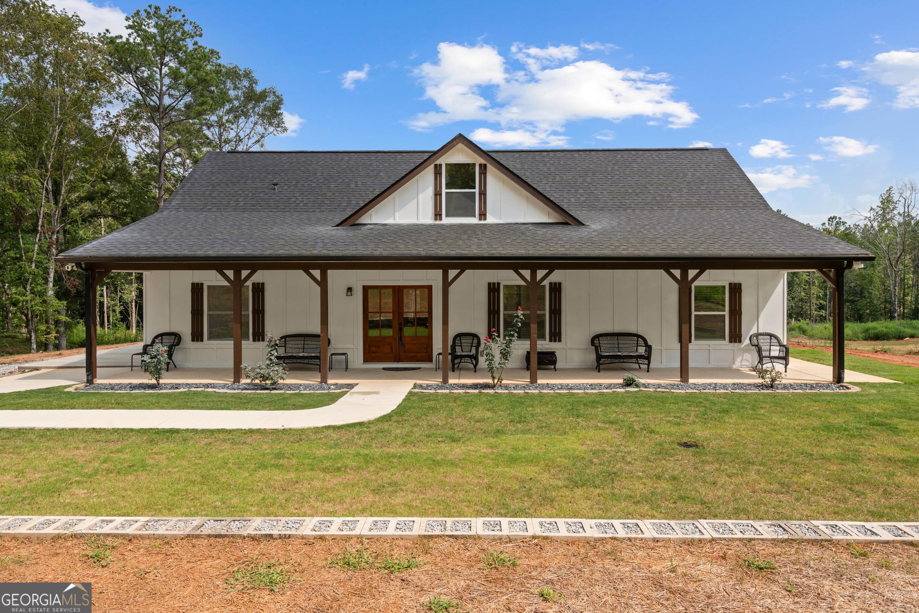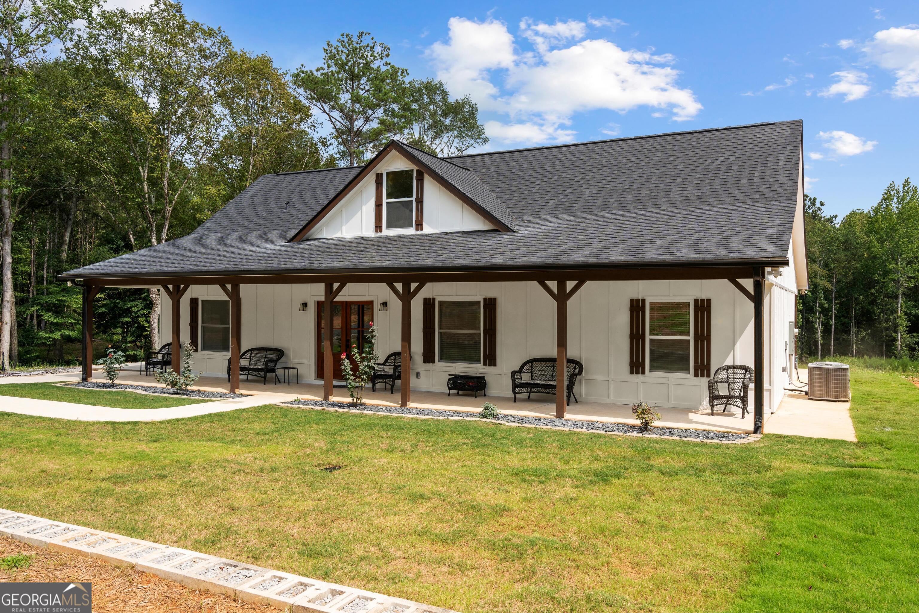 Welcome to this stunning farmhouse-style ranch offering the perfect blend of comfort, charm, and wide-open space. Nestled on a beautifully private 4.13-acre lot, this one-level home features a thoughtfully designed open floor plan with generous living spaces, ideal for both relaxing and entertaining. Step inside to find a bright and airy interior with timeless farmhouse finishes, a spacious kitchen that flows effortlessly into the living and dining areas, and large windows that fill the home with natural light, large walk-in closet and bathroom in primary bedroom. Outside, enjoy serene views and privacy on your oversized patio, creek on the backside of property. Barn on the property offers endless possibilities-perfect for storing ATV's, SXS, lawn equipment, hobbies, storage, or even small-scale farming. If you're looking for peaceful country living with modern style and convenience, this property is a must-see!
