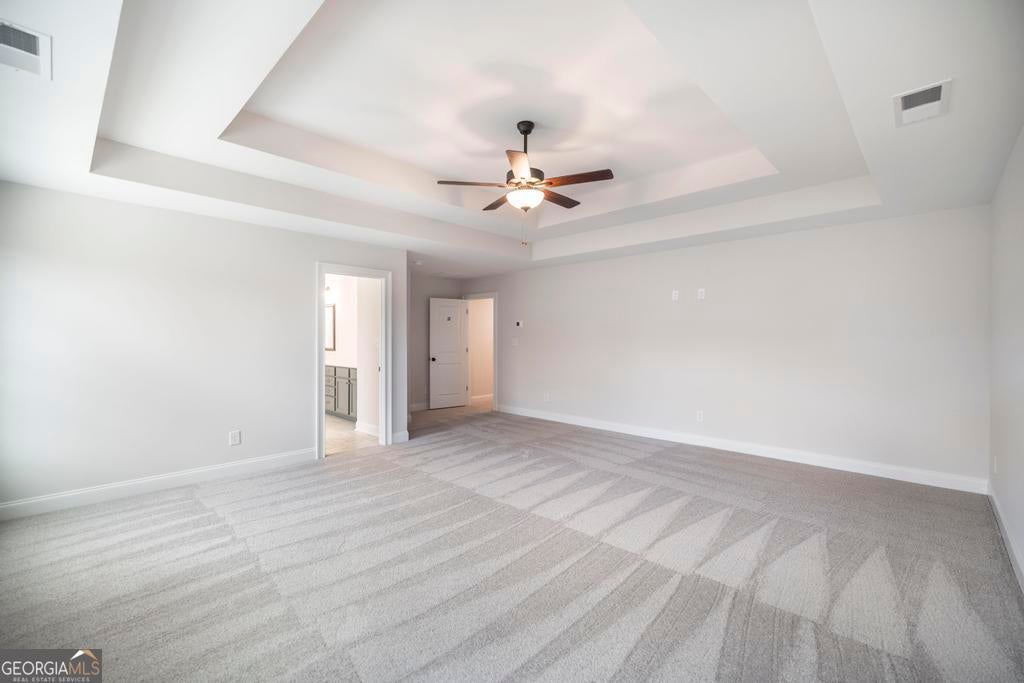 - Interior FeaturesTray Ceiling(s), Vaulted Ceiling(s), High Ceilings, Double Vanity, Pulldown Attic Stairs, Separate Shower, Tile Bath, Walk-In Closet(s)
