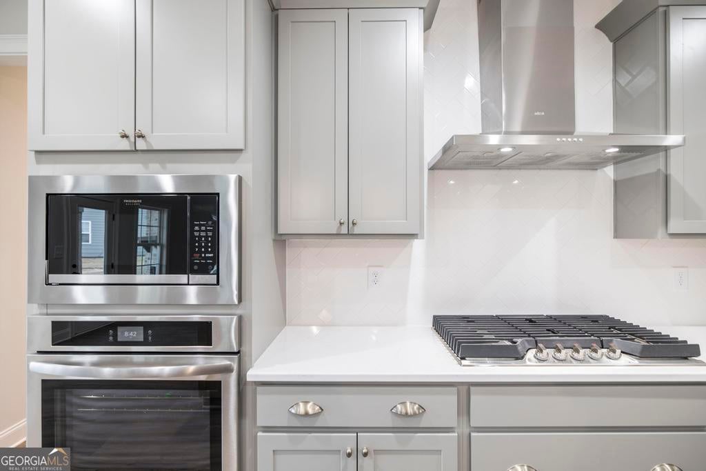 - AppliancesCooktop, Dishwasher, Disposal, Gas Water Heater, Microwave, Oven (Wall), Stainless Steel Appliance(s), Tankless Water Heater