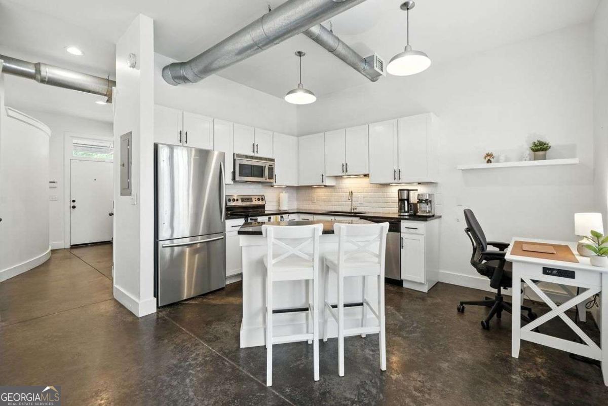 Industrial-chic 1BR/1BA at Milltown Lofts with direct BeltLine Eastside Trail access-walk to Krog Street Market, Inman Park, and the Edgewood entertainment district. Inside, 10' ceilings, polished concrete floors, exposed ductwork, and granite counters create a modern loft vibe. The freshly painted interior features a private patio and excellent storage with Elfa closet systems. Gated community amenities include two pools, a fitness center, and a club room. Assigned parking included. The HOA's insurance policy, renewed July 2025, meets Freddie Mac and Fannie Mae per-unit deductible guidelines, ensuring smooth financing for buyers. Minutes to dining like BoccaLupo, Delbar, Gu's Dumplings, and more-plus Publix at Madison Yards for easy groceries. Urban living with convenience, style, and the BeltLine at your back door.