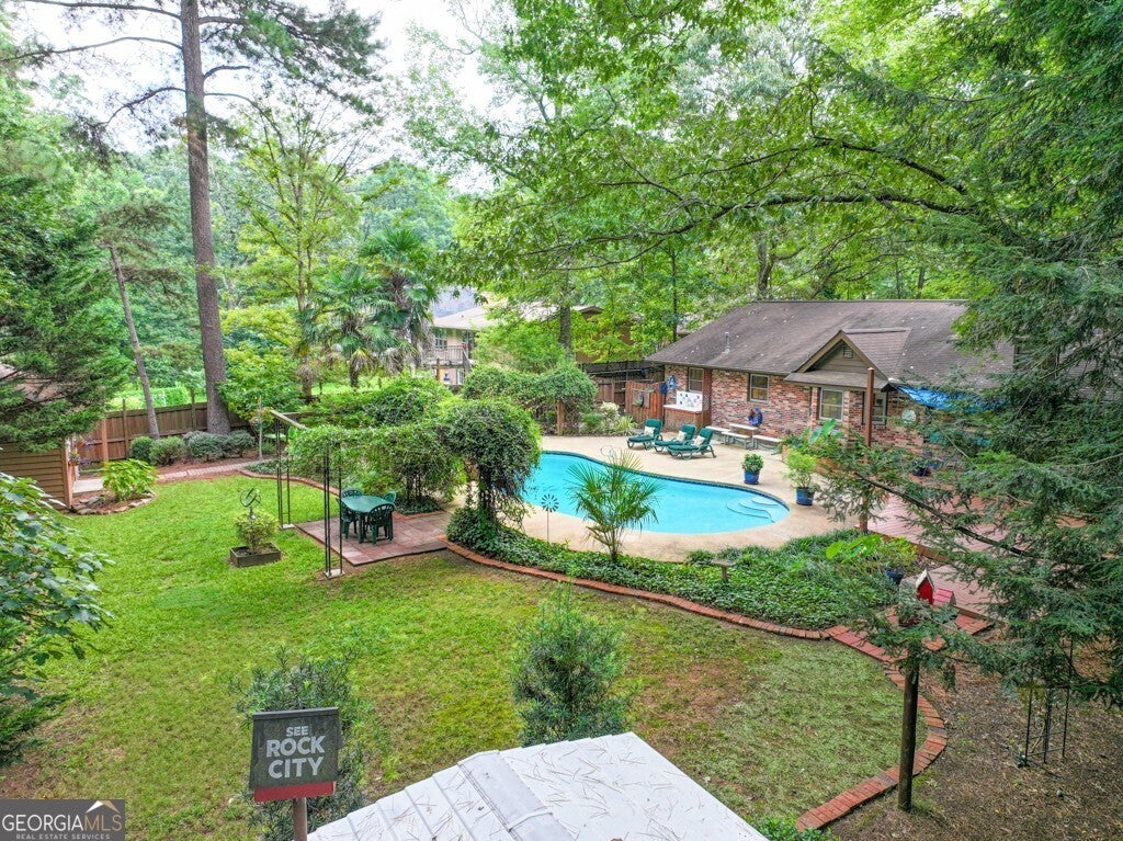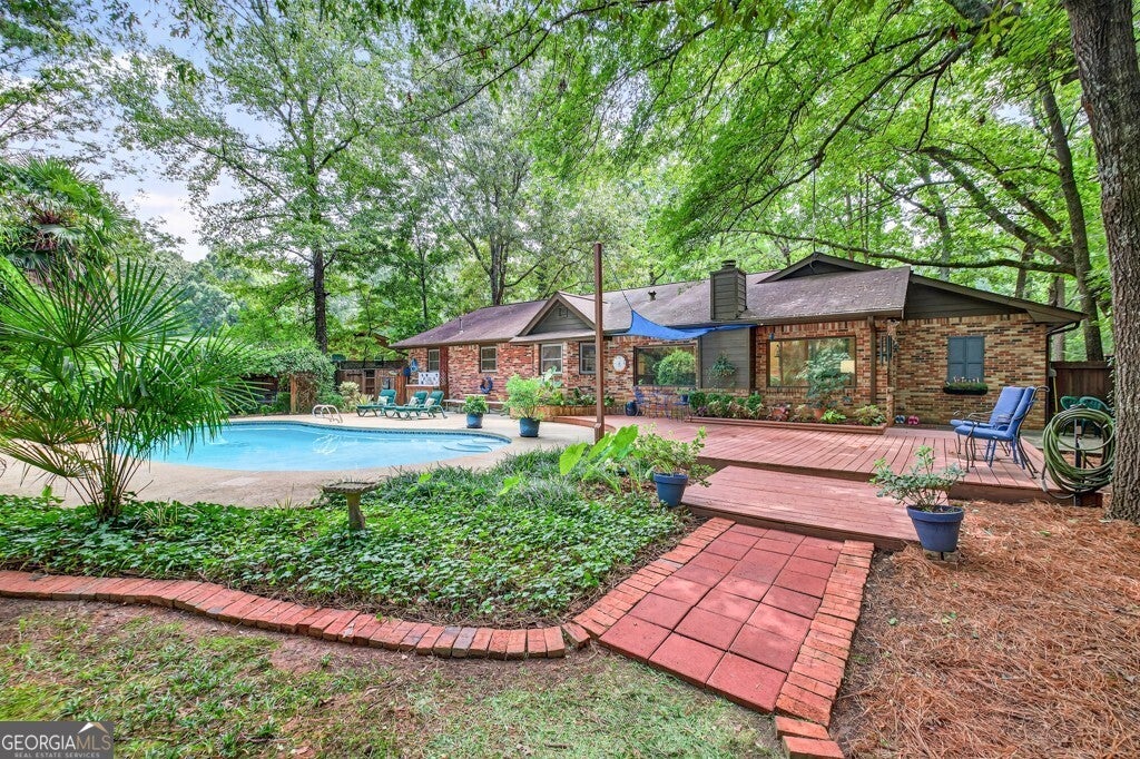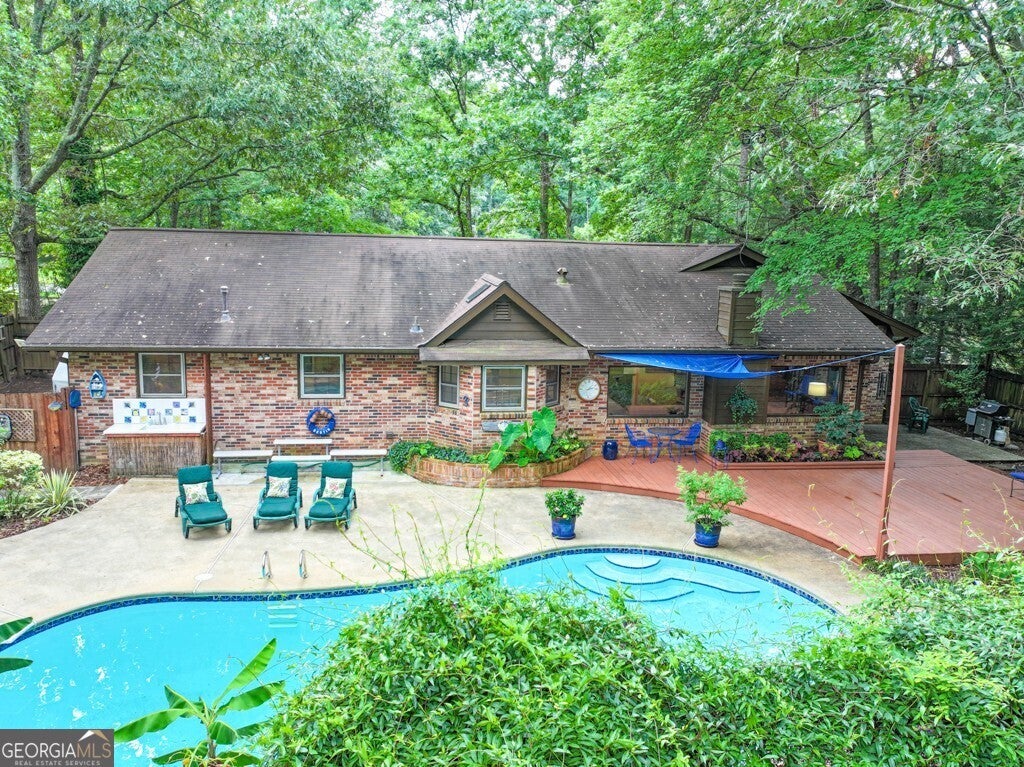 My imagination is not capable of coming up with the right words to describe this unique home in the Brookwood High School cluster of Gwinnett County Schools. You will be amazed at the condition and layout of this custom built home from the minute you enter the front door. The attention to detail in this custom home is beyond description. From the minute you step into the massive Family Room with its cathedral ceiling and custom light fixtures and Amazing picture window, until you step out the back door into your Private oasis in the middle of everything, you will be truly impressed. In addition to the 3 spacious bedrooms and the enormous Family Room, there is a formal Dining Room with Custom Judges paneling and an oversized picture window, a wonderful kitchen with updated appliances and a center island, a step-down den, and an additional Office and Large Laundry Room. The backyard oasis boasts an inground pool with all new lining, pump, etc., a fully functional workshop, a potting shed, a yard equipment storage area, and 2 additional storage buildings, all surrounded by a privacy fence with an additional storage/play area. Sit on the oversized deck and listen to the birds sing and watch the squirrels play, or relax poolside with a nice cold drink in your hand. The driveway is brand new. Most of the carpet was replaced in 2023 +/-. Quartz countertops in the Master Bathroom and Kitchen, and marble surround in the separate shower in the Master Bathroom. Raised garden beds and irrigation system will remain. This home has it all. Did I mention it's brick all around? You have just GOT to see it.
