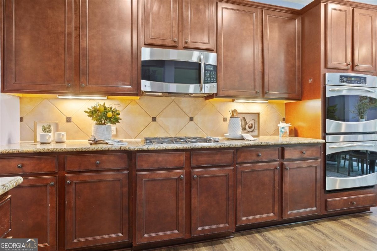 - AppliancesDishwasher, Disposal, Electric Water Heater, Microwave, Refrigerator, Double Oven, Cooktop, Oven (Wall)