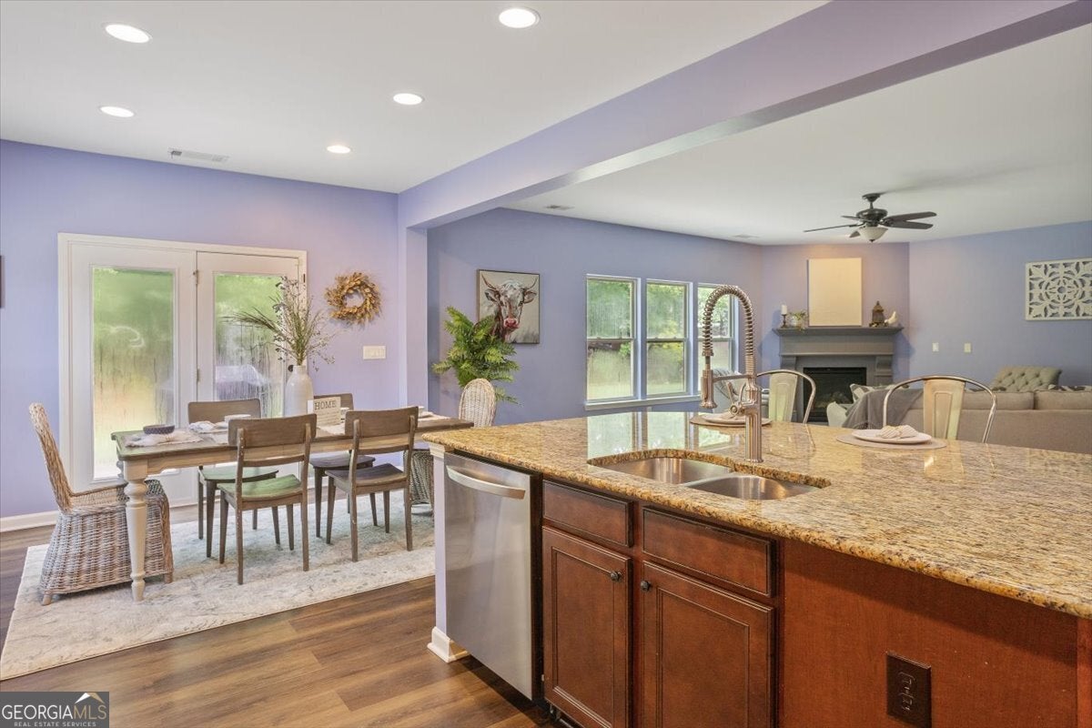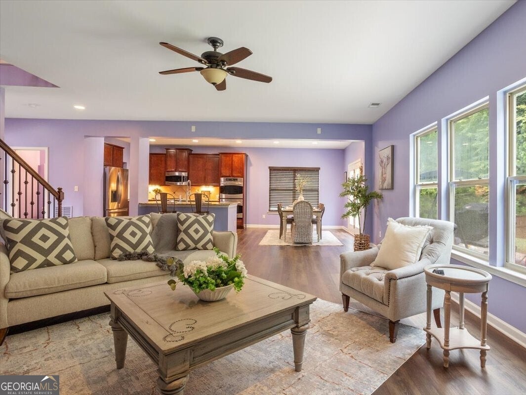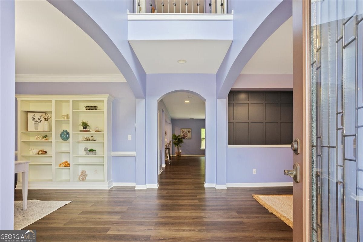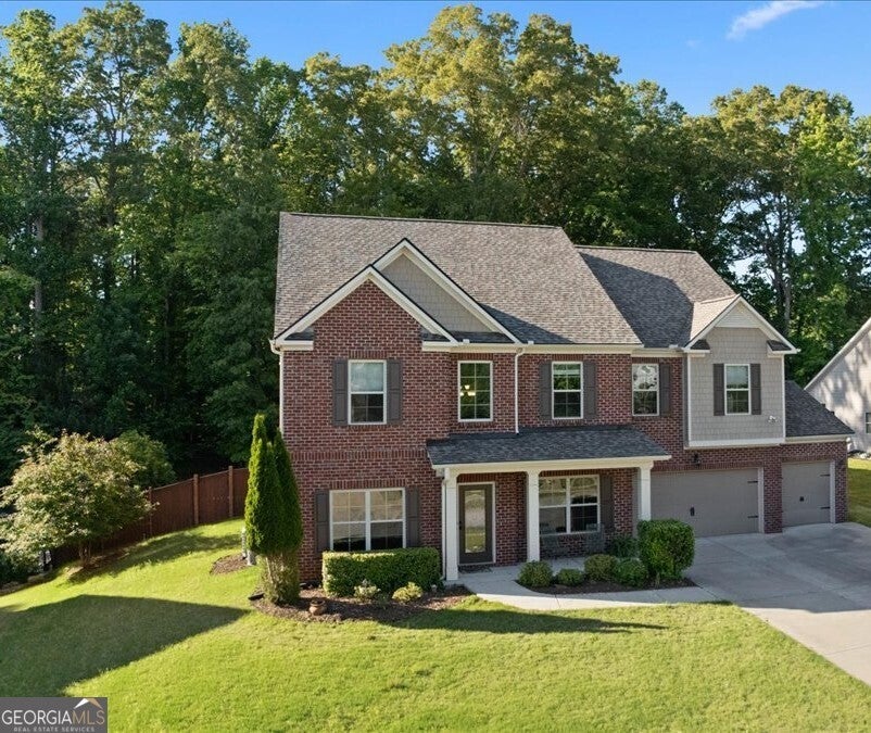 3-Sided Brick Beauty with 3-Car Garage in Sought-After Park at Steels Bridge! Welcome to peaceful living in this charming neighborhood! This spacious home boasts a grand two-story foyer with arched openings, leading to a formal dining room with custom built-ins and a versatile office/living room. The chef's kitchen features a large island, gas cooktop, double ovens, and a custom walk-in pantry-perfect for entertaining or everyday living. The open-concept layout flows seamlessly into the bright family room with a cozy gas fireplace and beautiful backyard views. Hardwood floors throughout the main level add warmth and elegance. Upstairs, enjoy a large loft ideal for movie nights or game days. The oversized owner's suite includes a trey ceiling, spa-like ensuite with soaking tub, double vanities, separate shower, and a generous walk-in closet. Secondary bedrooms offer ample space, including a Jack-and-Jill bath and a private ensuite. Step outside to a large, fully fenced, backyard with a fire pit area-ideal for relaxing or roasting s'mores. 3-car garage with EV charging station and extra shop/storage area. Don't miss this one-of-a-kind gem! Great school district and location - Just minutes from Lake Allatoona and the coming soon "South Canton Park".