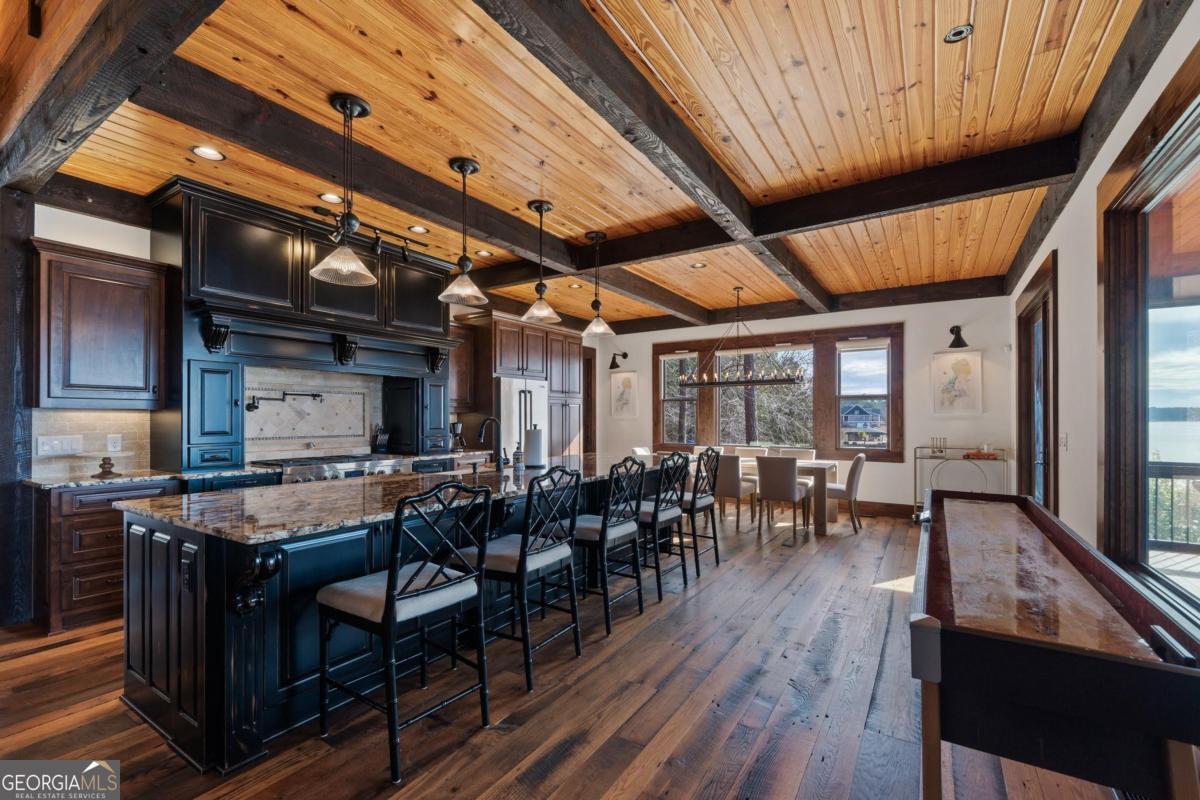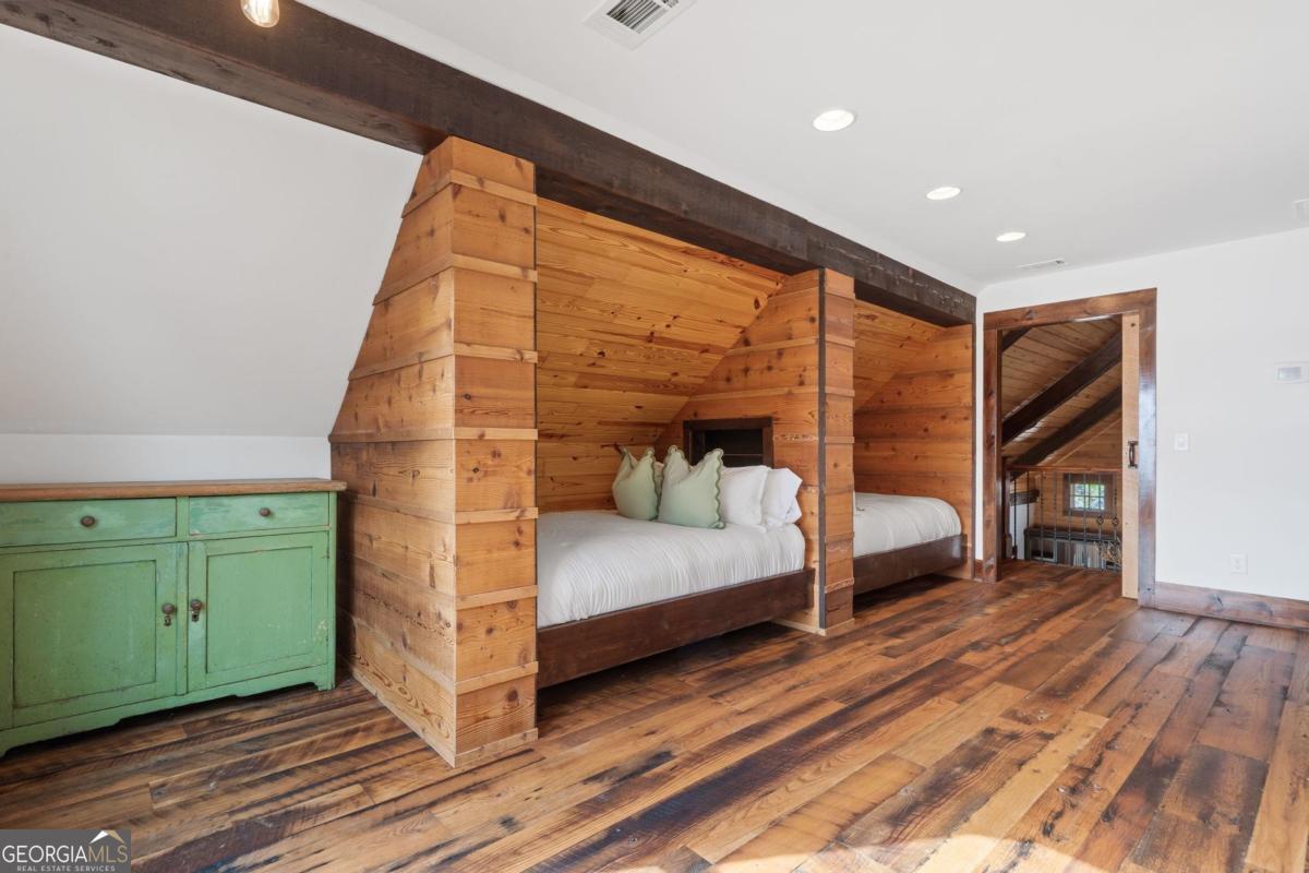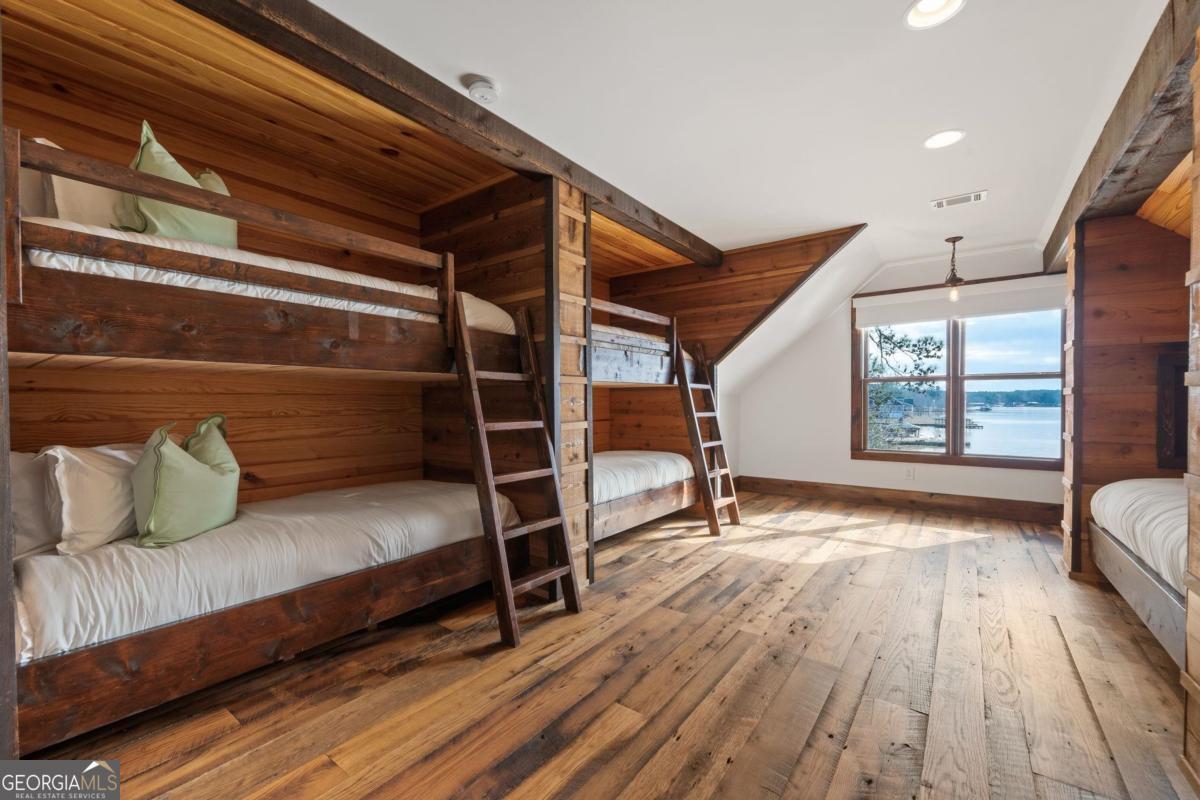 Lake Sinclair Luxury on Big Water! Elevate your lakeside lifestyle with this stunning 4-bedroom, 2.5-bath custom home on 1.3 acres, perfectly positioned on the largest water expanse of Lake Sinclair. From the moment you enter, breathtaking views fill the home with natural beauty. The gourmet kitchen is the heart of the home, featuring a massive 13-foot island, high-end custom Jenn-Air appliances, and 100-year-old circle-sewn mixed oak flooring. The living room centers around a striking floor-to-ceiling fireplace with gas logs, creating a warm and inviting atmosphere. The main-level primary suite offers a private retreat, while a main-level flex room delivers inspiring water views-perfect as a study, den, or hobby space. Upstairs, two elegant guest bedrooms provide comfort and privacy, along with an expansive bunkroom with built-in bunks that can sleep up to 8. Even the mudroom is exceptional, showcasing a 100-year-old cast iron sink. Outdoor living shines with a full-width screened porch, lakeside firepit, and a double boathouse for instant lake access. The 3-car detached garage with heating and air provides space for vehicles, toys, and hobbies. Every detail has been carefully considered-making this Lake Sinclair masterpiece a rare opportunity you won't want to miss!
