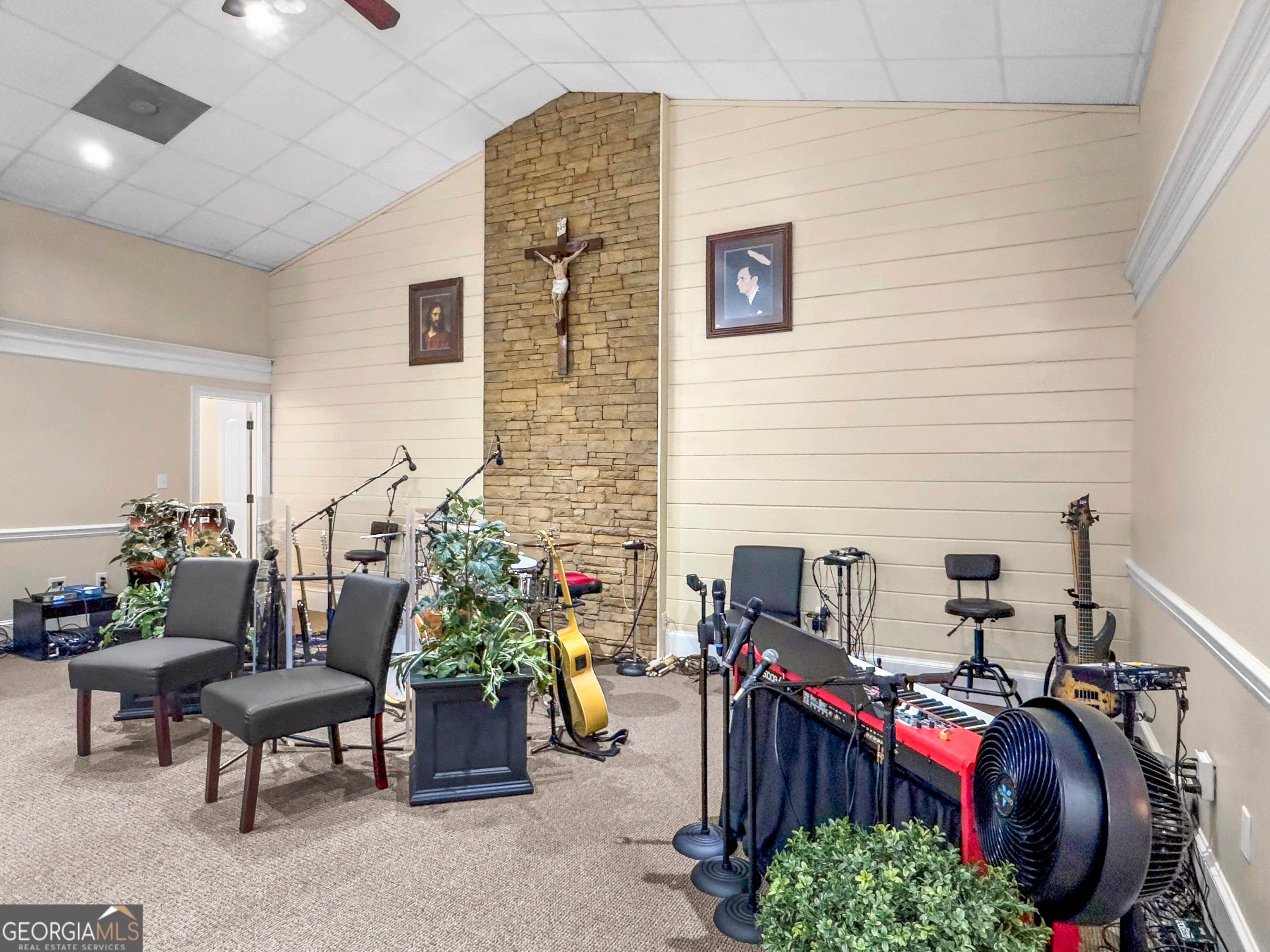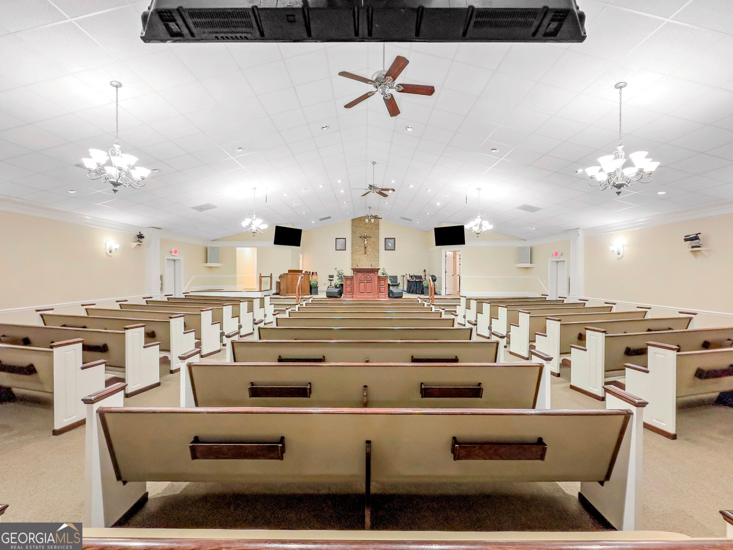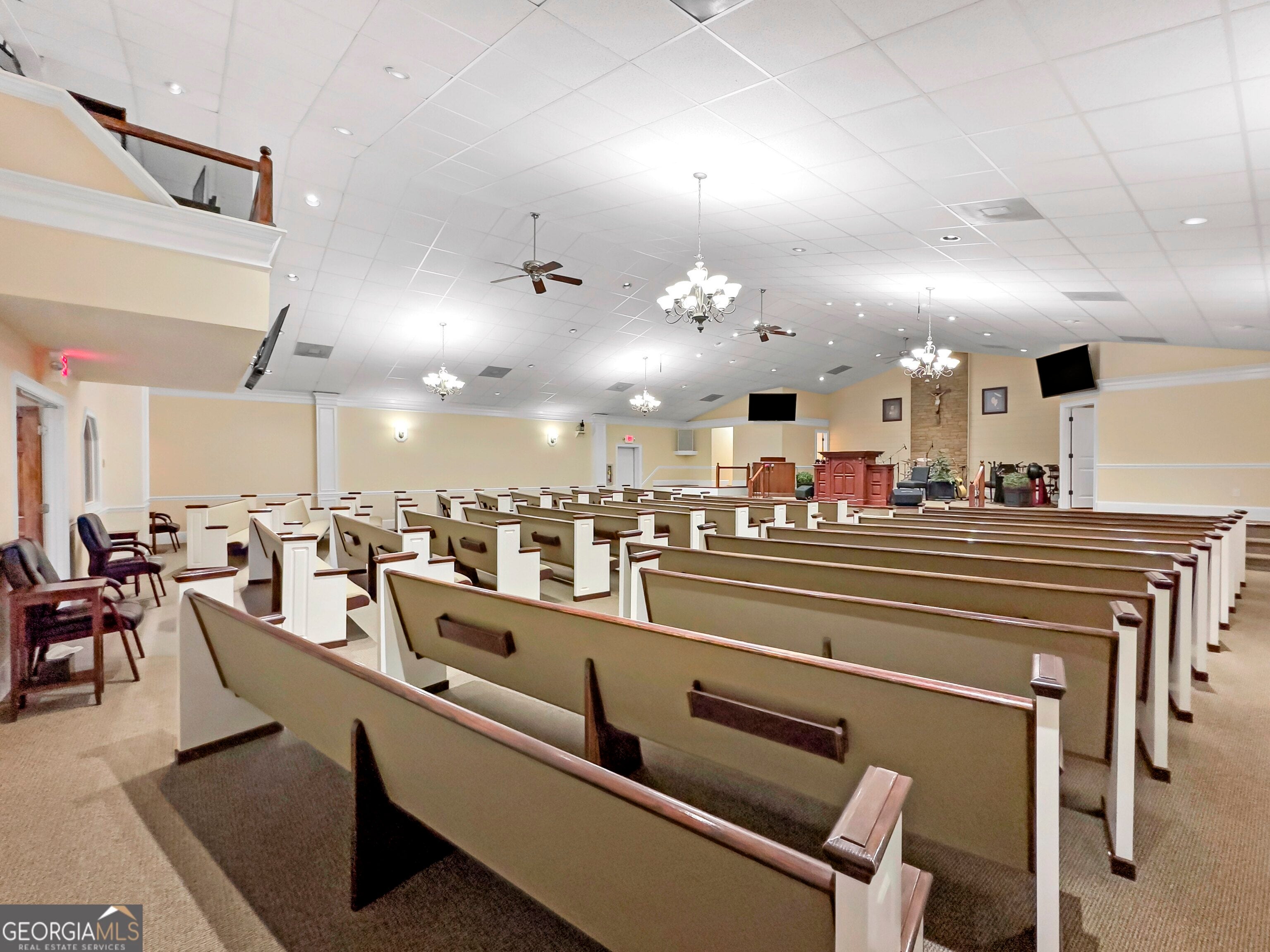 Breath taking church property located just outside of downtown Covington, 20 minutes from downtown McDonough, and about 20 minutes to Conyers. Easy access to I-20 and other major roads. This amazing church sits on 4.26 acres of land that is completely fenced. The property has a sanctuary that was built in 1998, a fellowship hall, outdoor pavilion, 2 out buildings, play ground and volleyball court. There are 100 paved parking spaces. As you enter the main building, you will find three nurseries, two Sunday school rooms, trustees office, two additional rooms and restrooms. As you open the double doors your breath will be taken away by the view. It offers one of the most beautiful sanctuaries you have ever seen. To the left of the altar is a baptismal pool (behind the pool is a changing area), to the right of the altar is the pastor's office with private restroom. Above the sanctuary is the sound system room, and two additional unfinished spaces that could be used for countless purposes. The seating capacity of the sanctuary is 200+. The separate fellowship hall is a nice open space that can be used for many purposes, the fireplace located in the corner gives the space a focal point that brings a feeling of home to the buiding. There is a fully equipped kitchen with all appliances that will remain with the sale, a walk in pantry for additional space and a separate laundry room. Sounds perfect right? There is more, in addition to all of this, there is a suite with walk in closet and a full bath for visitors. This church is move in ready. The current congregation will be relocating to another location. Do not wait, call the listing agent today to schedule a private showing.