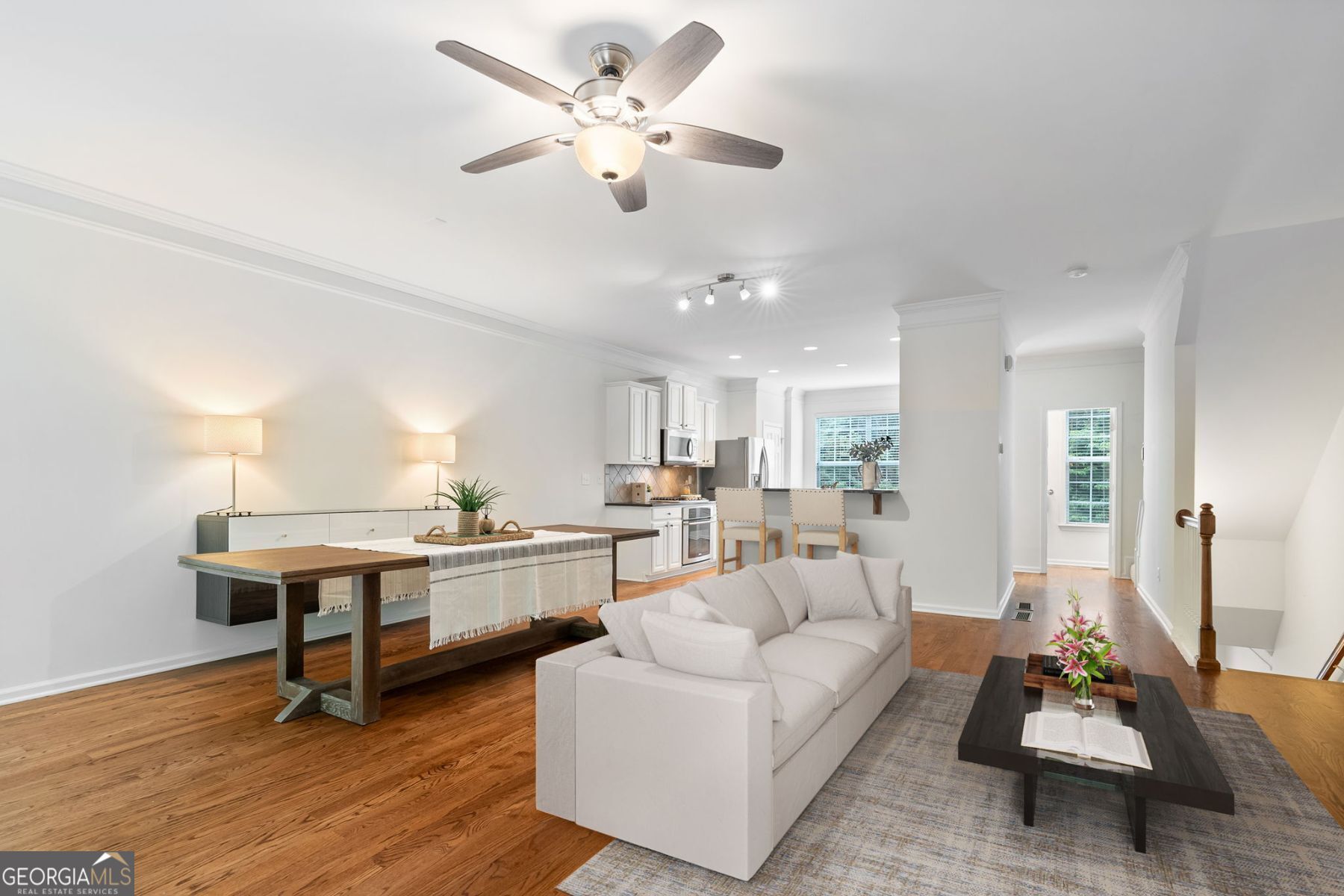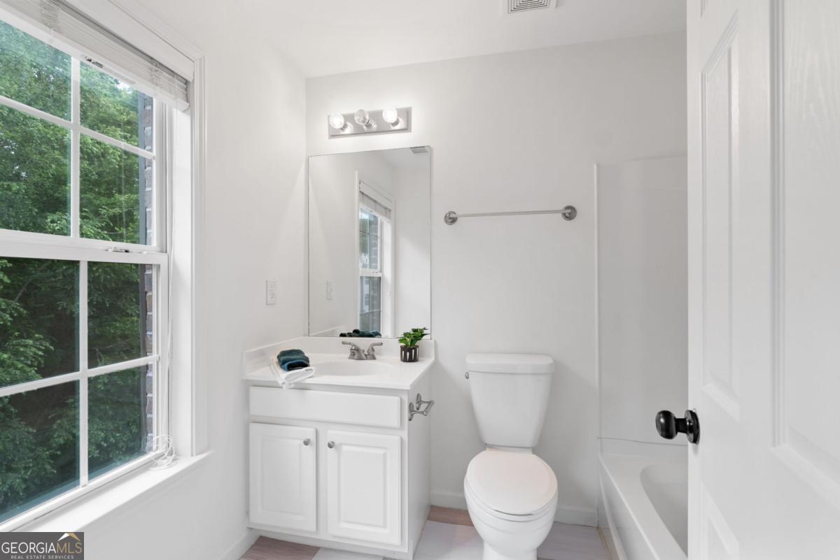 This townhome qualifies for 100% financing with preferred lender, Kim Nehiley at Supreme Lending at 404-667-3920! Freshly updated with brand-new carpet, this 3-bedroom, 3.5-bath townhome in the sought-after Cambridge community combines modern comfort with unbeatable convenience. Step inside to find hardwood floors and a bright, open main living area that flows seamlessly into the updated white kitchen, complete with granite countertops and stainless steel appliances. The open floor plan sets the stage for both entertaining and relaxed evenings at home. Upstairs, the spacious primary suite impresses with tray ceilings, a walk-in closet, and a primary bathroom featuring dual vanities, a soaking tub, and a separate shower. Each bedroom comes with its own private bath, offering flexibility and comfort for guests or roommates. The laundry is also located upstairs for easy access. On the terrace level, you'll discover a versatile bedroom with two closets and a full bath-perfect for an office, guest suite, or second living area. This level also offers access to the back of the townhome. Unwind outdoors on your private deck, where tree-lined views provide peace and privacy-no backyard neighbors! Additional features include a one-car garage, gated entry for security, and a prime location just one mile from Morgan Falls Park, close to Chattahoochee River trails, shopping, dining, and easy GA-400 access. Move-in ready and thoughtfully designed, this townhome is the perfect fit for first-time buyers, professionals, or anyone seeking a low-maintenance lifestyle in the heart of Sandy Springs.