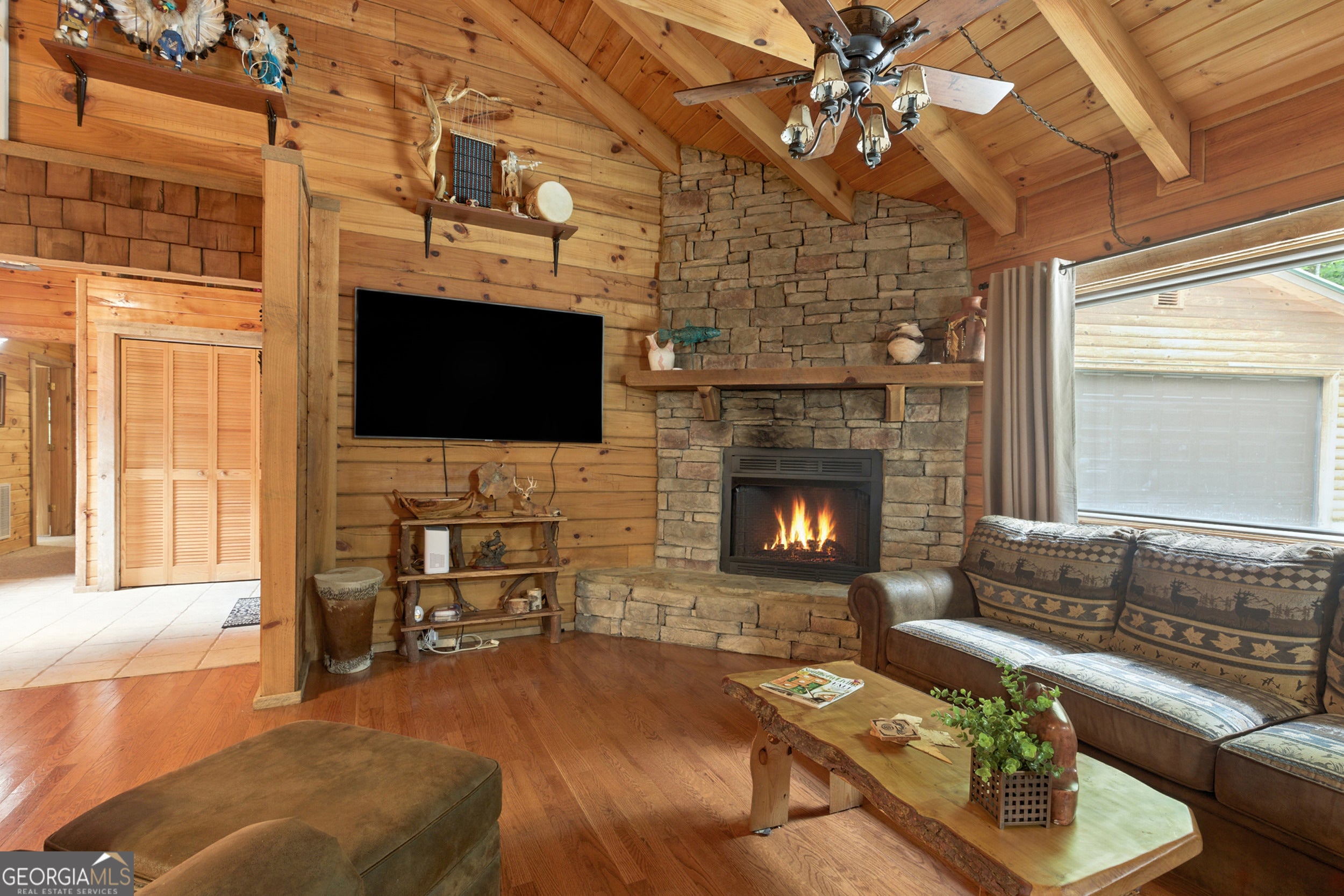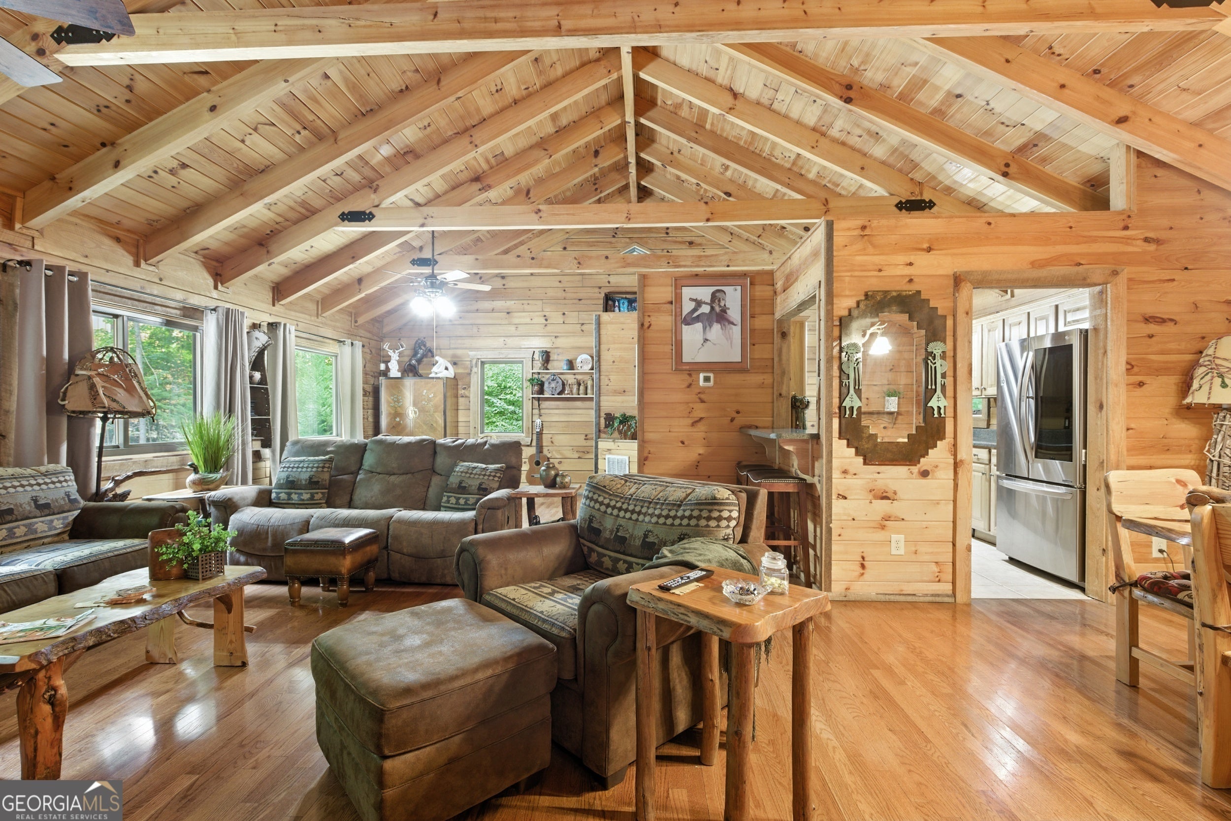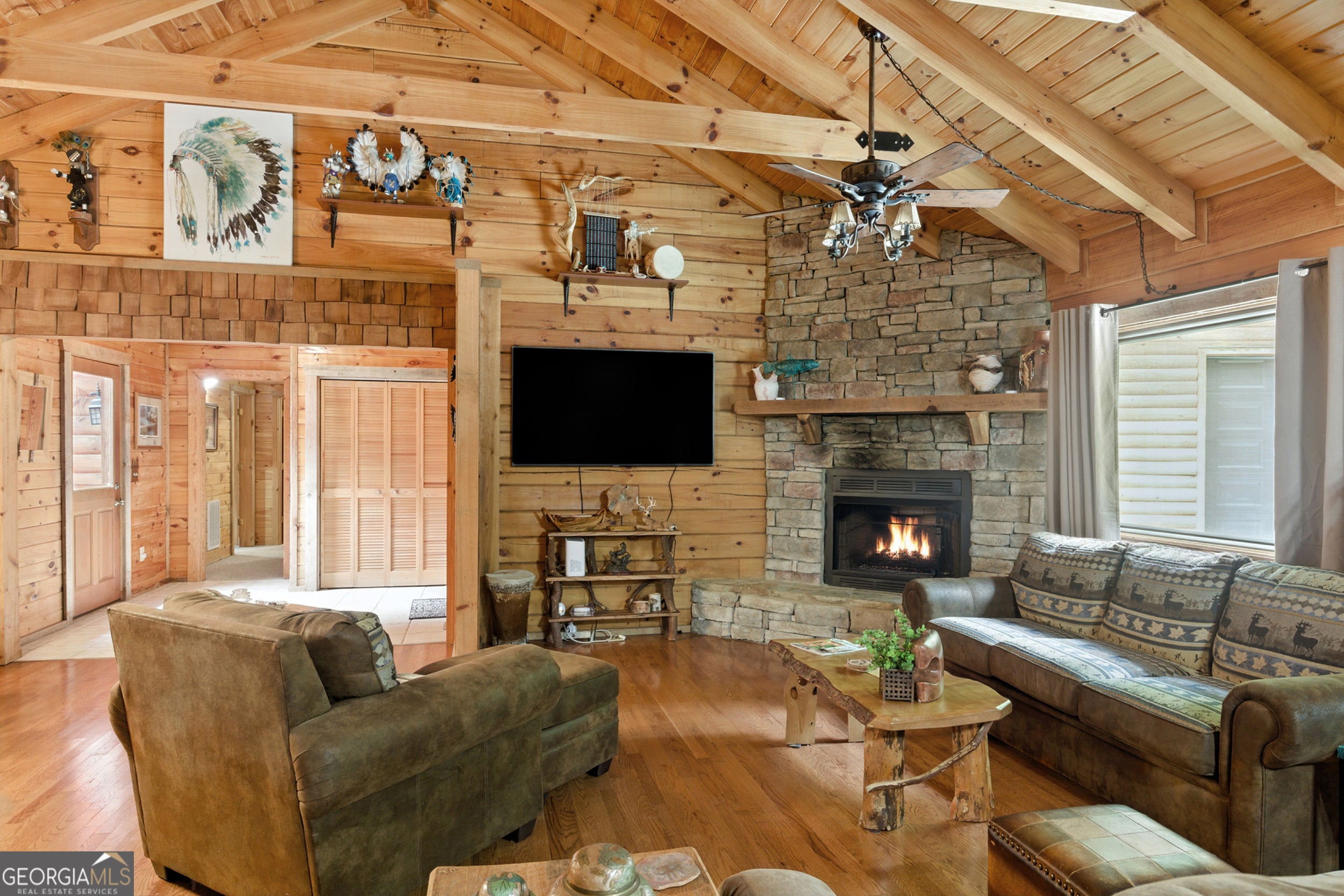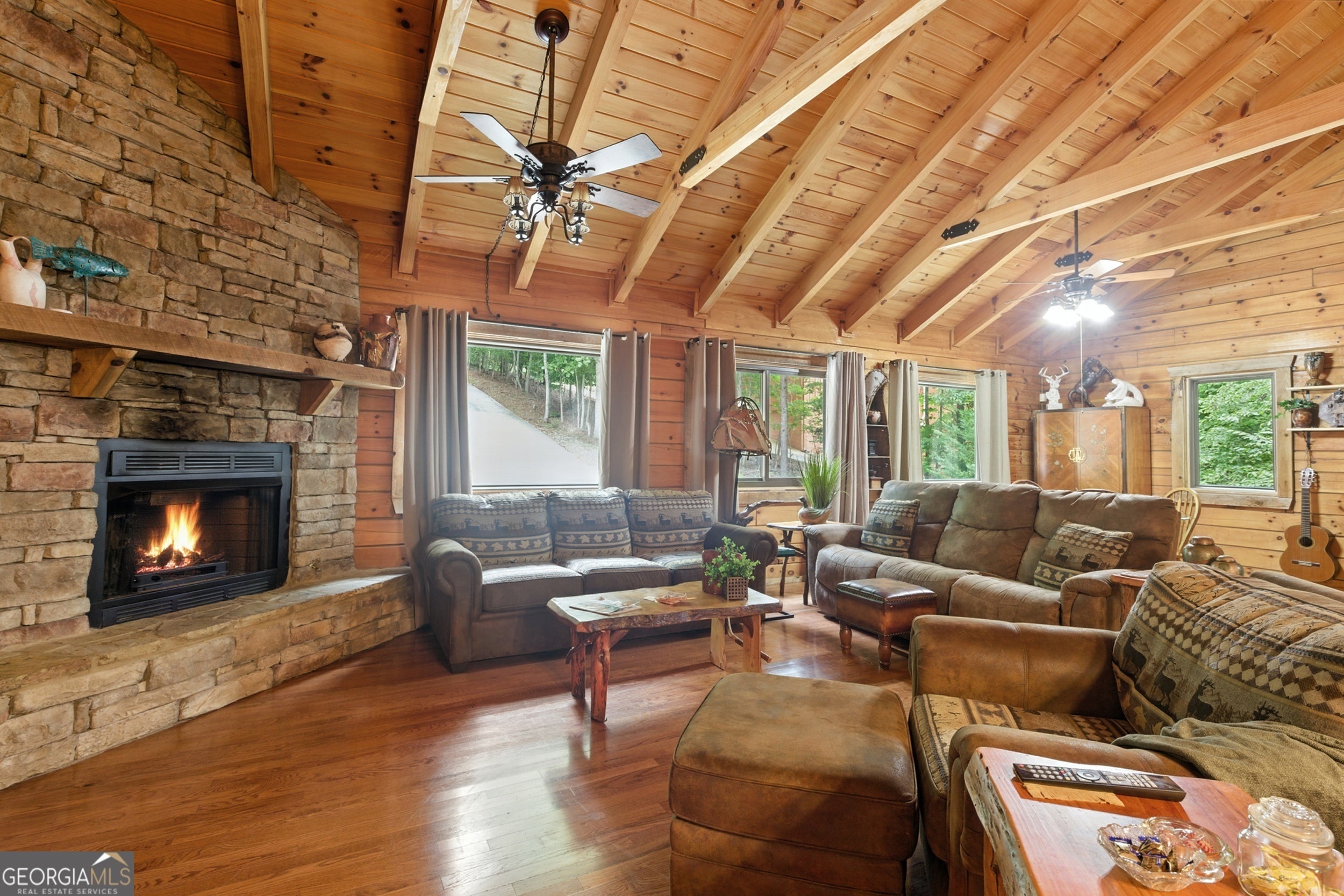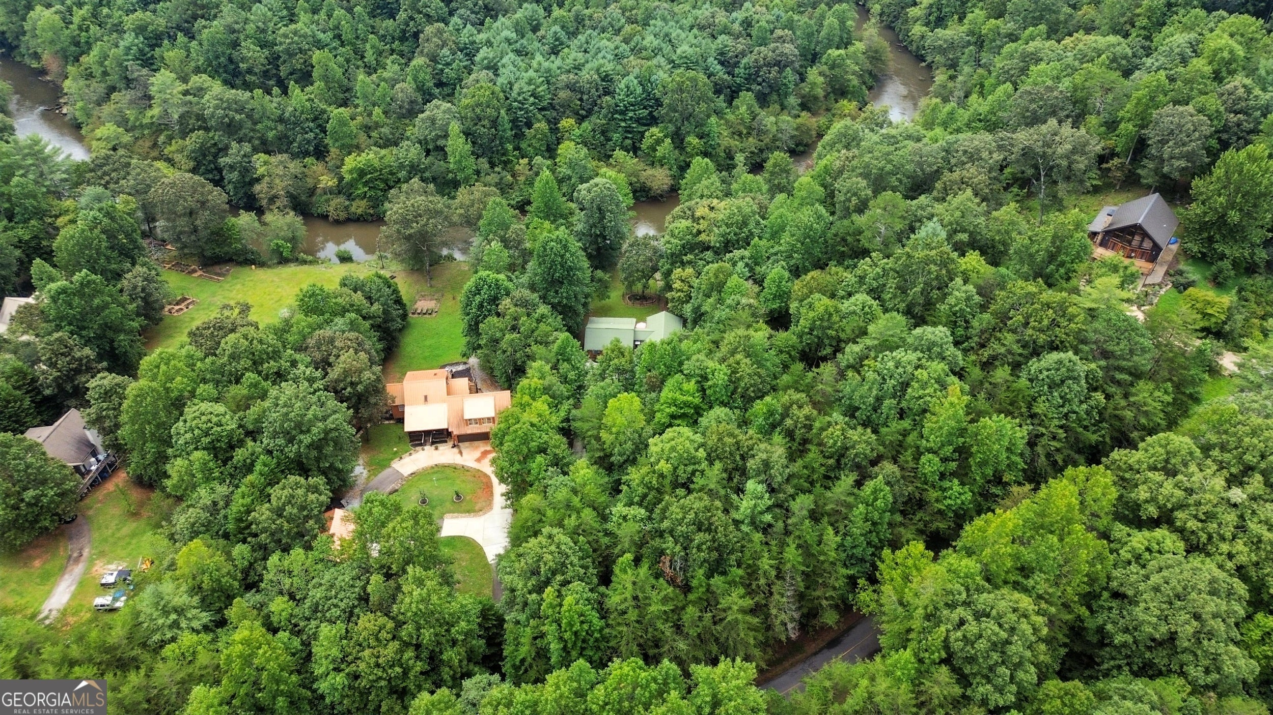 Tucked-Away River Oasis in Sought-After Panorama Estates! Welcome to 3040 Panorama Drive, a sprawling ranch-style retreat offering rare year-round river views and direct access to the Chattahoochee River. Perfectly positioned on an extremely level lot that gently leads to the water's edge, this property invites you to enjoy the sound of the shoals, a large swimming and fishing hole, and truly fabulous fishing-all right in your backyard. Adding to the natural charm, it's common to see deer grazing and wild turkeys wandering through the yard, making every day feel like a retreat into nature. Inside, the home exudes warmth and character with exposed beams, oversized bedrooms, and an expansive layout designed for both relaxation and entertaining. Recent upgrades include 22 brand-new Anderson windows (with a lifetime warranty that stays with the home), all new A/C and heating units (replaced in 2021) with ductwork, and a hot water tank replaced in 2022-providing modern comfort and efficiency. Even better, the A/C and heating systems come with another year of warranty coverage, along with semiannual service visits through July 20, 2026. The option to add a screened-in deck and a dining area slider overlooking the river would make a wonderful addition, creating the perfect blend of indoor-outdoor living. The basement is not finished but already framed for a bathroom, bedroom, and spacious walk-in closets, with wood and materials on-site and ready for completion. HVAC and ductwork have been installed, making it an easy step toward creating additional living space tailored to your needs. Outdoor enthusiasts will love the easy river access right from the backyard-perfect for launching a kayak and enjoying a three-hour float to the 255 bridge. Residents of Panorama Estates also enjoy private access to a neighborhood park, where you can put in tubes or kayaks exclusively for residents. The detached garage (built in 2020) adds further convenience, and there's also a new storage building with a ramp located at the top of the property-perfect for housing lawn equipment, outdoor gear, or additional storage. Modern comforts meet mountain charm with Trailwave Fiber Internet for seamless connectivity, and the property comes sold fully furnished, making it truly move-in ready. Adding to the appeal, charming Helen, GA, is just 8 miles away, offering year-round activities and home to the longest-running Oktoberfest in the USA. Beyond Helen, you'll find plenty of fun nearby activities to enjoy, including scenic hiking trails, lively casinos, and so much more-making every day here feel like a getaway. Whether you're searching for a full-time residence, weekend getaway, or income-producing retreat, this home has been extremely well cared for and loved, offering peace of mind and instant enjoyment from day one. With its unmatched river access, Panorama Estates prestige, and beautifully maintained features, this is more than just a home-it's a lifestyle. Don't miss your chance to call this riverside haven yours! Schedule a tour with the Zach Garvey Team today!