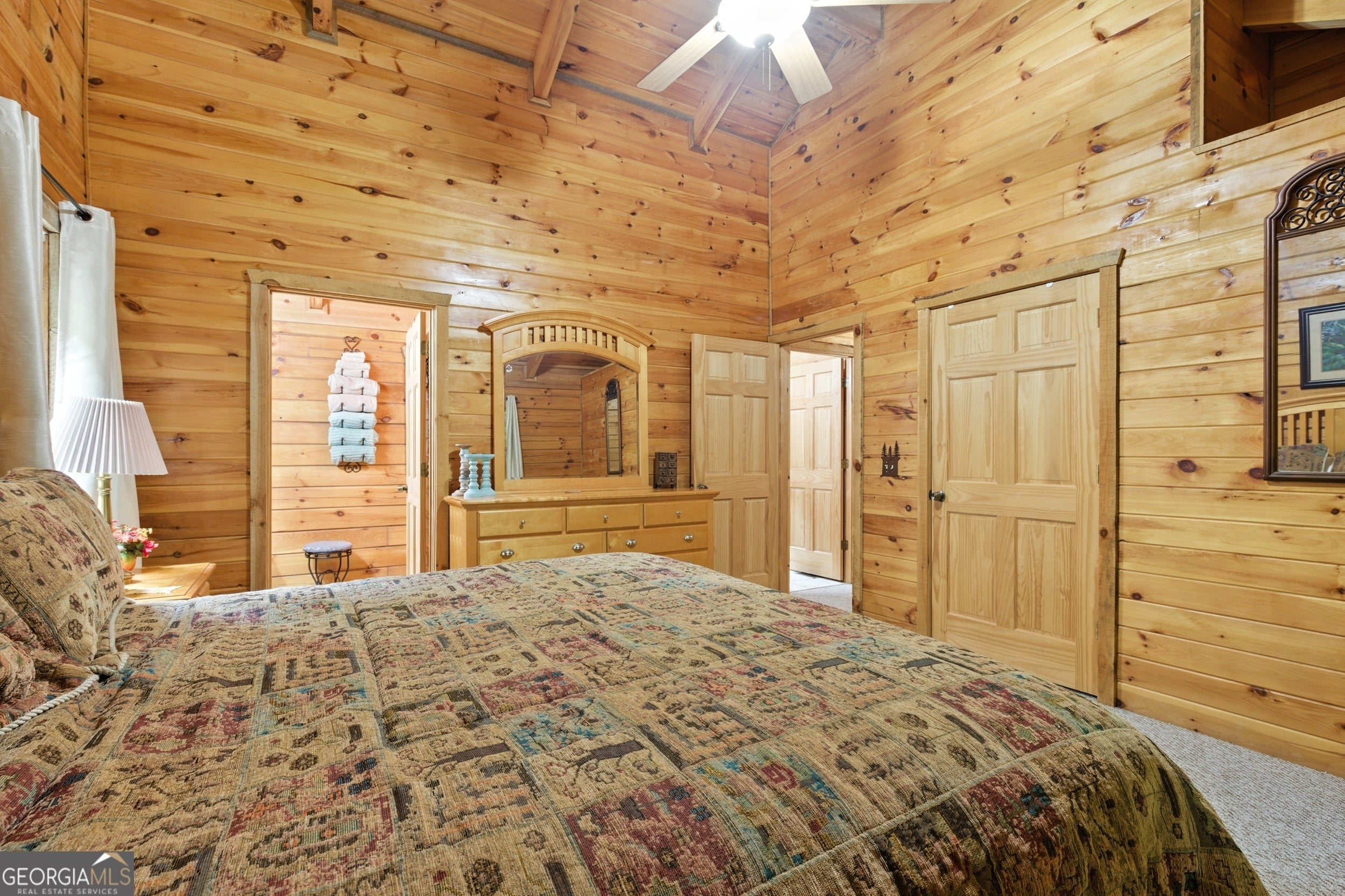 - Interior FeaturesDouble Vanity, Master On Main Level, Walk-In Closet(s), Beamed Ceilings, Vaulted Ceiling(s), Whirlpool Bath