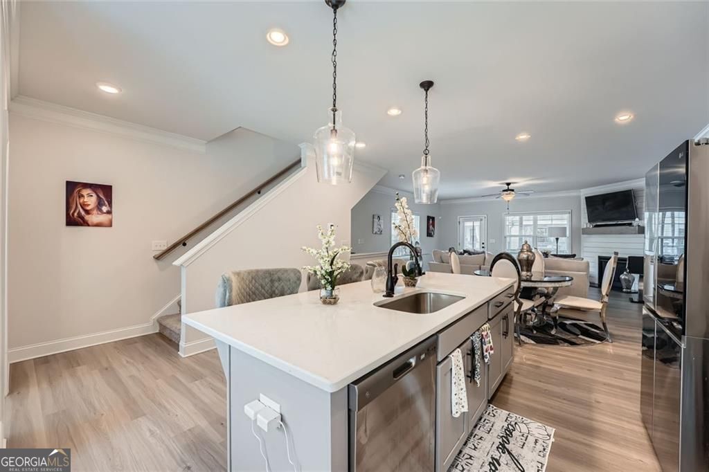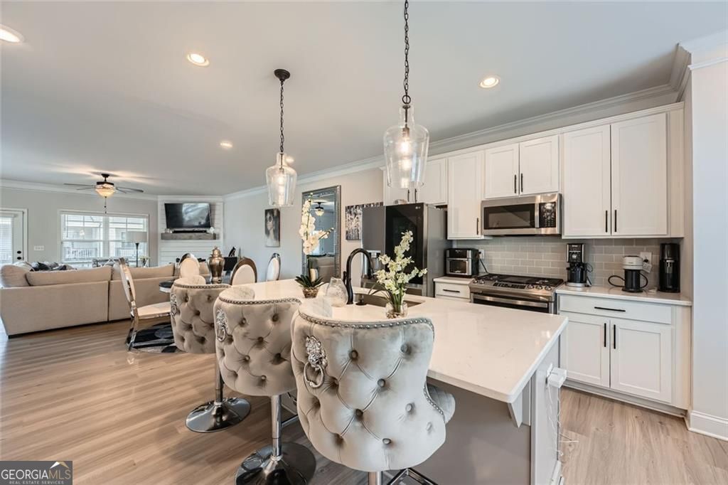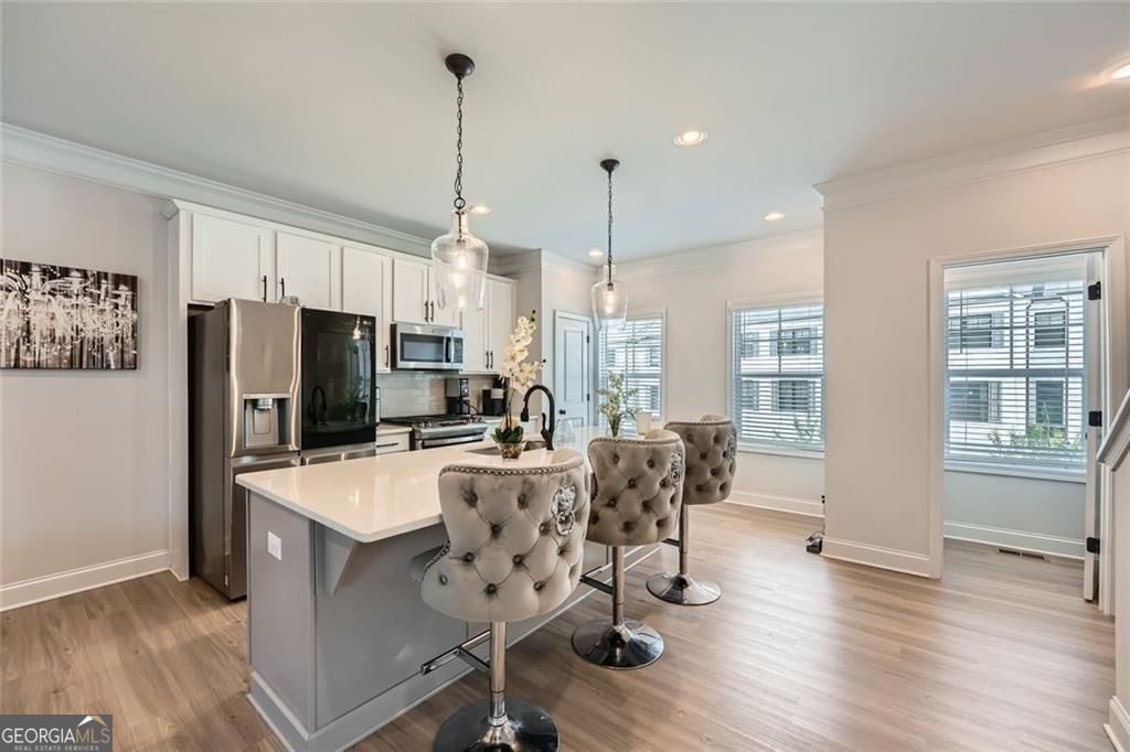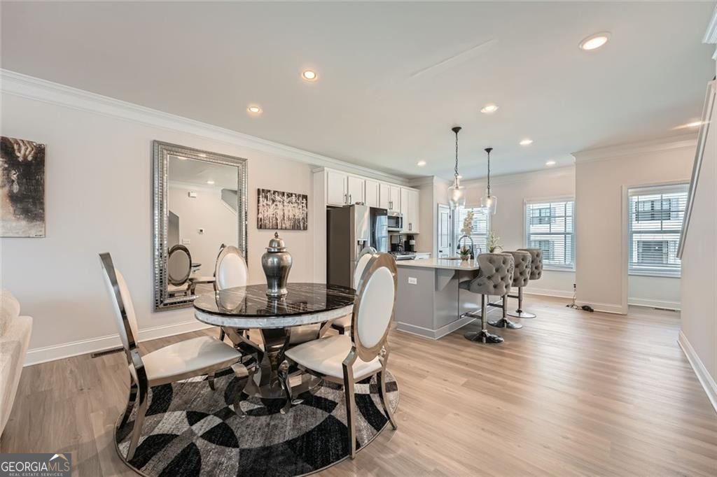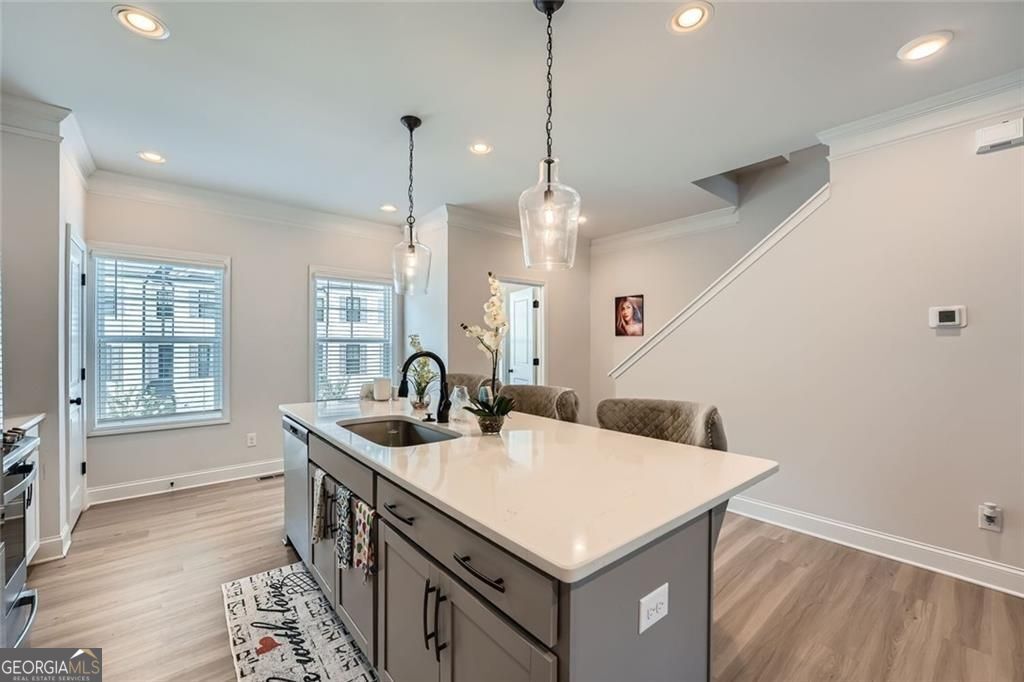 SELLER OFFERING $5,000 TOWARD CLOSING COSTS! Experience this exceptional end-unit townhouse in Emerson Heights. Built in 2021 and offering 1,960 sq ft, this beautifully appointed home features 3 bedrooms and 3.5 baths across three levels. The open layout includes a chic eat-in kitchen with quartz countertops, a sizable island, and elegant finishes, all warmed by a shiplap-accented fireplace. Each bedroom features its own private bath, while the primary suite boasts a walk-in closet, dual vanities, and a luxurious mega-tile shower. Laundry upstairs and thoughtful details like tray ceilings and crown molding add both function and flair. Enjoy outdoor living on the covered deck, while the gated community ensures low maintenance with lawn and exterior upkeep included. A private two-car garage with rear entry provides secure, easy access. Located just off Highway 92, this prime spot offers quick connectivity to I-575, I-75, and GA-400 giving you central access to both the North Georgia mountains and downtown Atlanta. You'll also be close to highly rated schools like Arnold Mill Elementary, Mill Creek Middle, and River Ridge High, as well as endless shopping, dining, and recreation options in nearby downtown Woodstock and Roswell. Priced attractively, this is an opportunity not to be missed.