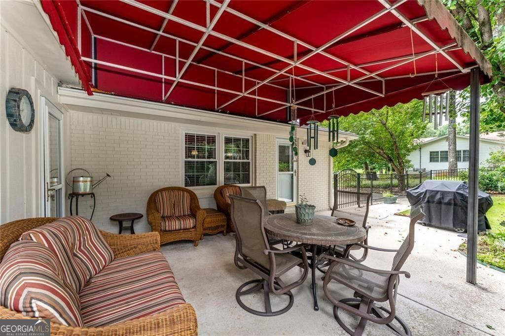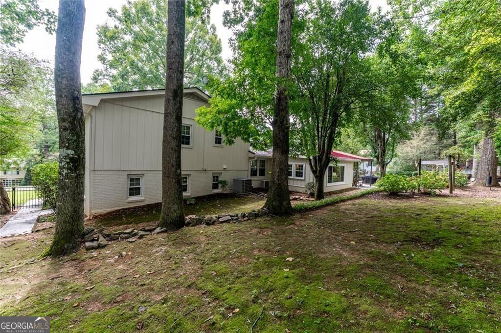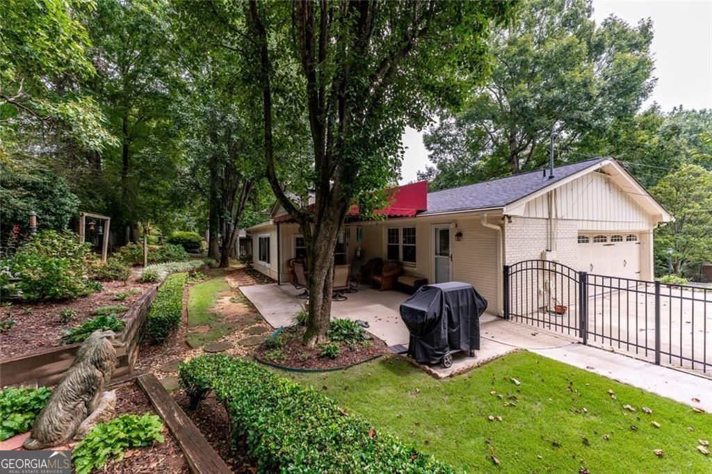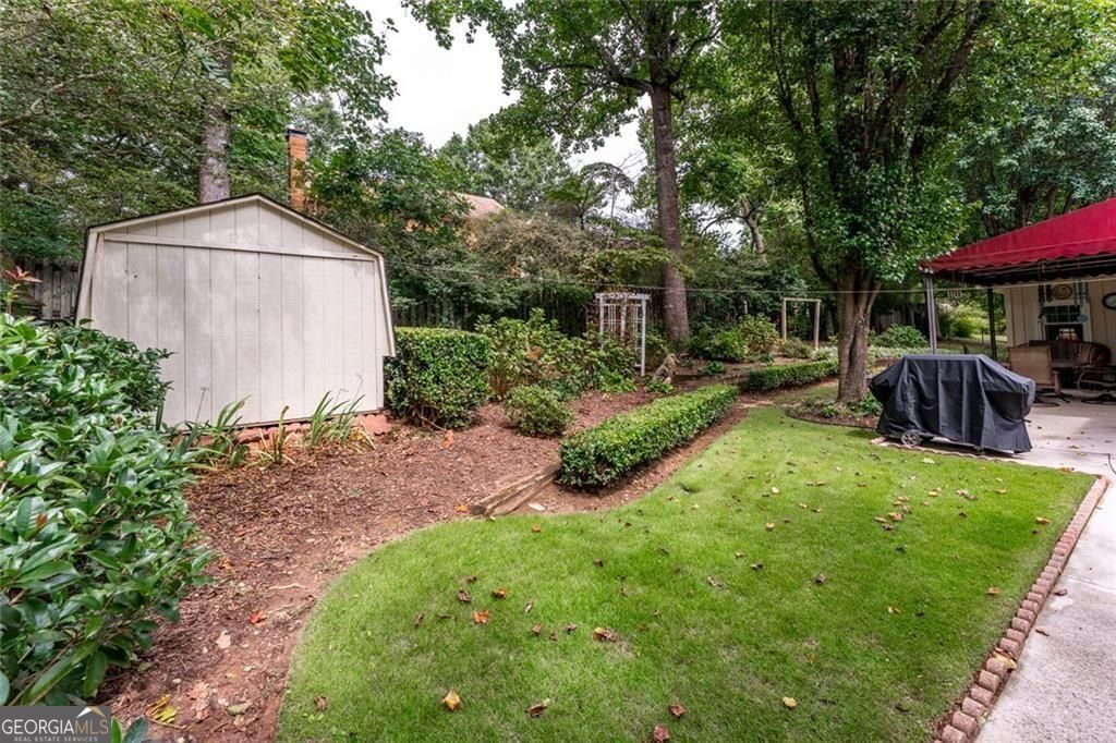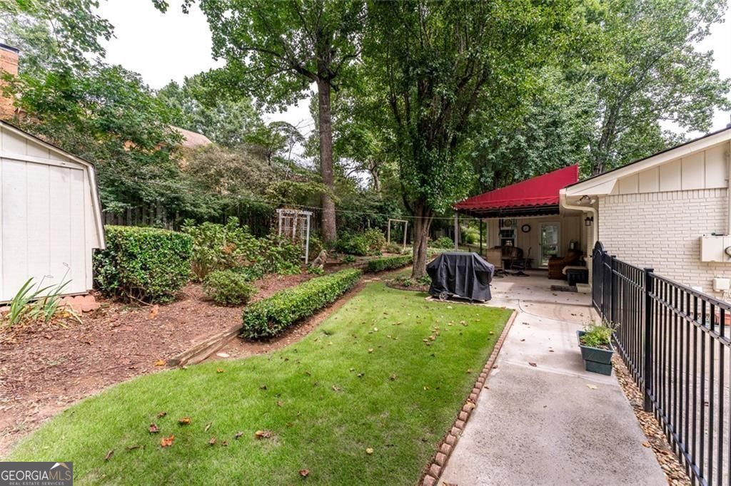 Set on a beautifully landscaped lot in the welcoming cul-de-sac enclave of Peachtree North, this delightful home blends comfort, style, and functionality. A charming front porch invites you into a flowing open floor plan accented by gleaming hardwood floors, plantation shutters, and classic wood blinds. The dining room opens to a bright living room and inviting family room, anchored by a handsome brick fireplace. A cheerful sunroom and a spacious covered patio create wonderful spots to relax or entertain, all while overlooking a gorgeous, private, and fenced backyard framed by mature trees and lush plantings, this serene retreat is ideal for entertaining and family life. A versatile storage shed adds charm and convenience. The updated gourmet kitchen is both stylish and practical, showcasing freshly painted cabinetry, gleaming granite countertops, subway tile backsplash, stainless steel appliances including a gas range, and custom pull-out pantry shelves. A sunny breakfast room and oversized laundry room with backyard access add everyday convenience. Upstairs, the serene primary suite offers a comfortable retreat with an attached bath featuring a double vanity, while two additional bedrooms share a nicely updated hall bath. The lower level is a standout, offering a fully equipped in-law suite with its own private entrance. Complete with a second kitchen, generous living room, spacious bedroom with huge walk-in closet, and private full bath, it provides a perfect setting for extended family, guests, or multi-generational living. Ideally located in the desirable Dunwoody school district, this home offers the best of convenience and community. Walk to the JCC and nearby places of worship, and enjoy close proximity to shopping, dining, and major interstates-all with easy access to the very best of Atlanta.