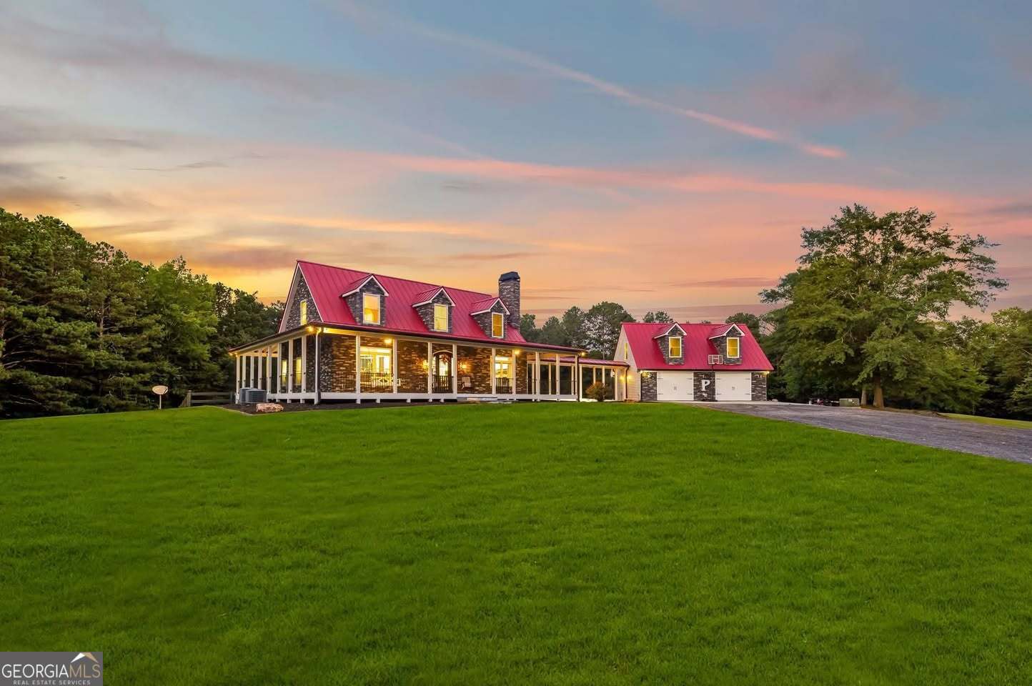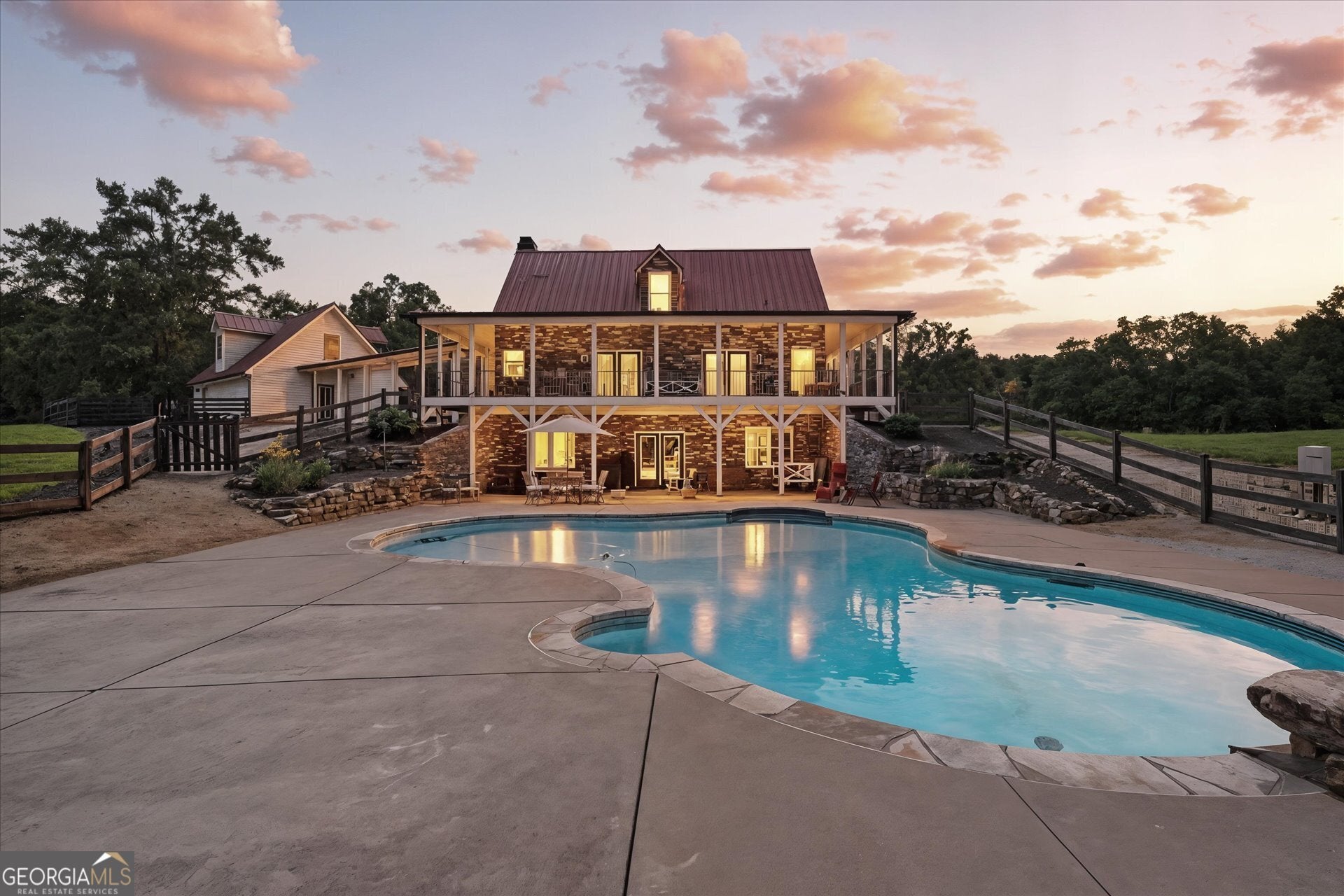 Custom Estate on +/-17 Acres with Pool, Shop, and In-Law Suite This unique property offers the perfect combination of privacy, convenience, and versatility. Located near Rockmart, Hiram, Dallas, Villa Rica, and within easy reach of Atlanta, this estate features a custom 4-sides stone home with a metal roof and spacious floorplan. Main Home: Master suite on main level Solid surface countertops Open living and dining area, Laundry Room with Half Bath Upstairs: 2 bedrooms, large full bath, and loft area ideal for sitting/TV/game space Terrace level: fully finished in-law suite with kitchen, family/media room, bedroom, full bath, and laundry Garage & Additional Spaces: Detached garage with covered breezeway to home Full bath in garage Upper level finished office/flex space Outbuildings & Amenities: 40x80 metal shop with loft storage Heated saltwater pool All situated on +/-17 acres with endless possibilities. This property offers space for entertaining, hobbies, or creating your own private retreat.