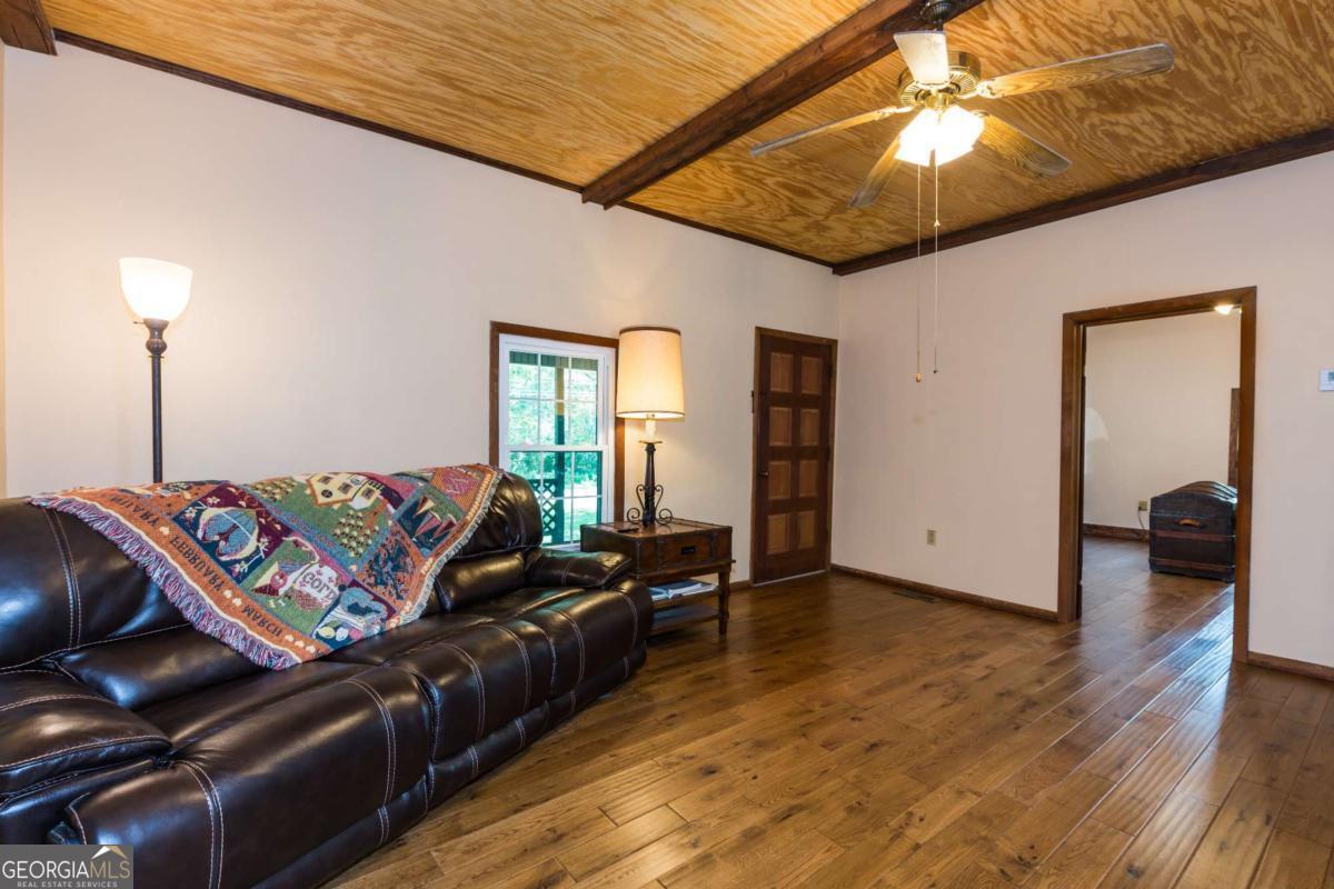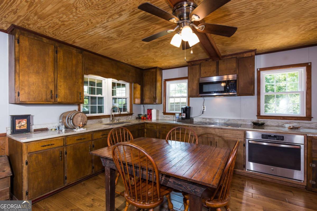 6 AWESOME ACRES of POTENTIAL on this beautiful level property of pasture and shade trees! COME AND 'SIT A SPELL' ON THE COVERED FRONT PORCH - SOAK UP THE PEACEFUL ATMOSPHERE OF THIS RENOVATED COUNTRY BUNGALOW CHARMER. UPGRADED APPLIANCES, FIXTURES, NEW VINYL SIDING -ALL NEW WINDOWS Beautiful NEW HARDWOOD FLOORS throughout, Beamed Bead Board Ceilings for a Country Rustic Look. Home is accented by some of the original wood door and trim to preserve the history yet updated floors, ceilings, upgraded appliances, granite counters and fixtures. Rooms include Spacious Living Room, Dining/Den , Master suite that adjoins a 2nd bedroom/office via a Jack and Jill style Bath plus a large 3rd bedroom. Home offers plenty of living space would make a great vacation home in beautiful northeast GA mountain area. NOTE: 6 ACRES Could be subdivided And the current LI Zoning allows for commercial options. HUGE 3 BAY SHOP 52x40 12' Ceiling WITH LIFT AND AIR COMPRESSOR included. The property is just minutes from the 365 corridor and the convenience of shopping and restaurants yet preserves a country vibe. Many options whether residential, a mini farm, a business, short term rental , subdivide for additional homes etc etc etc.