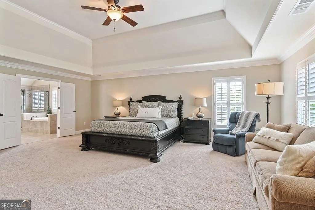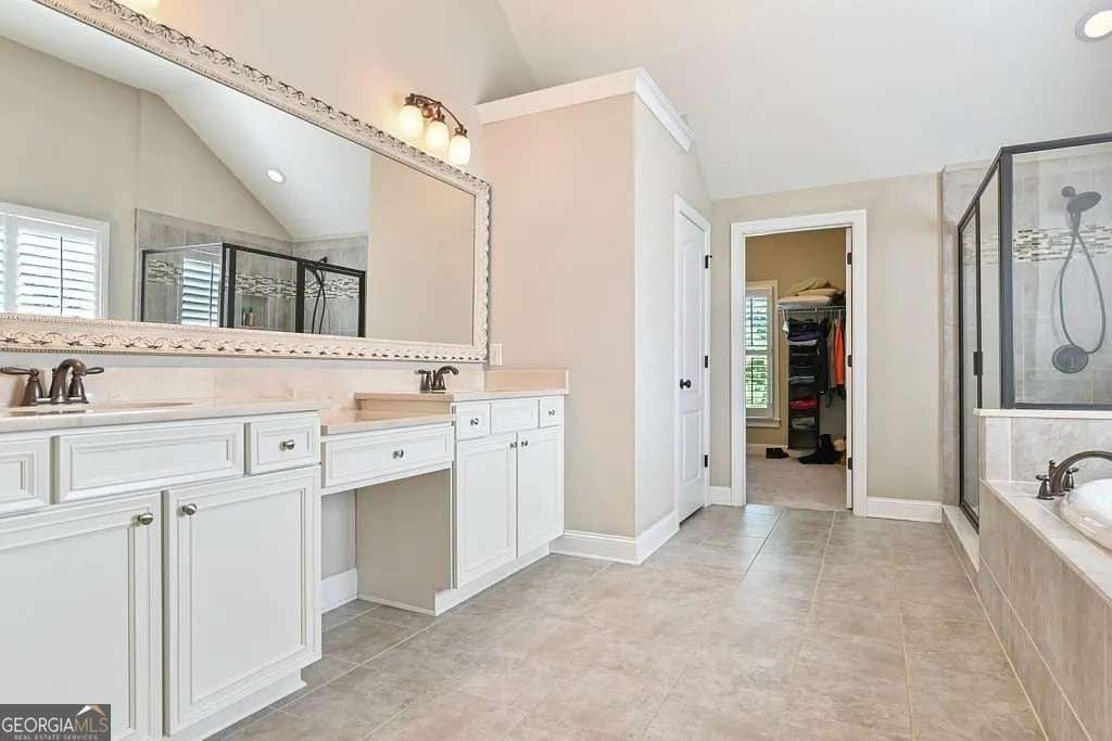 - Interior FeaturesVaulted Ceiling(s), Walk-In Closet(s), Pulldown Attic Stairs, Bookcases, Double Vanity, Tray Ceiling(s)